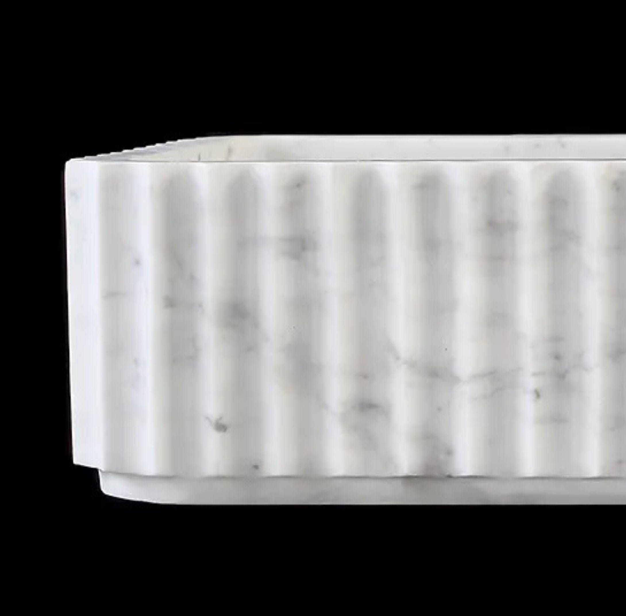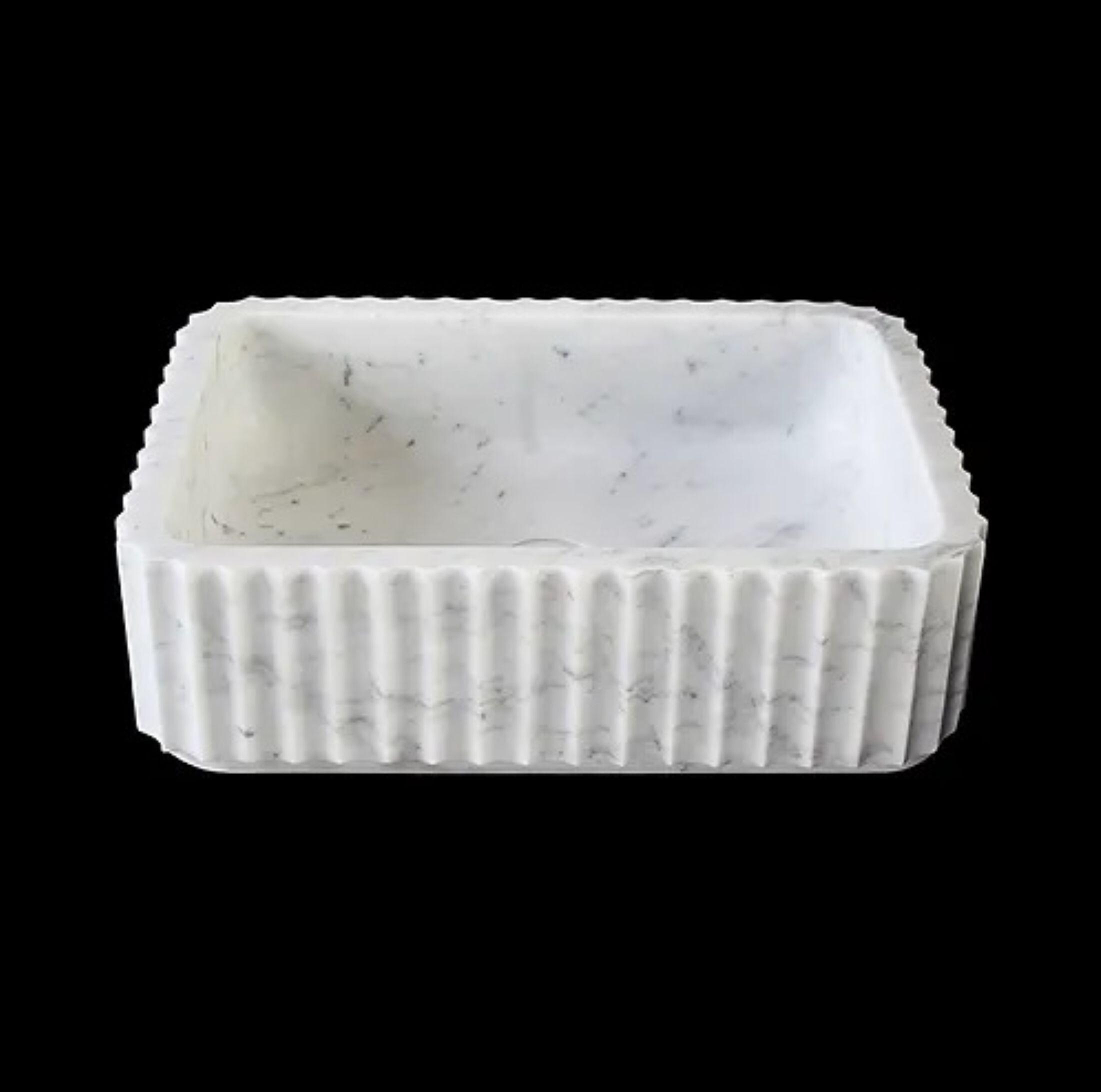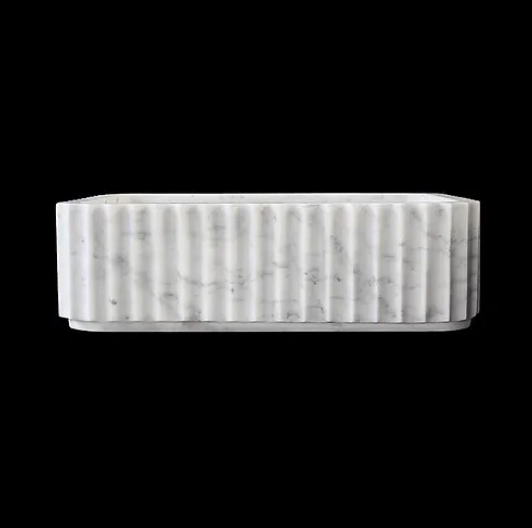 White Marble Fluted Countertop Wash Basin Sink, Rectangle Desginer BathroomSink