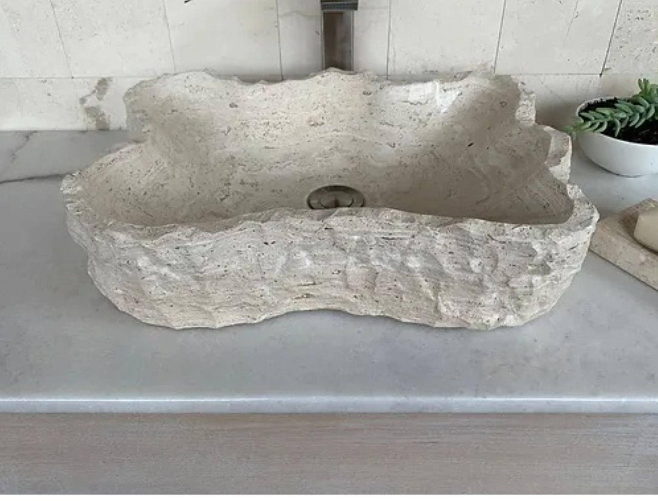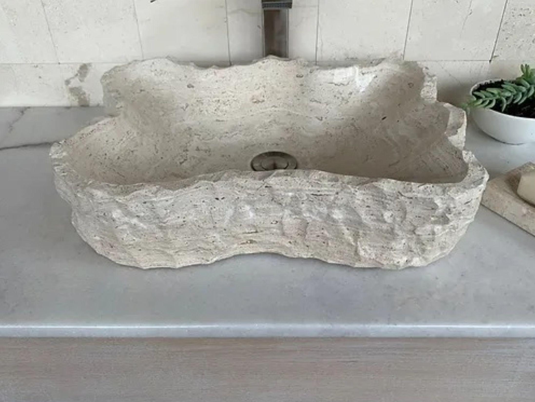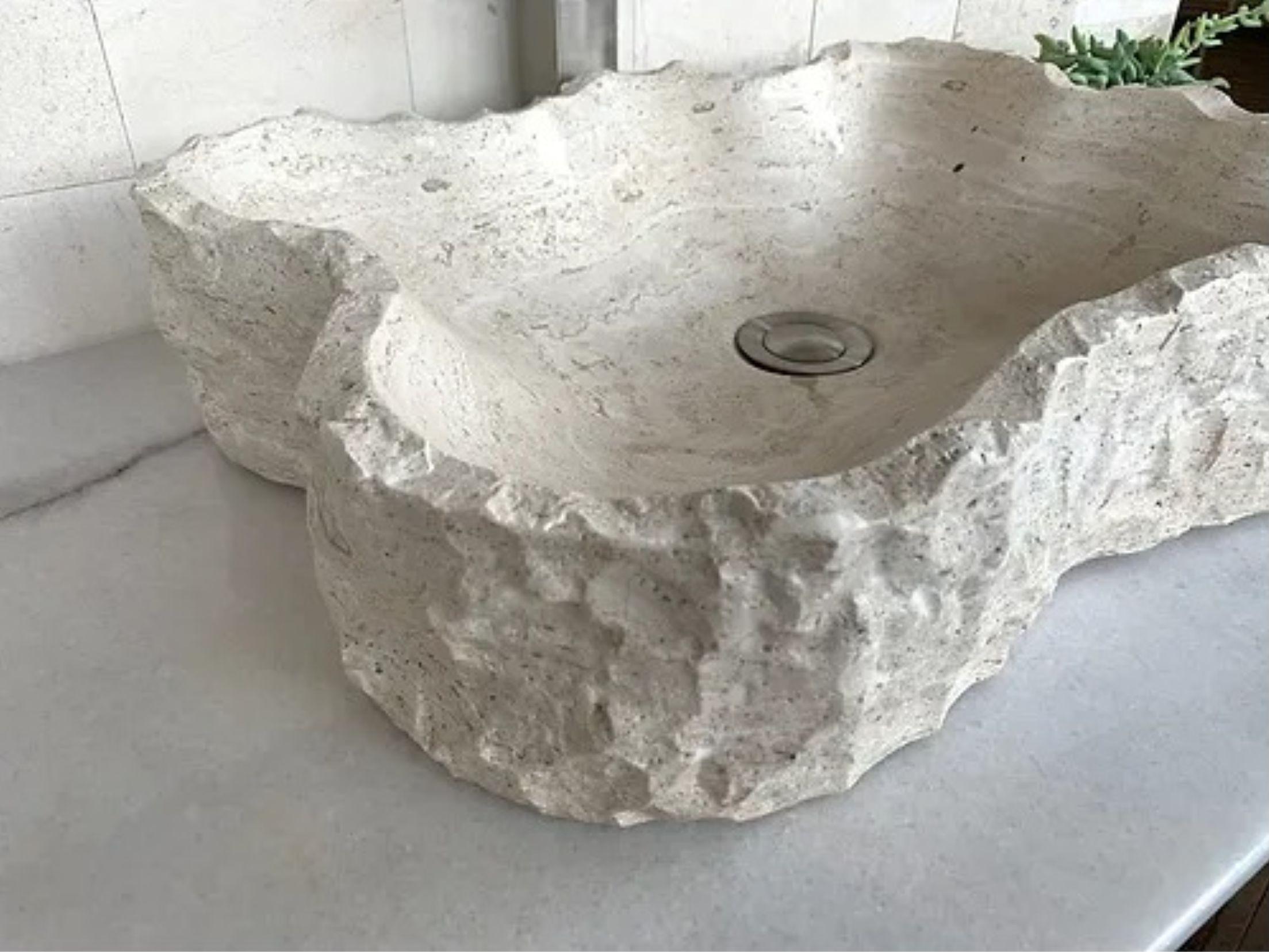 Natural Stone Handcrafted Rustic Style Bathroom Washbasin Sink