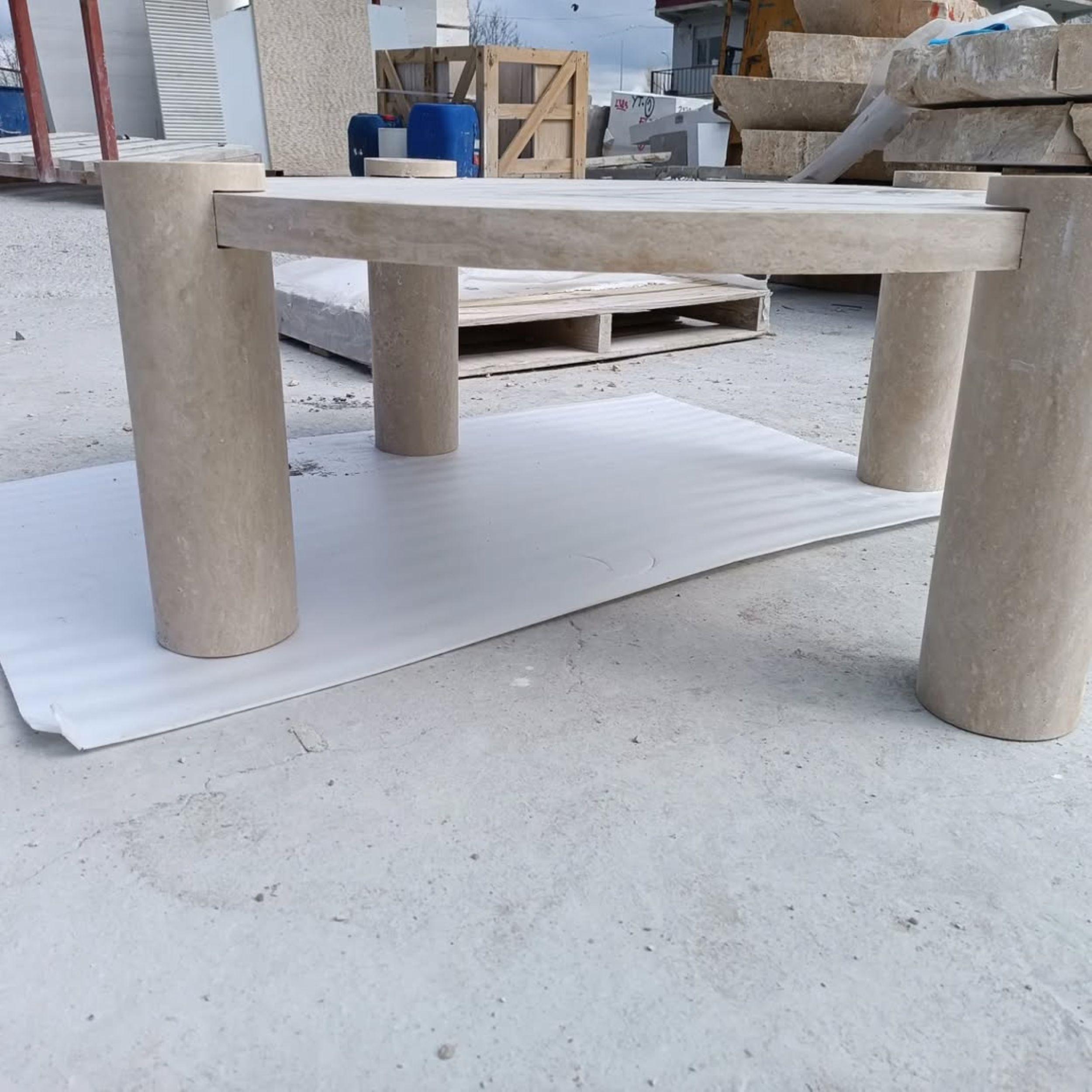 Bring timeless sophistication into your home with this handcrafted travertine coffee table, a statement piece that blends natural stone artistry with modern minimalism.