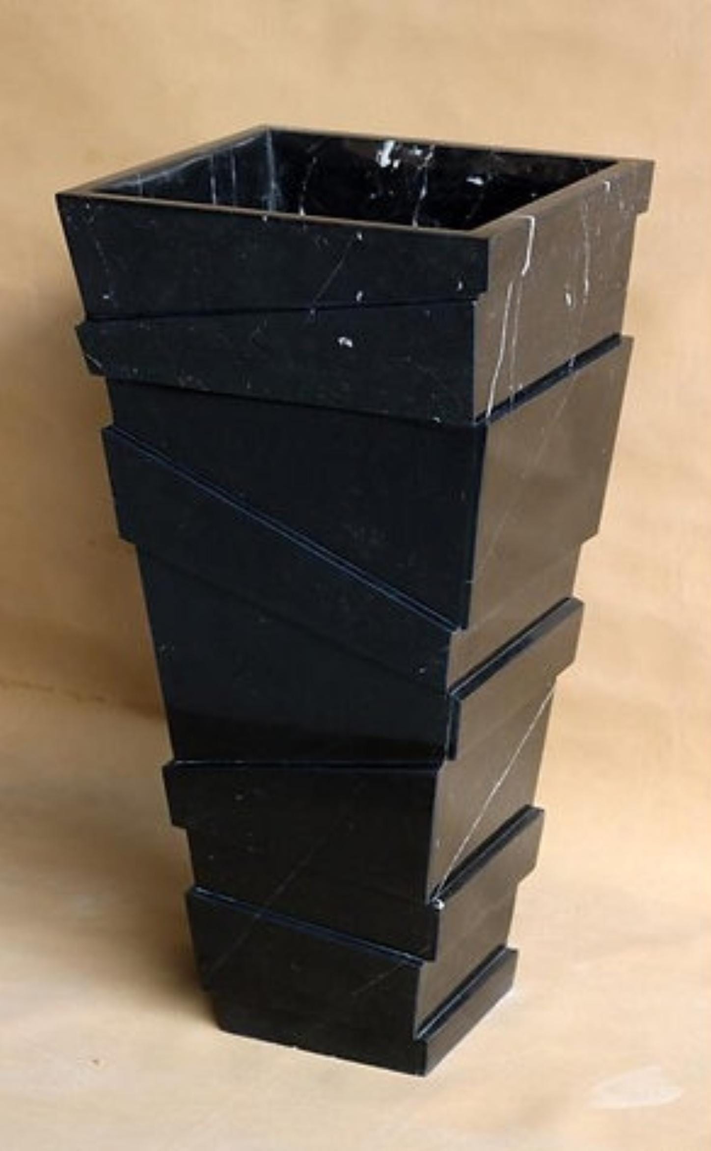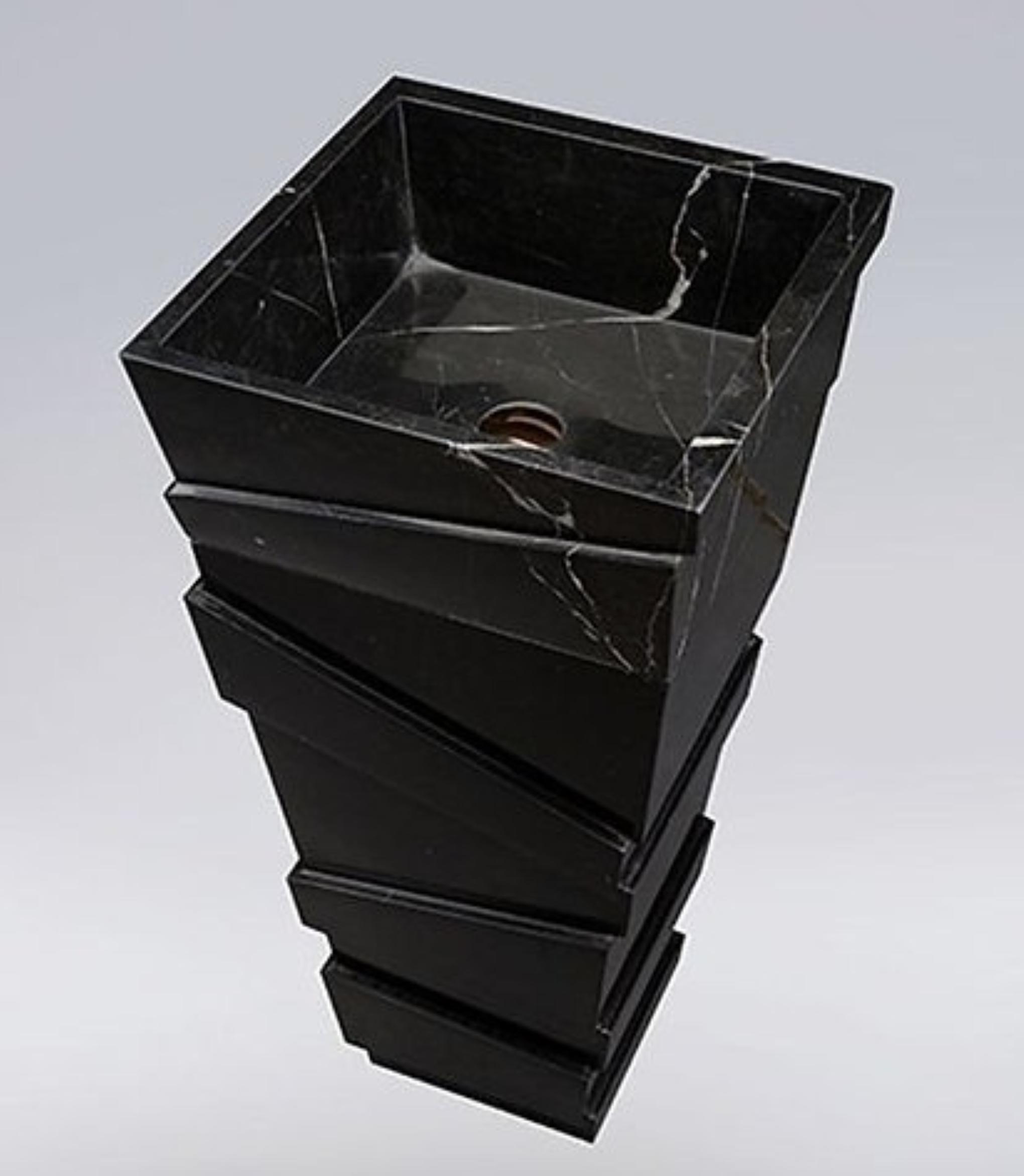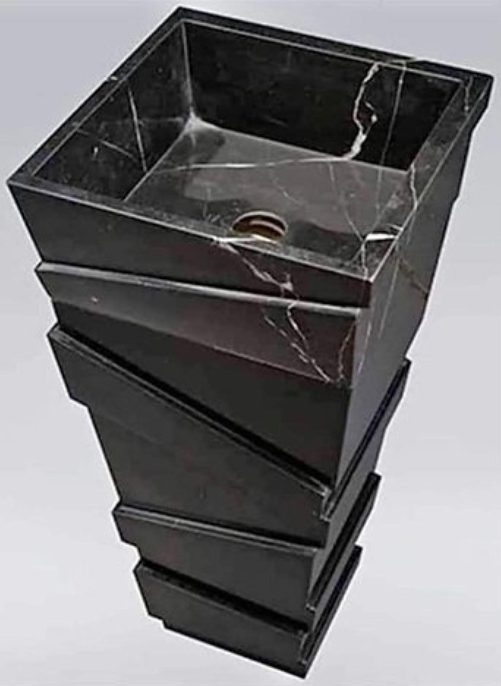 Make a bold architectural statement with this striking Nero Marquina pedestal washbasin. Crafted from luxurious black marble with dramatic white veining, this freestanding sink combines contemporary geometry with timeless Italian stone elegance.