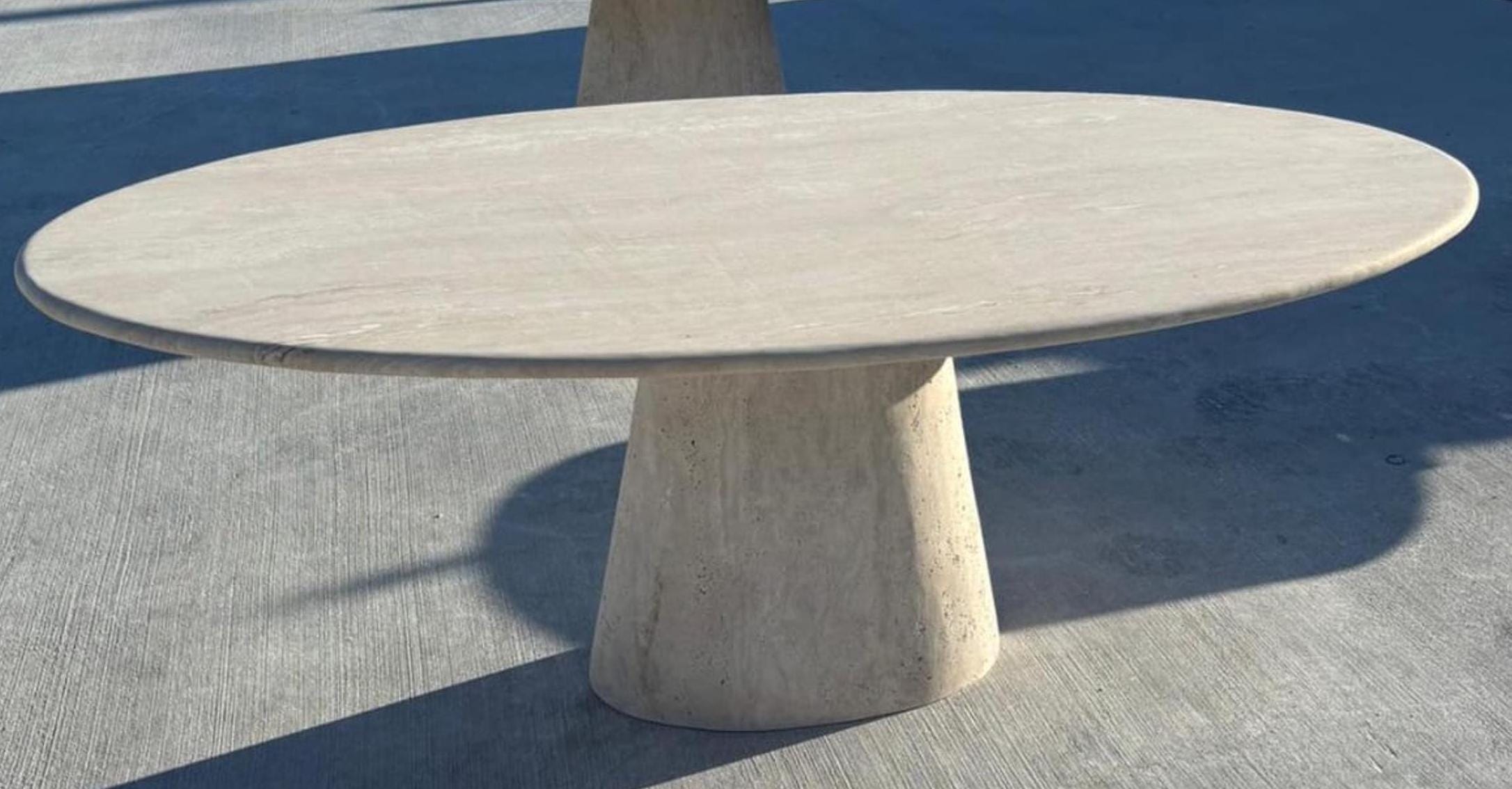 Bring timeless elegance to your living space with this handcrafted oval marble coffee table. Designed with clean lines and sculptural balance, this piece features a smooth oval marble top paired with a solid, tapered pedestal base, creating a refined yet contemporary statement.