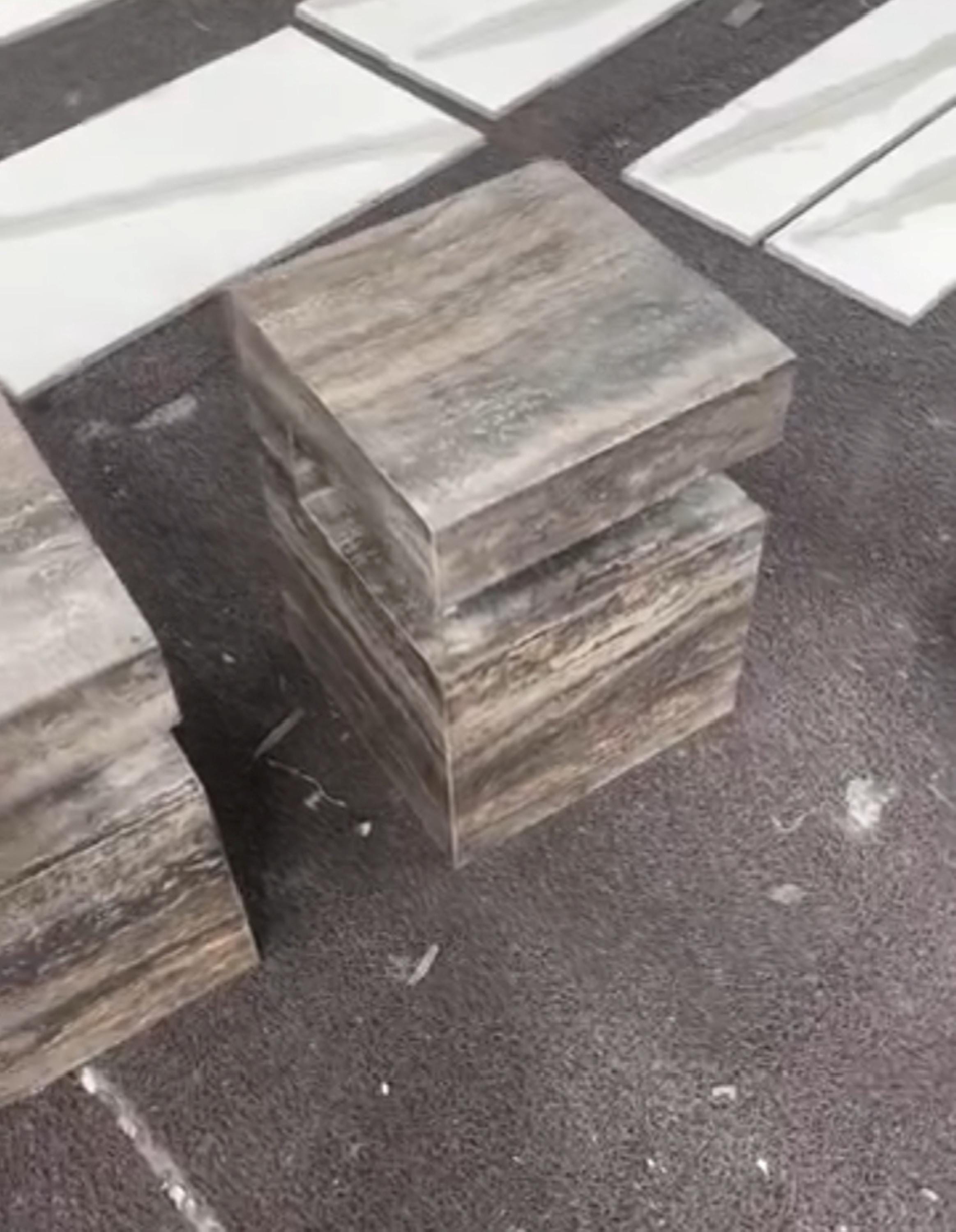 This modern Silver Travertine Side Table adds a grounded and sophisticated charm to any interior. Crafted from richly veined silver travertine stone, this piece features a clean, minimalist design with soft natural tones and horizontal texture. Whether used as a side table, a sculpture pedestal, or a plinth in an entryway, this handcrafted stone table is a timeless blend of rustic elegance and modern form. Built to last, it offers natural beauty and long-lasting durability to complement a wide variety of decor styles.