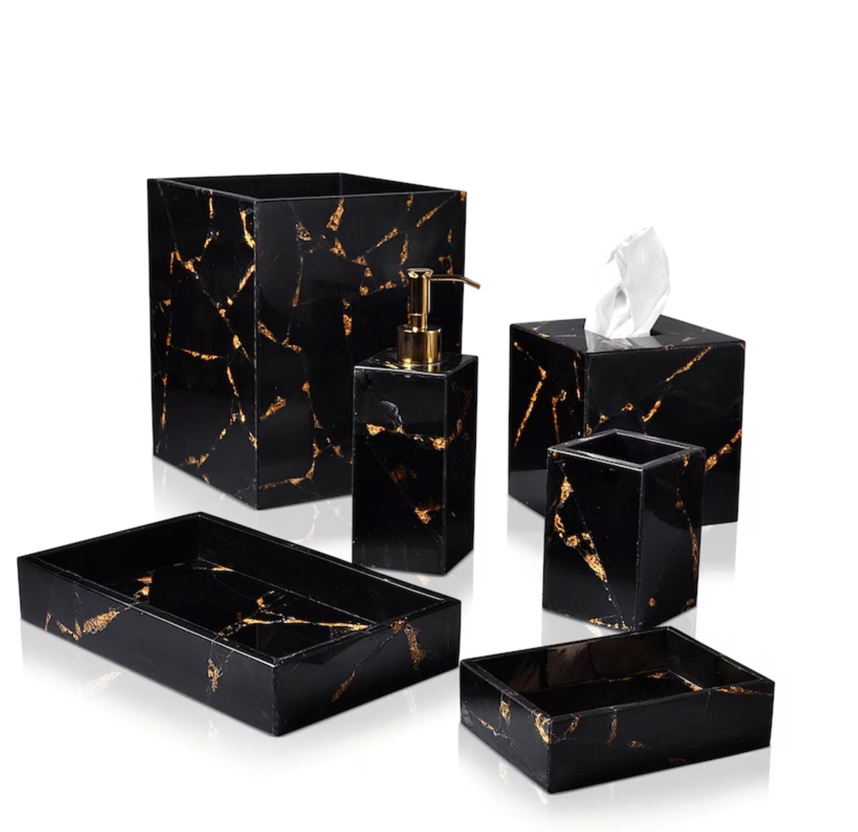 Set of 6 pcs - Tray : 12x8 inch , Soap Dispenser : 3x3x6 inch , Tooth Brush Holder 3x3x6 , Napkin Holder : 6x6x6 inch