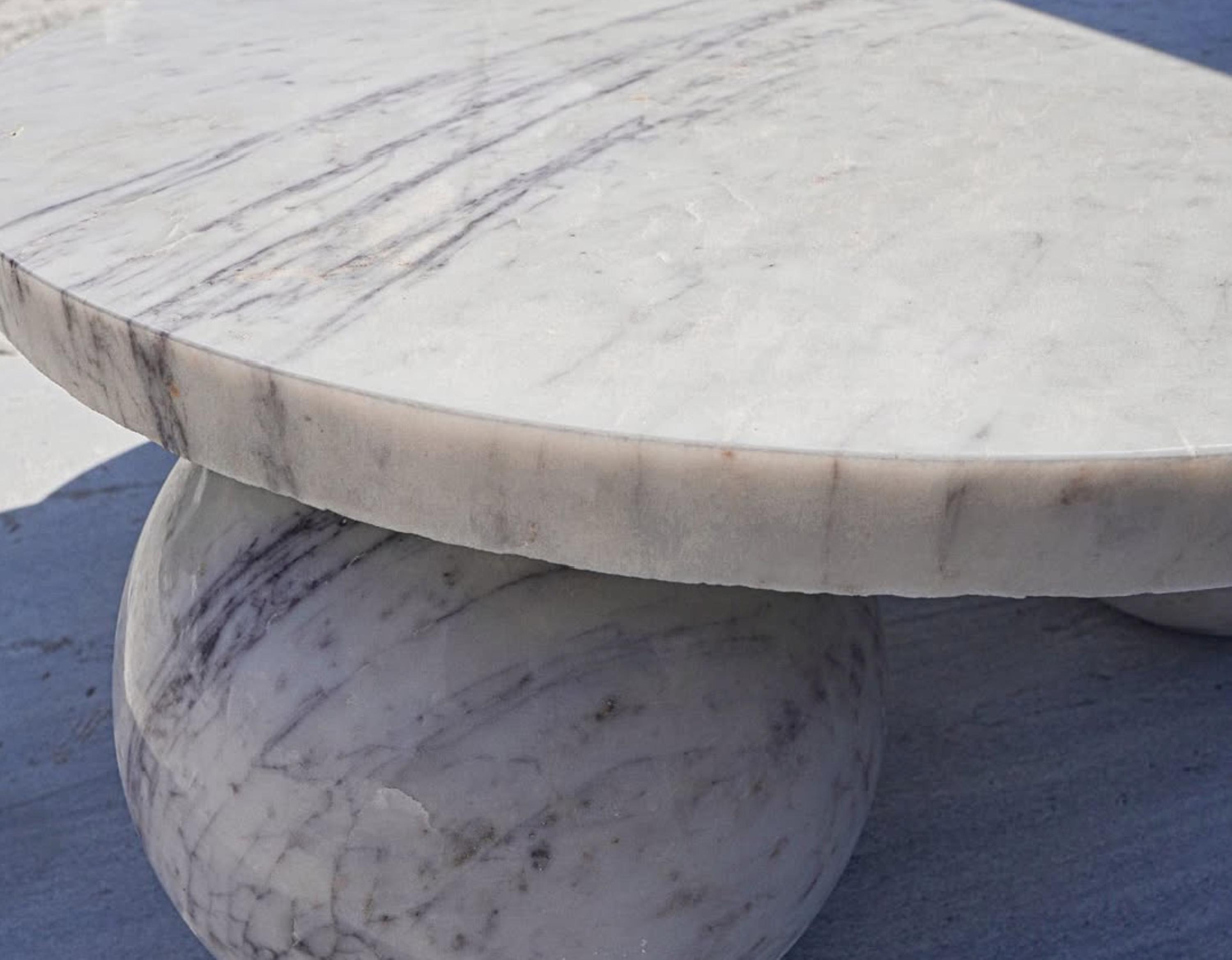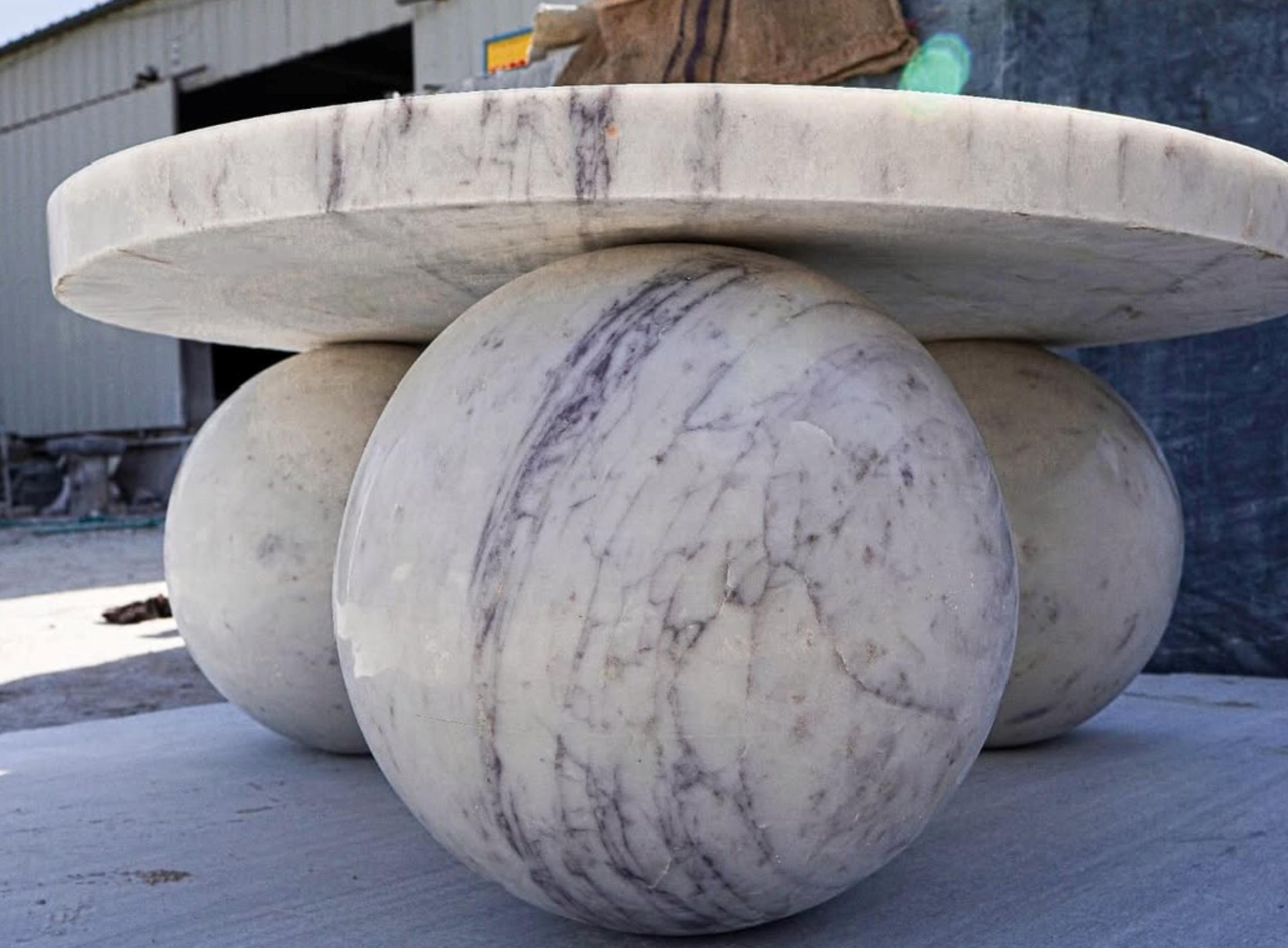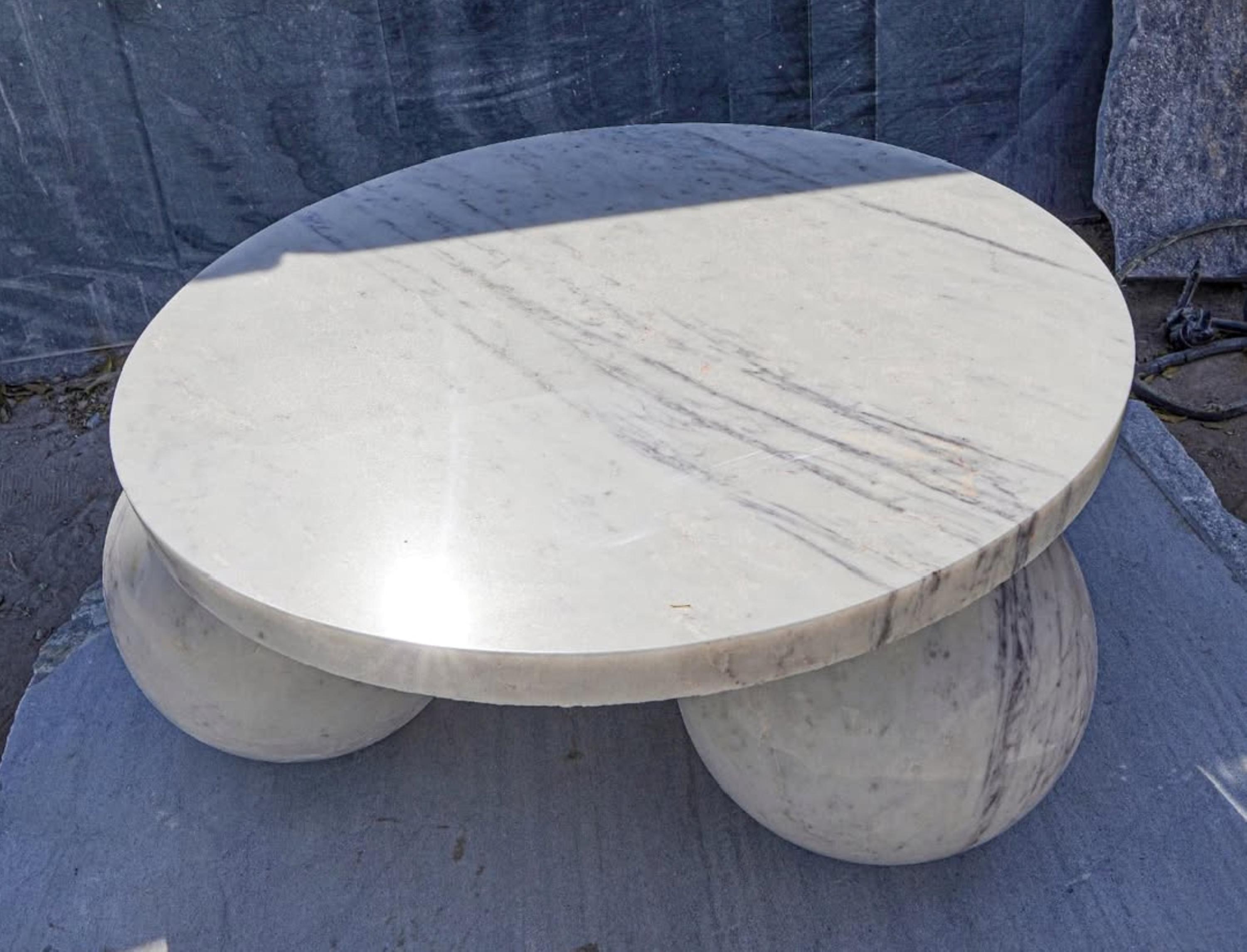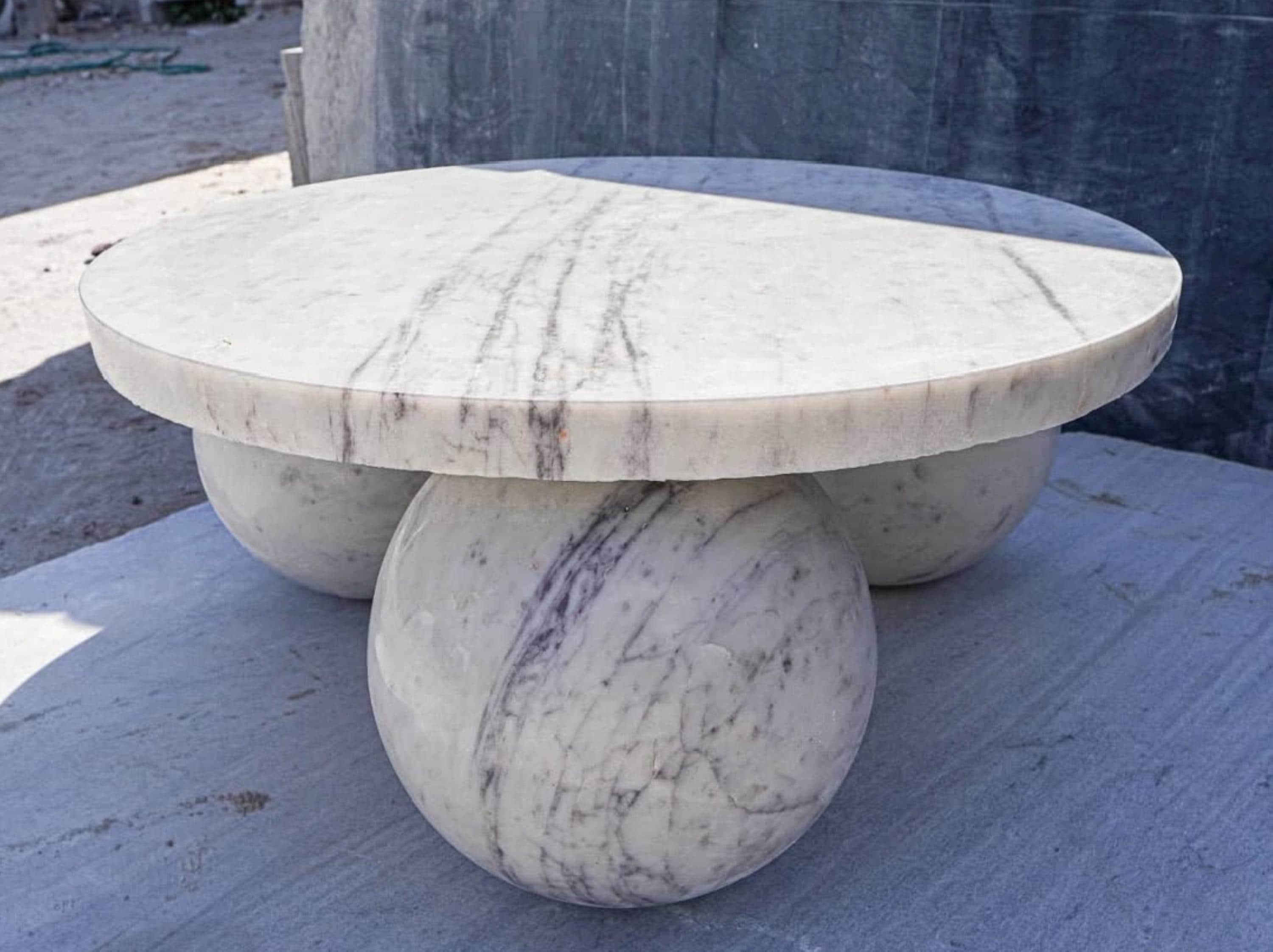 Elegant Round Indian white marble Marble Coffee Table with Bold Spherical Base Luxury Home Decor