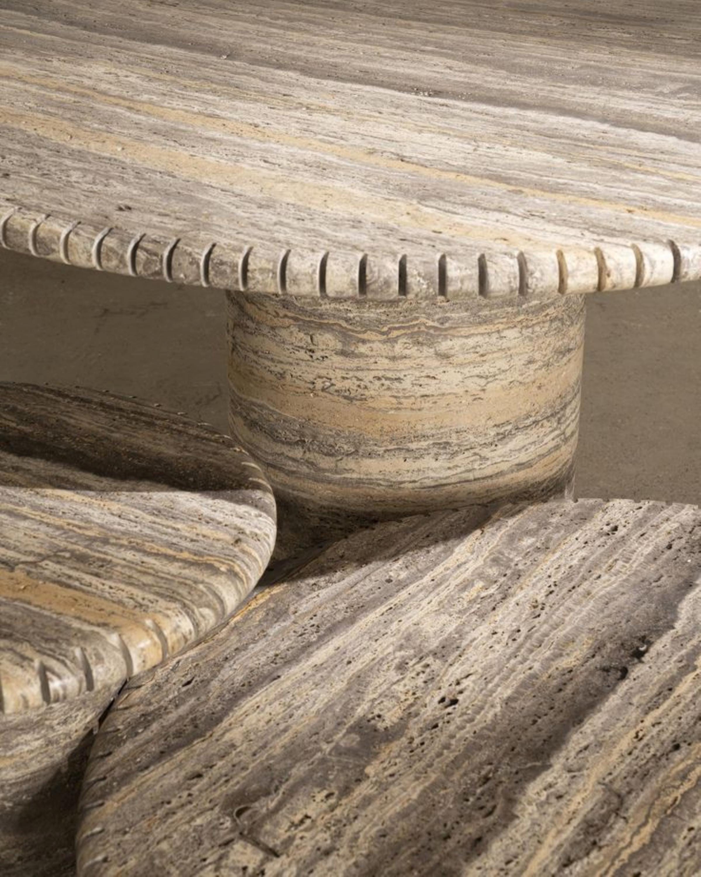 Crafted by expert artisans in India, this handcrafted marble table top set is made from premium-quality travertine, offering durability, natural charm, and timeless appeal.