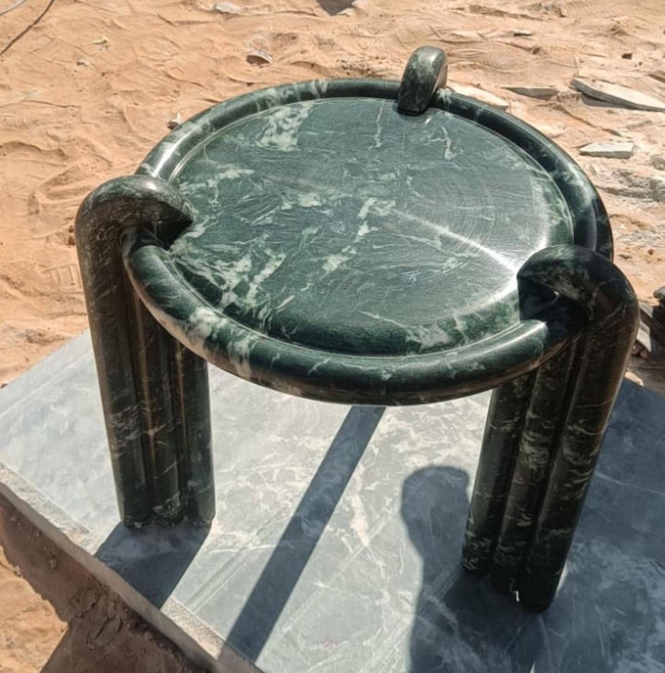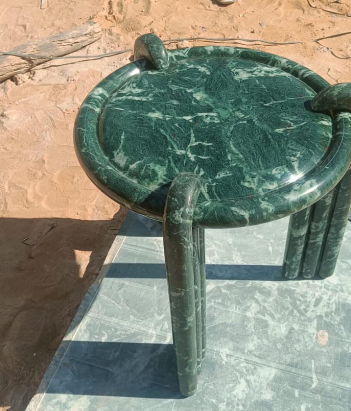 This elegant round green marble coffee table brings a bold and luxurious aesthetic to any living space. Featuring a smooth green marble tabletop and a unique spherical base design, this piece combines modern style with timeless material. Perfect for both contemporary and classic interiors, this coffee table is a statement of luxury and sophistication, enhancing the ambiance of any home decor. Crafted with high-quality marble, it ensures durability and long-lasting beauty.