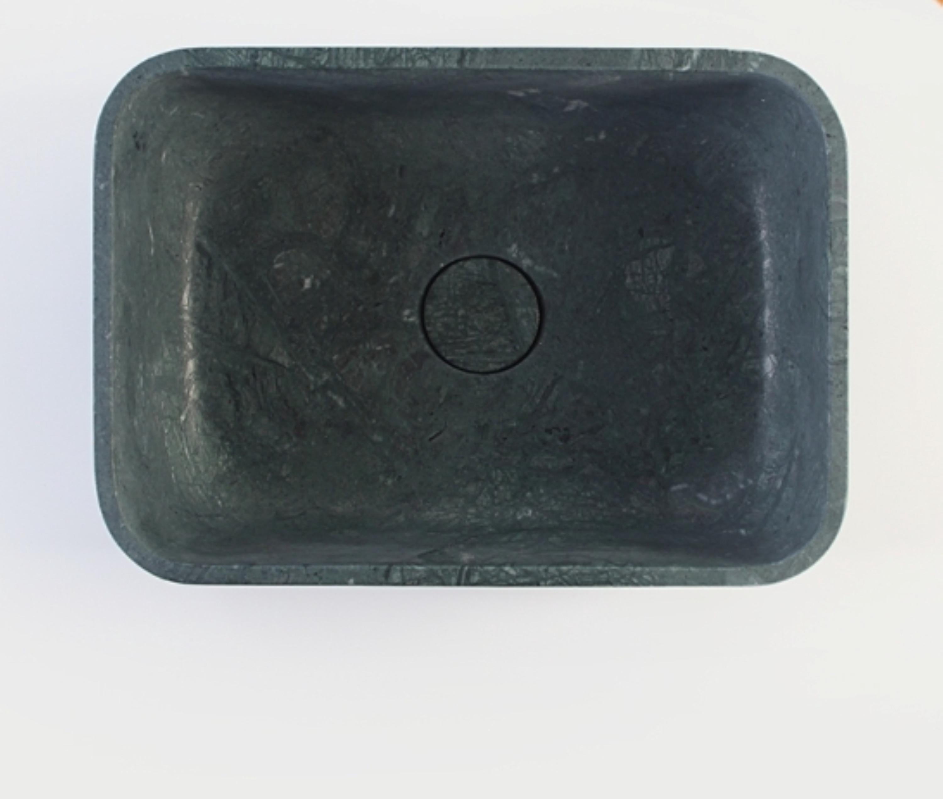 Measuring 14.9 inches in length, 10.5 inches in width, and 5 inches in height, this basin is designed for both practicality and elegance. Its rectangular form with smooth, rounded edges balances minimalism and sophistication. Hand-polished by skilled artisans, it ensures durability and an exclusive one-of-a-kind character.