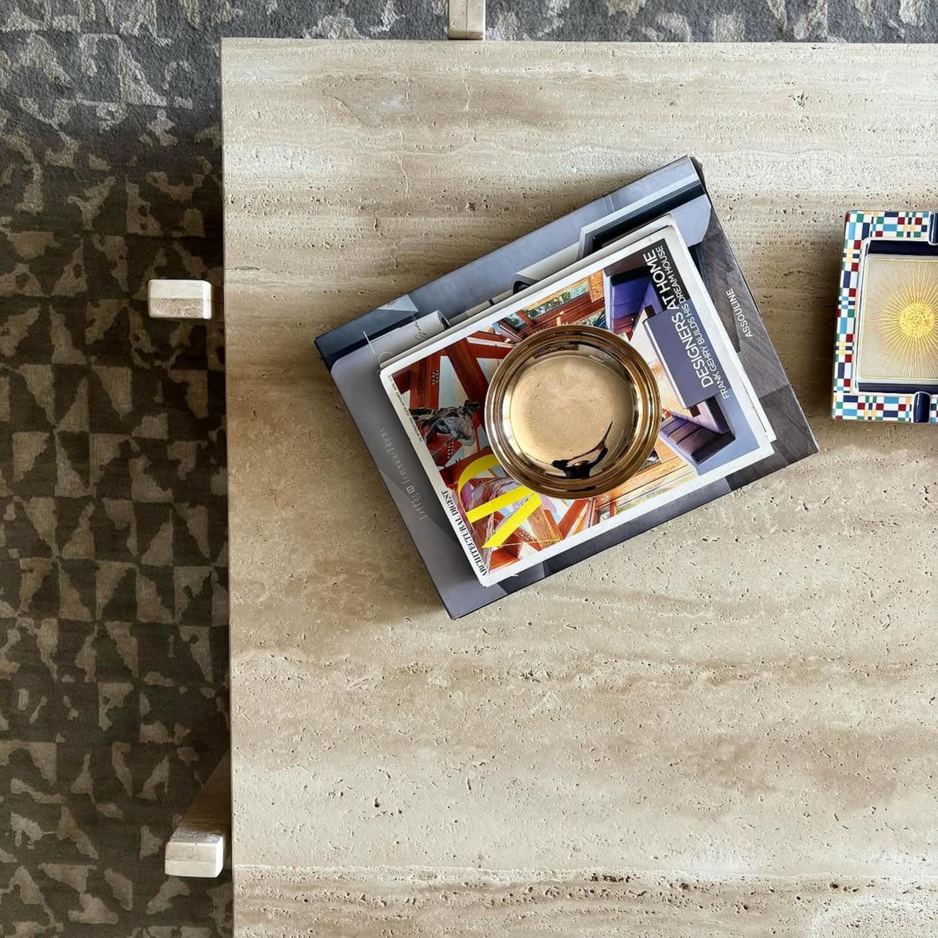 The design blends functionality and artistry, making it versatile for both everyday use and decorative styling. Whether used to serve guests, display books, or anchor your living room décor, this travertine table delivers understated luxury.
