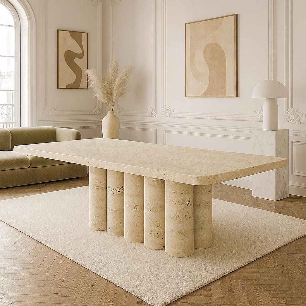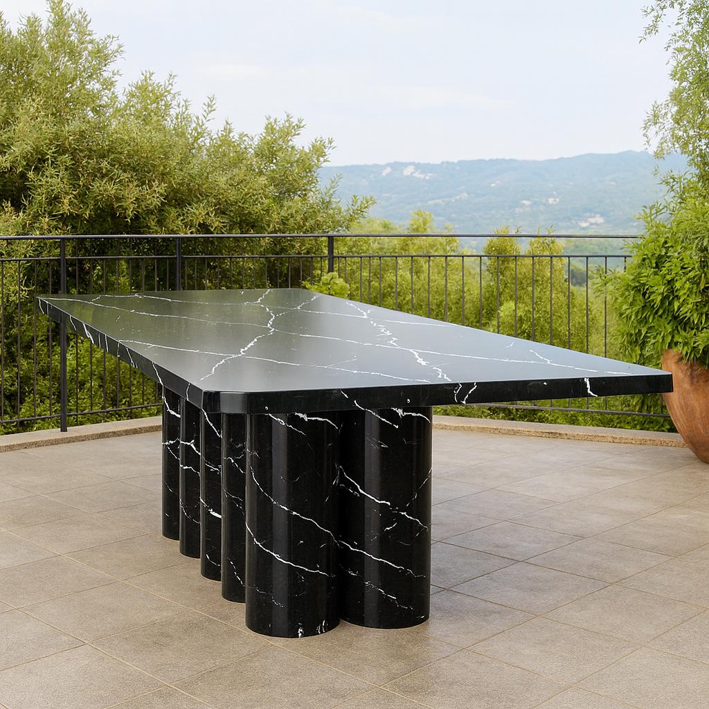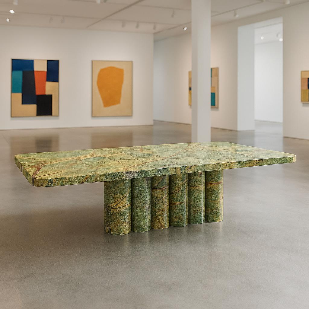 Whether placed in a grand dining room, luxury villa, executive boardroom, or boutique hotel, this table transforms its surroundings. Its spacious proportions allow for formal dinners, lively gatherings, or high-profile meetings, while the natural stone materials guarantee longevity and timeless beauty.