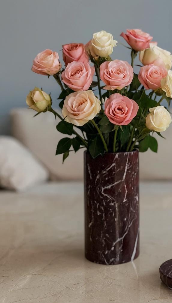 Enhance your space with this elegant and contemporary marble vase, combining functionality and artistry for a timeless addition to any setting.