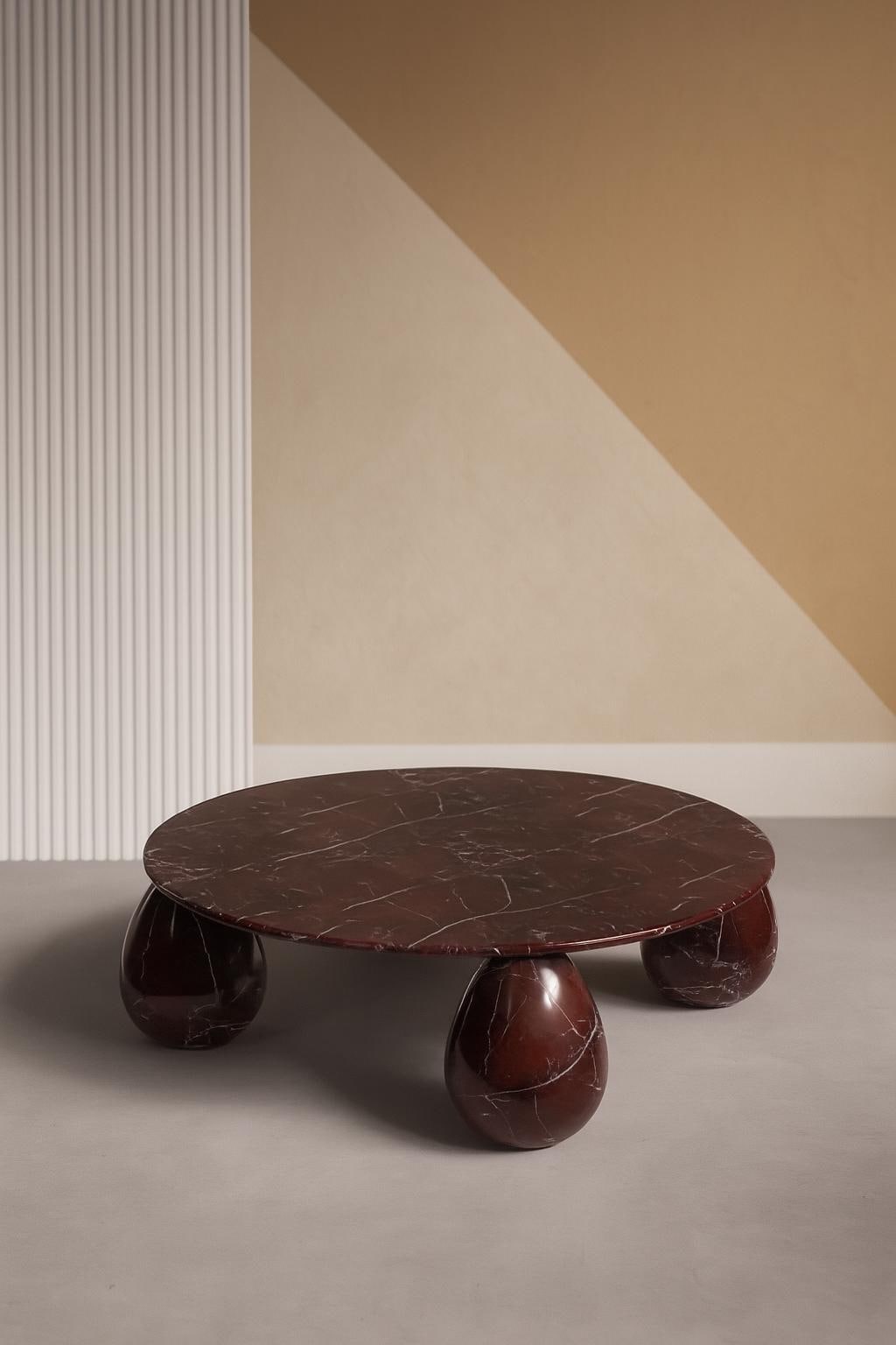 Rosso Levanto Marble Coffee Table – Round Luxury Center Table with Sculptural Legs