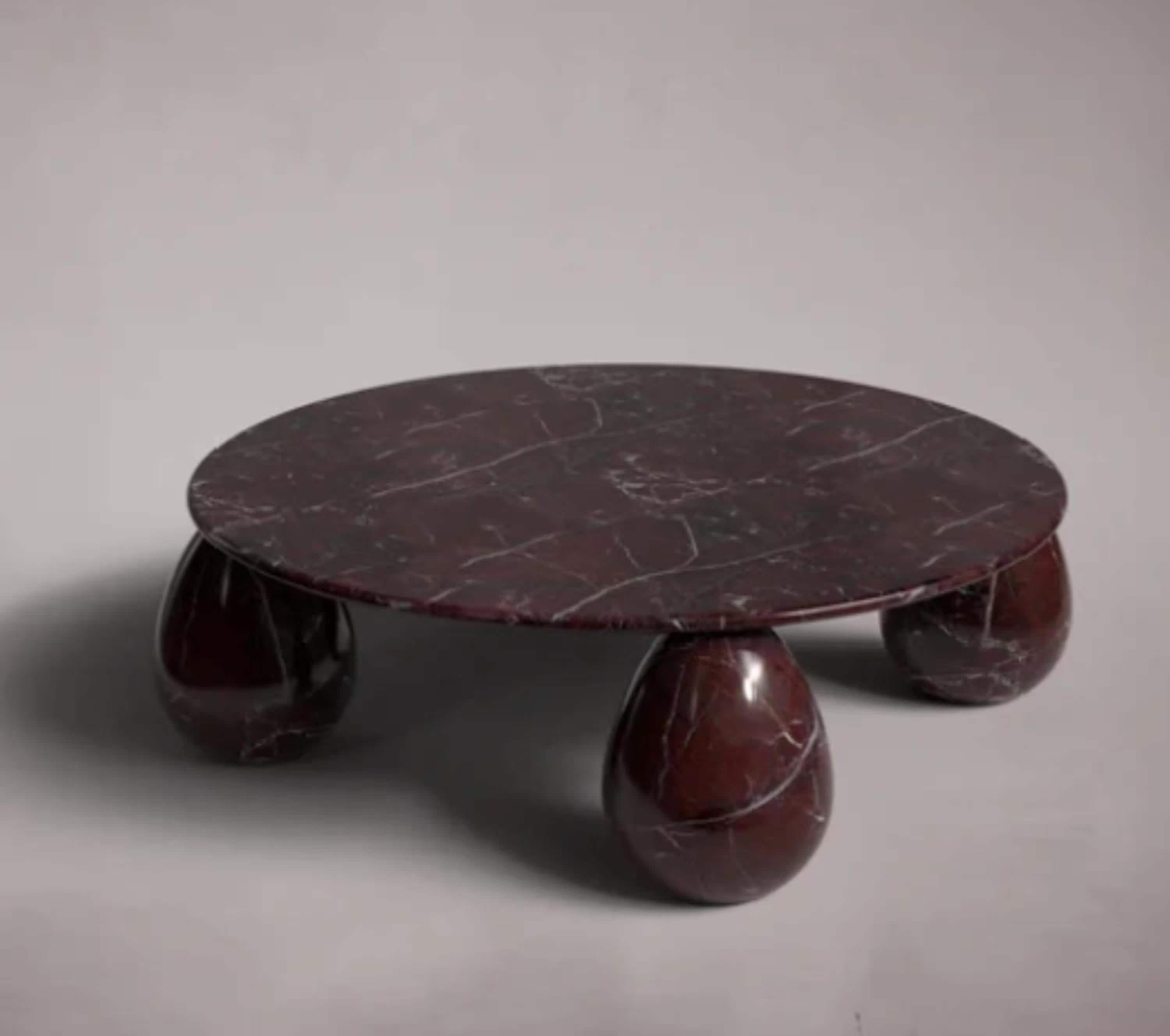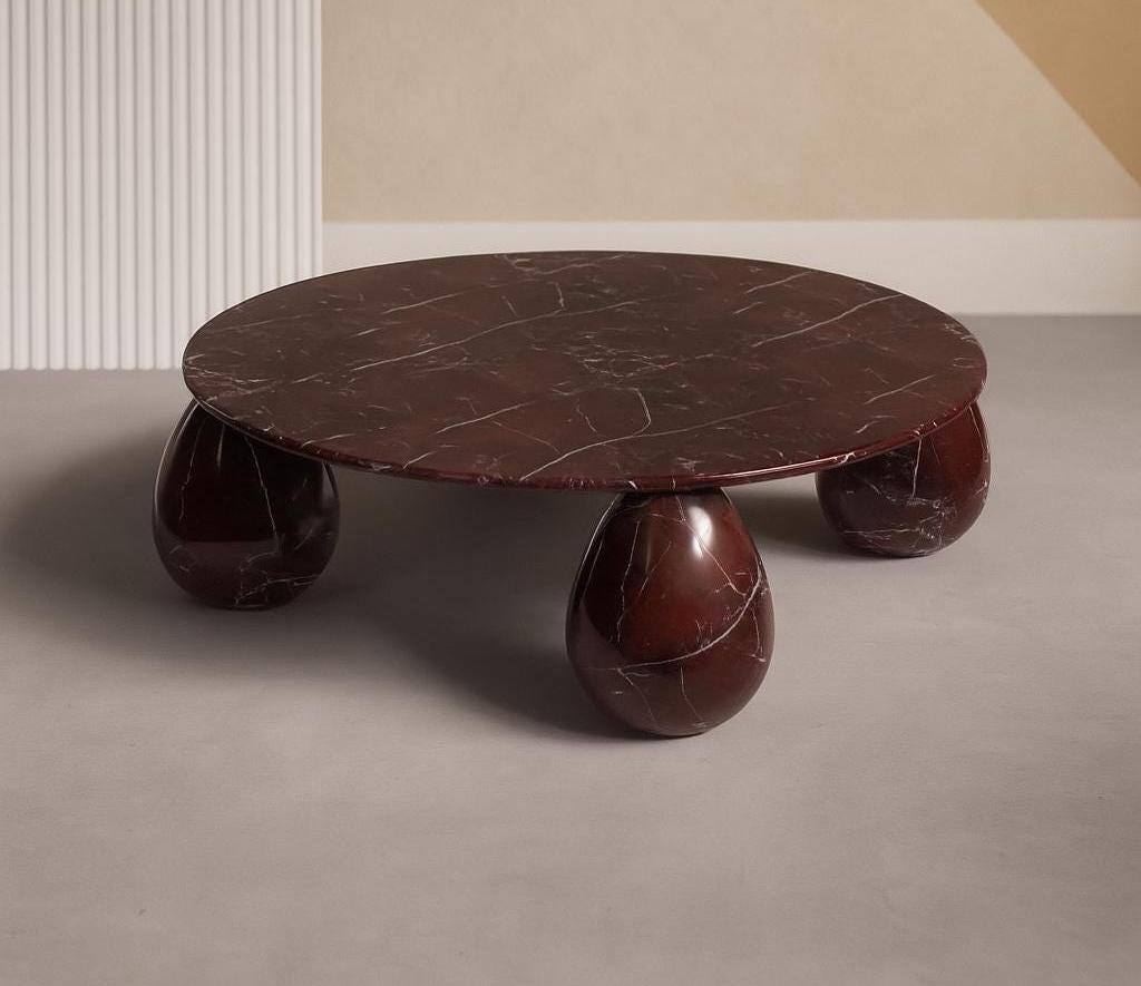 Add timeless elegance to your space with this handcrafted Rosso Levanto marble coffee table. Featuring a deep burgundy tone with bold white veining, this round table stands on sculptural teardrop-shaped legs for a modern yet classic touch. Each piece is made to order and can be customized to fit your size, finish, or design preferences. Perfect for luxurious living rooms, designer interiors, or statement decor.