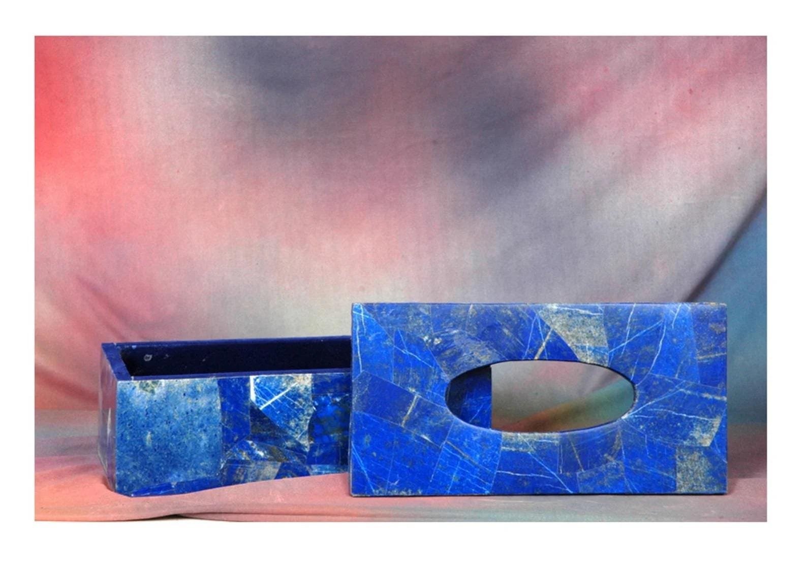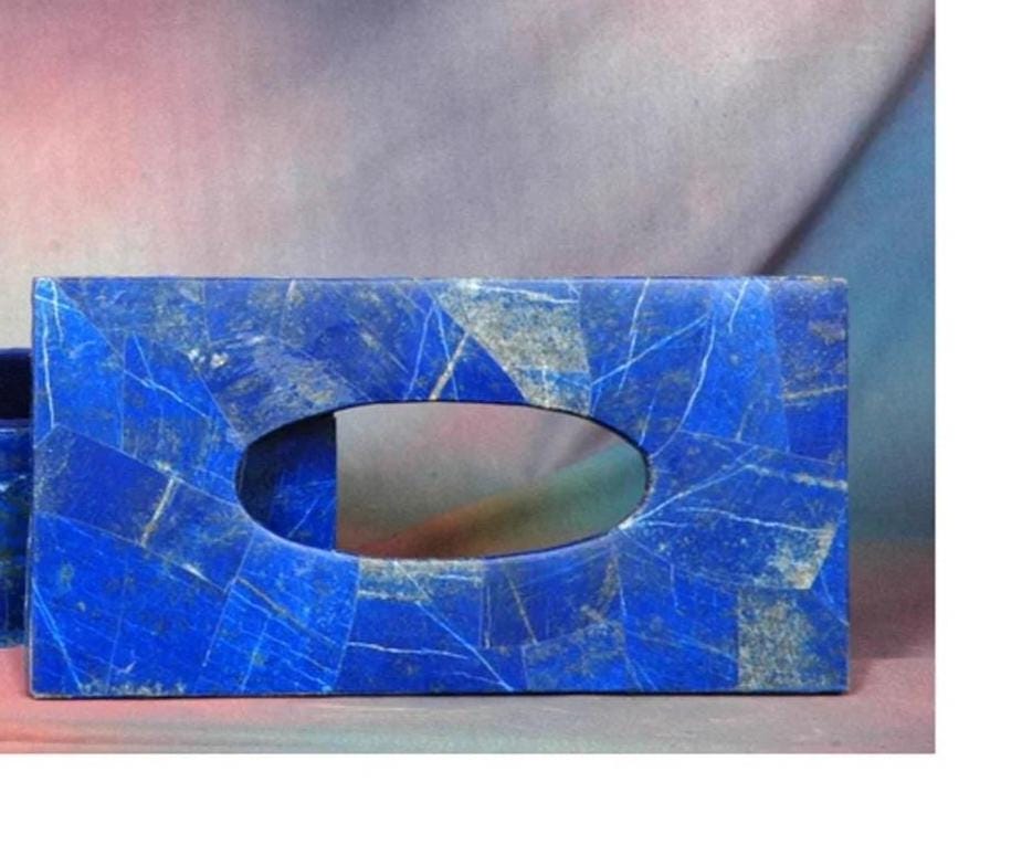 Bring a touch of artistic elegance to your home with this stunning Blue Lapis Mosaic Tissue Box Cover and Matching Tray Set. Designed with a rich blend of deep blues, gold-toned veining, and a glossy stone-inspired finish, this set transforms an everyday item into a beautiful accent piece.