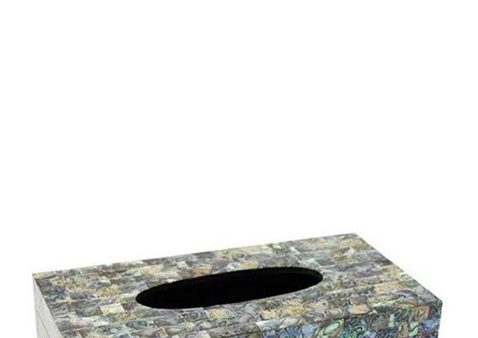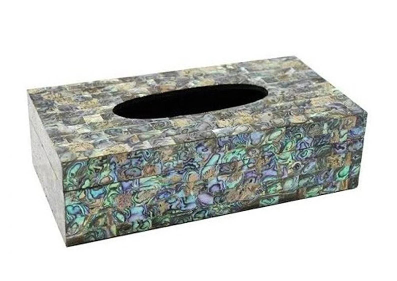 Abalone Shell Mosaic Tissue Box Cover | Iridescent Rectangular Tissue Holder | Coastal Bathroom Décor