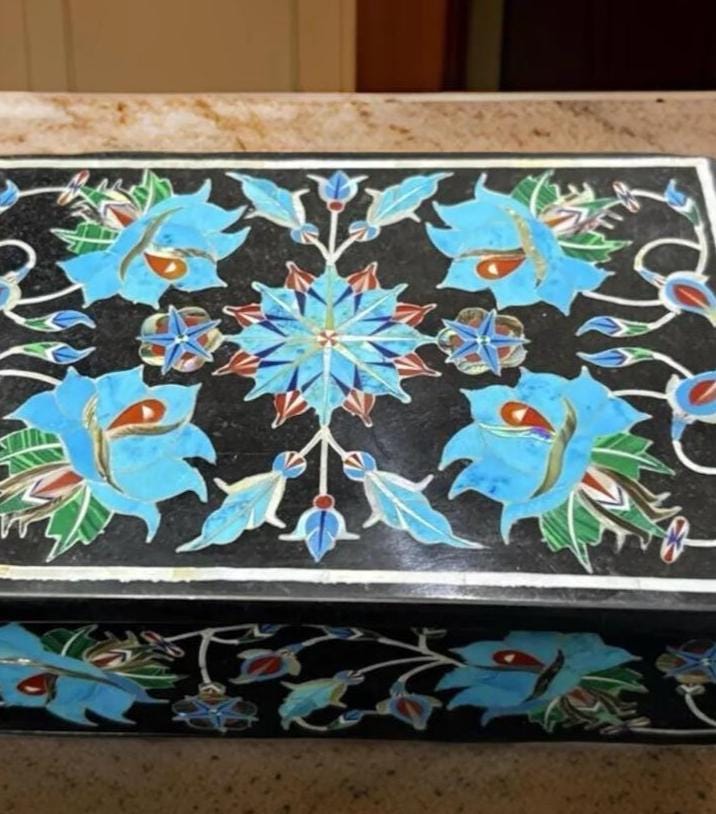 Whether you're looking for a thoughtful gift or a special decorative accent for your own space, this inlay box brings charm, craftsmanship, and color to any room.
