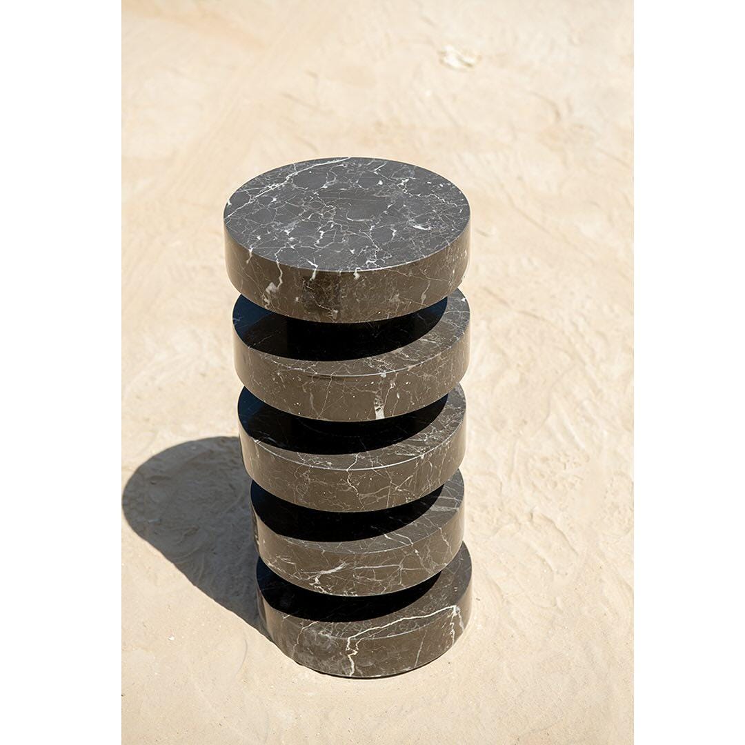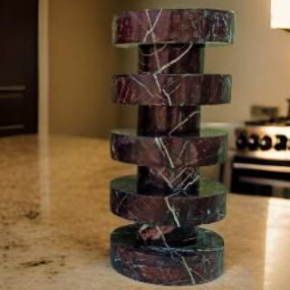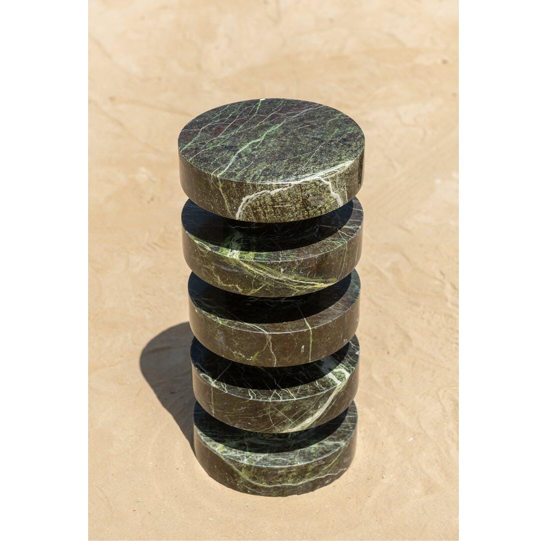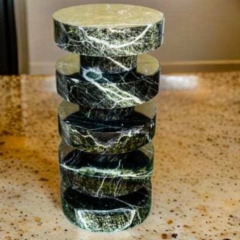 Verde Marble Sculptural Side Table – Stacked Disc Design in Polished Stone
