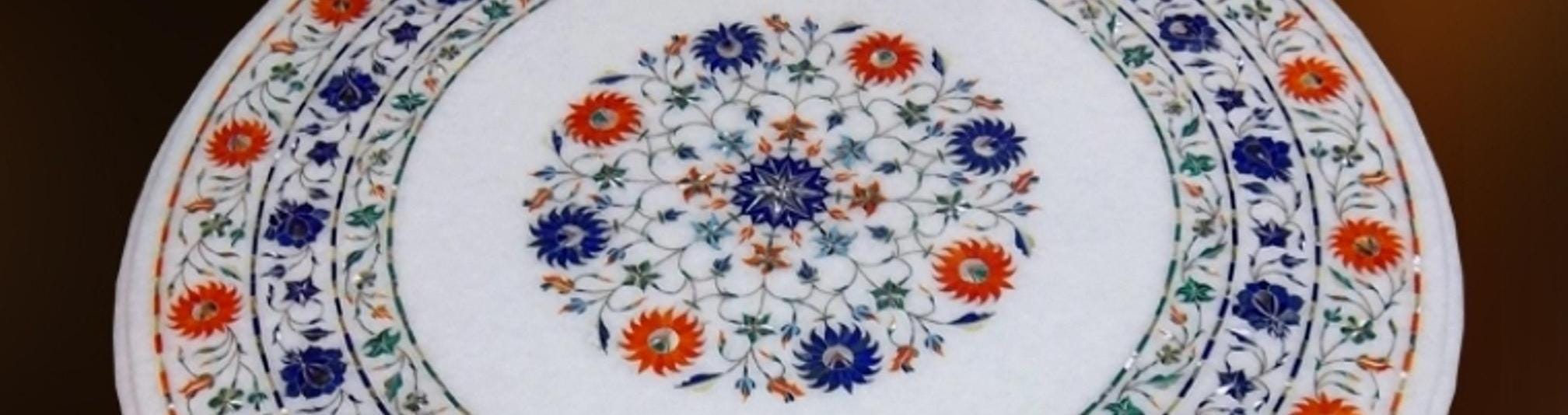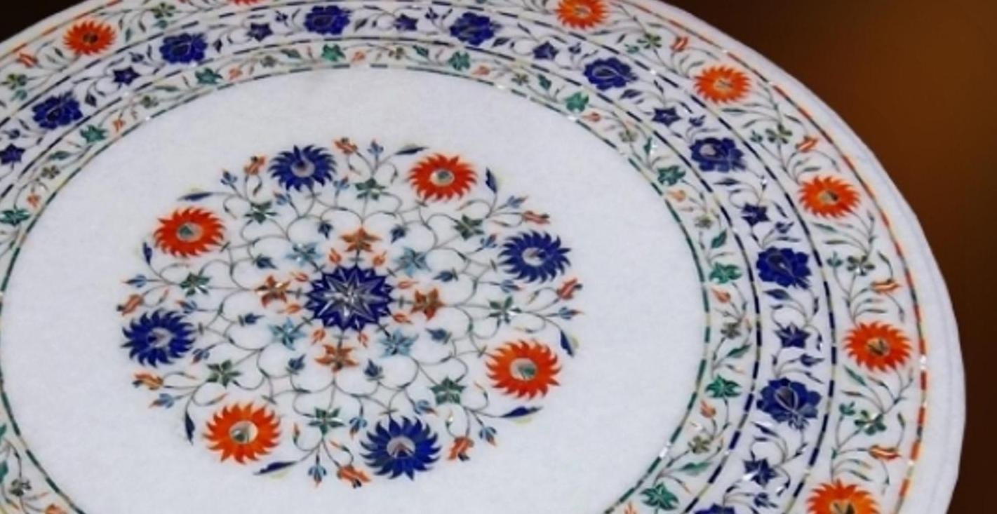 Features Pietra Dura art, showcasing intricate designs.