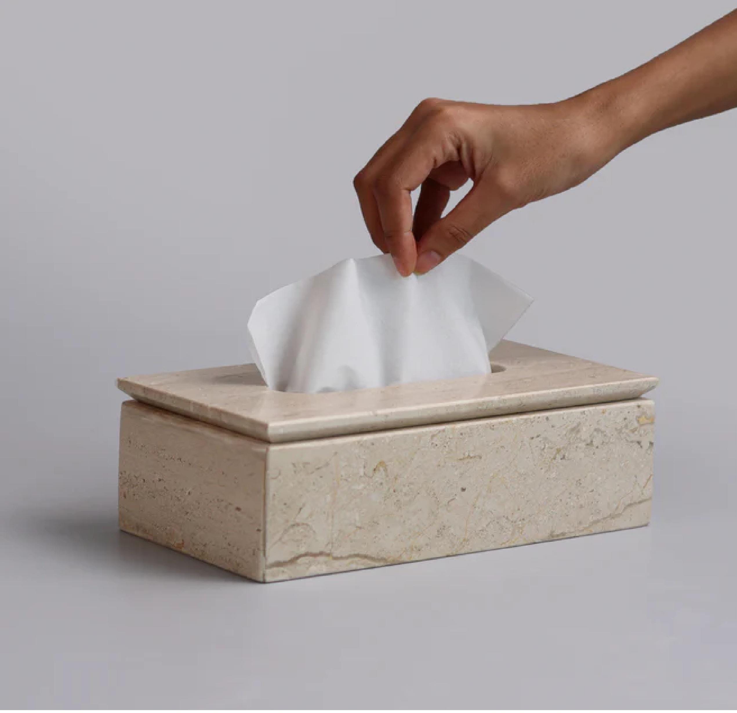 Upgrade your décor with timeless stone craftsmanship that brings beauty and durability to your daily essentials. Add a touch of sophistication to your space with this luxurious Dyna marble tissue box holder. Handcrafted from premium natural marble, it combines functionality with timeless elegance. Perfect for bathrooms, living rooms, offices, or dining tables, this stylish tissue dispenser enhances any interior décor.