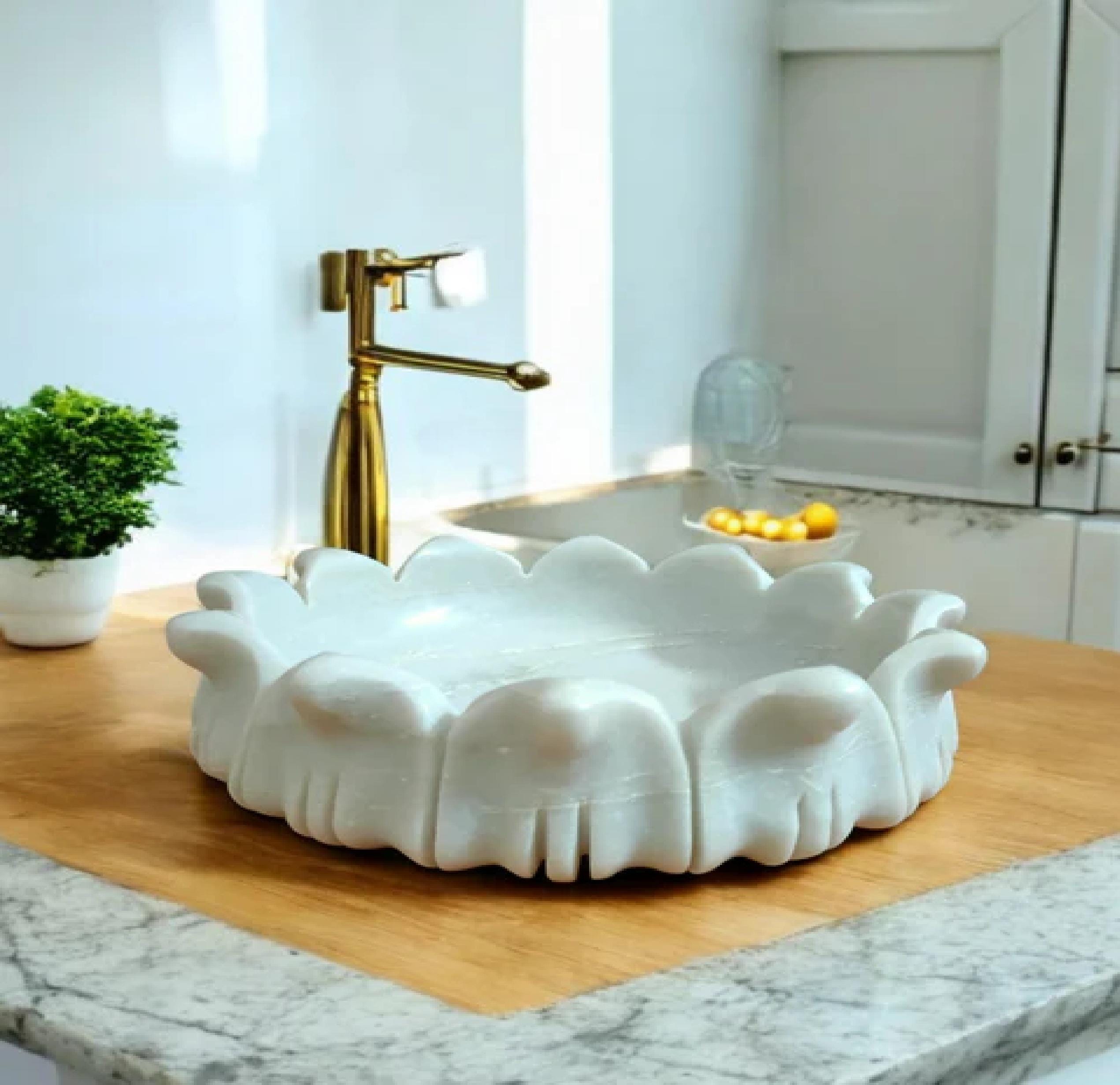 Transform your space with this stunning hand-carved marble sink, a sculptural statement piece that blends natural elegance with modern organic design. Crafted from solid stone, the sink features a beautiful petal-inspired silhouette with soft, rounded contours that bring artistry and sophistication to any bathroom or kitchen.