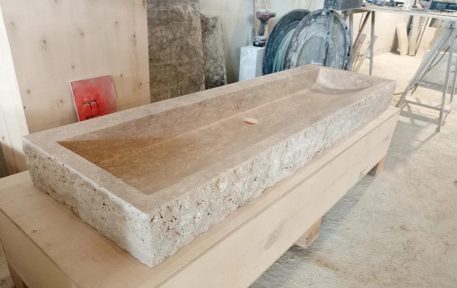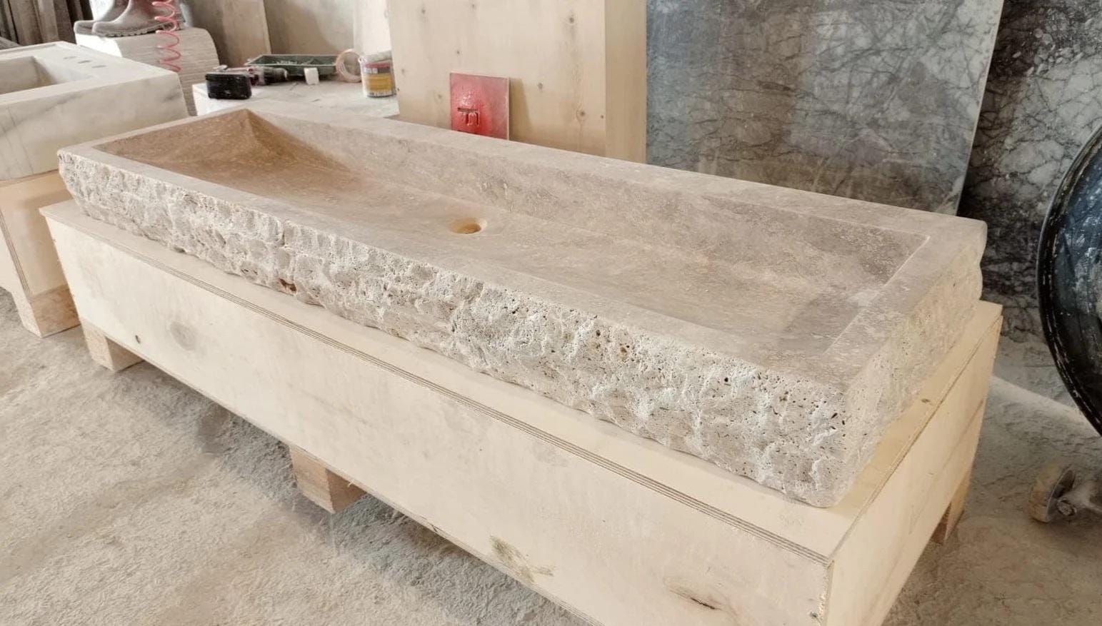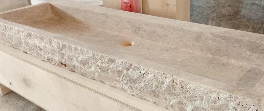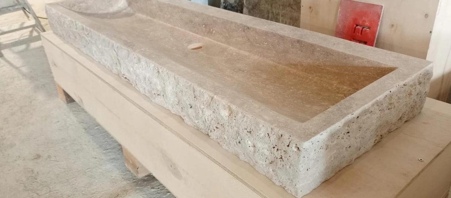 Handmade chiseled traventine sink