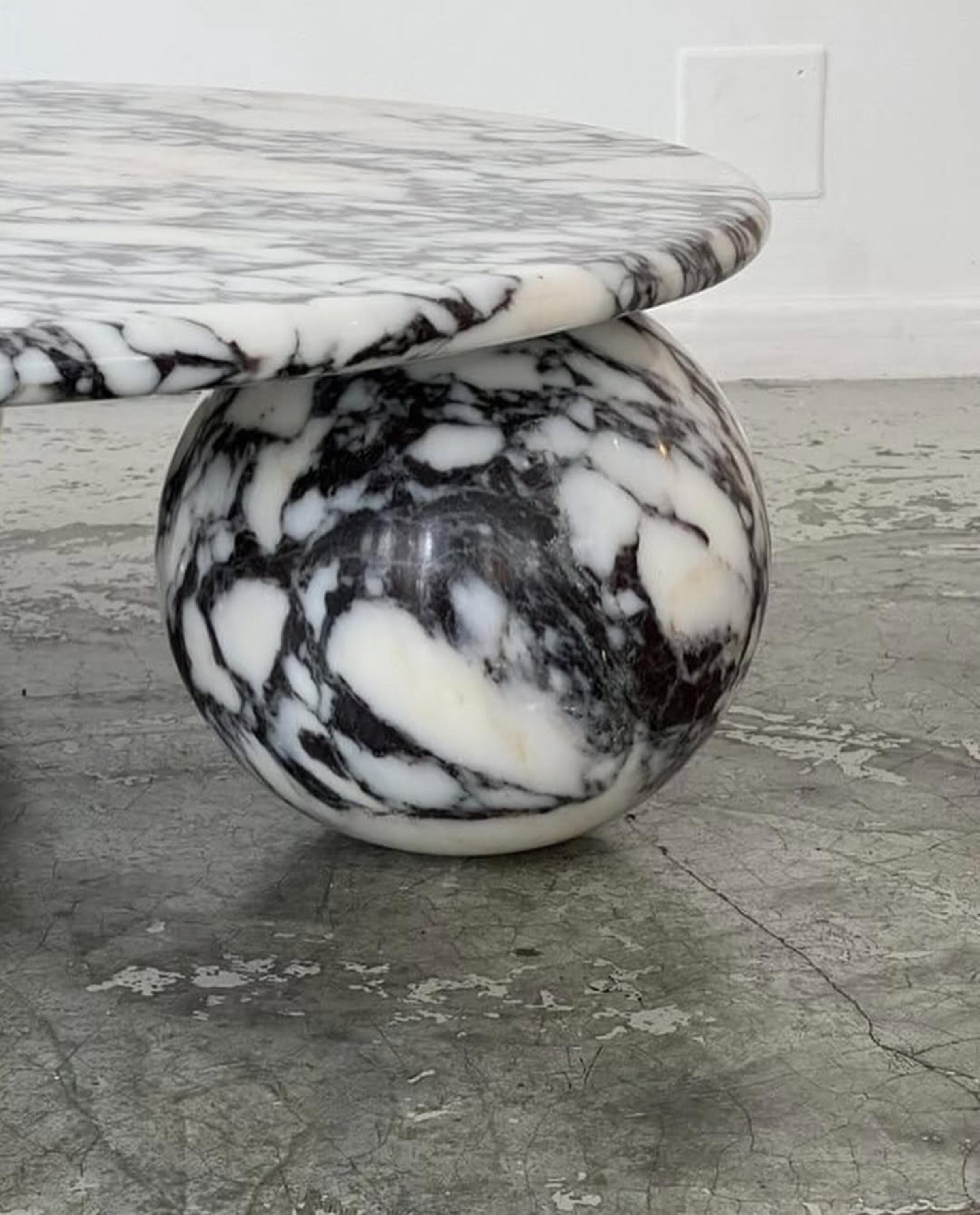 Calacatta Marble Sphere-Base Coffee Table – Contemporary Sculptural Stone Design