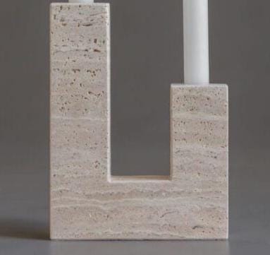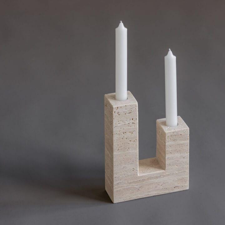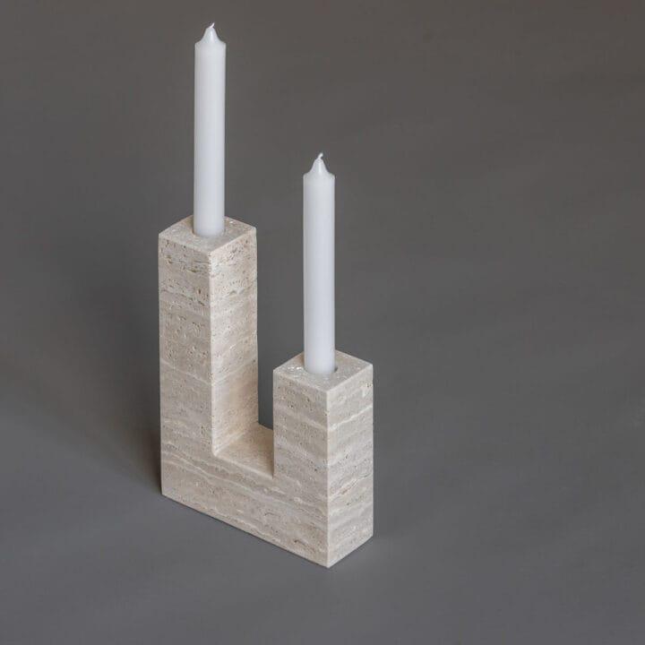 Natural Travertine Candle Holder | L-Shaped Taper Holder | Modern Minimalist Stone Decor