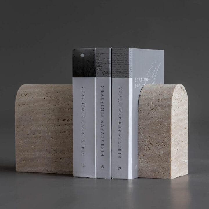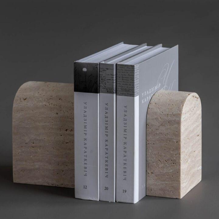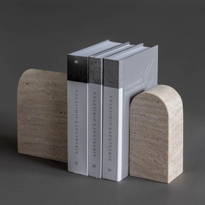 Travertine Bookends Set | Solid Stone Book Holders | Neutral Minimalist Shelf Decor