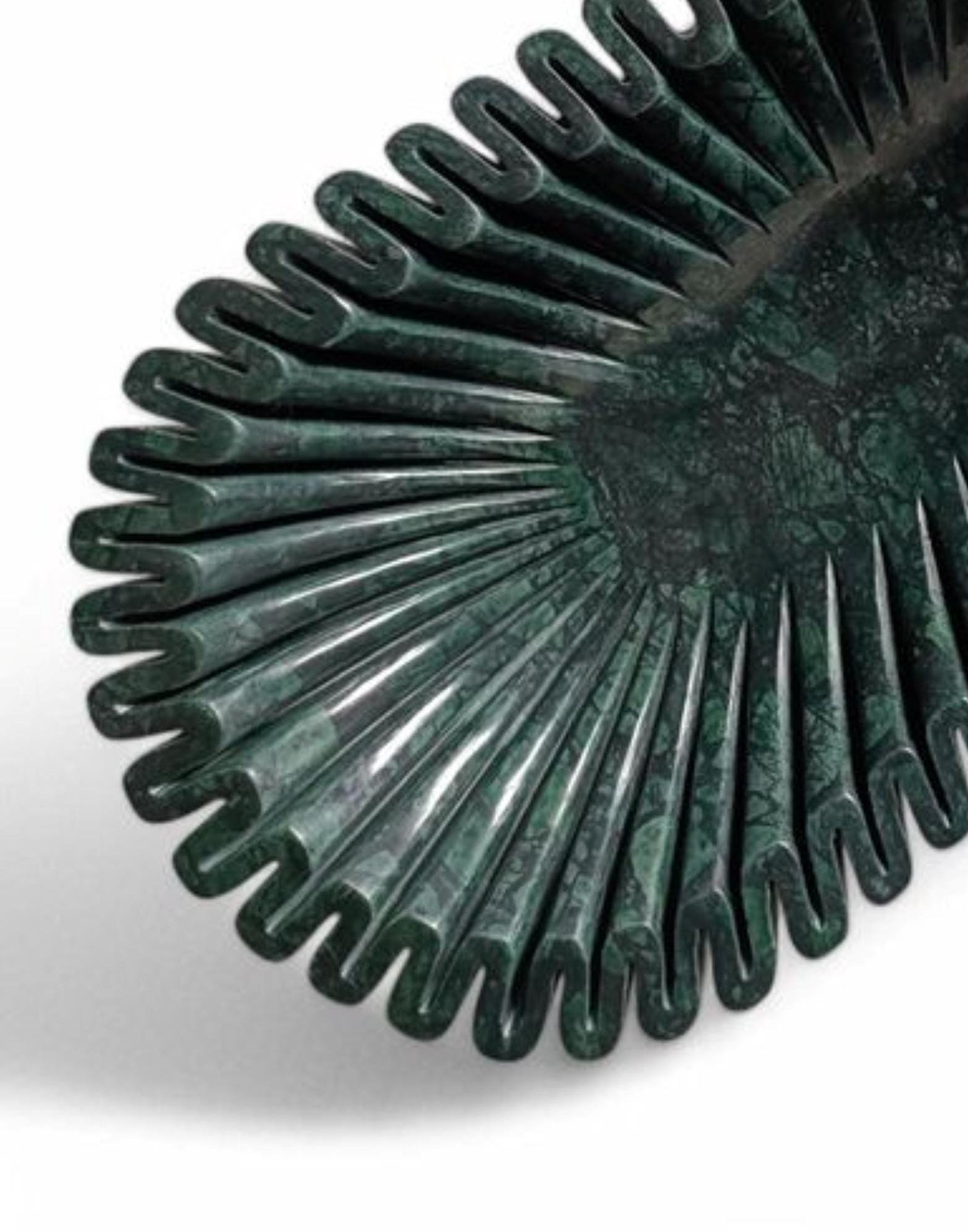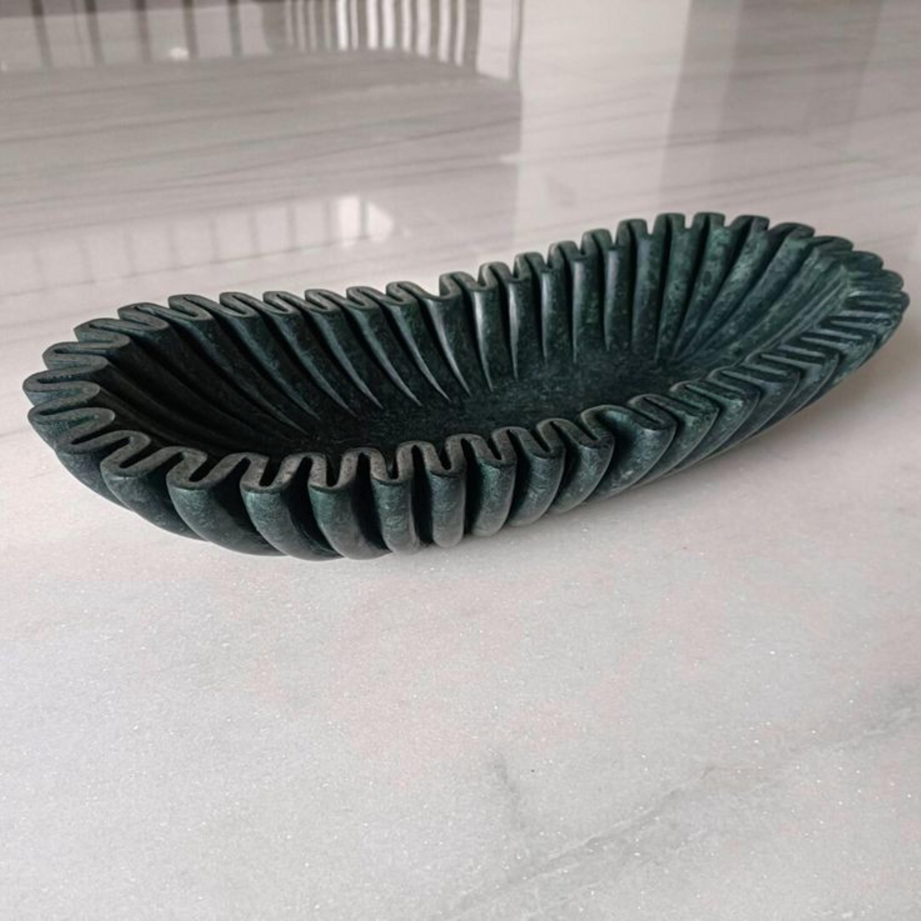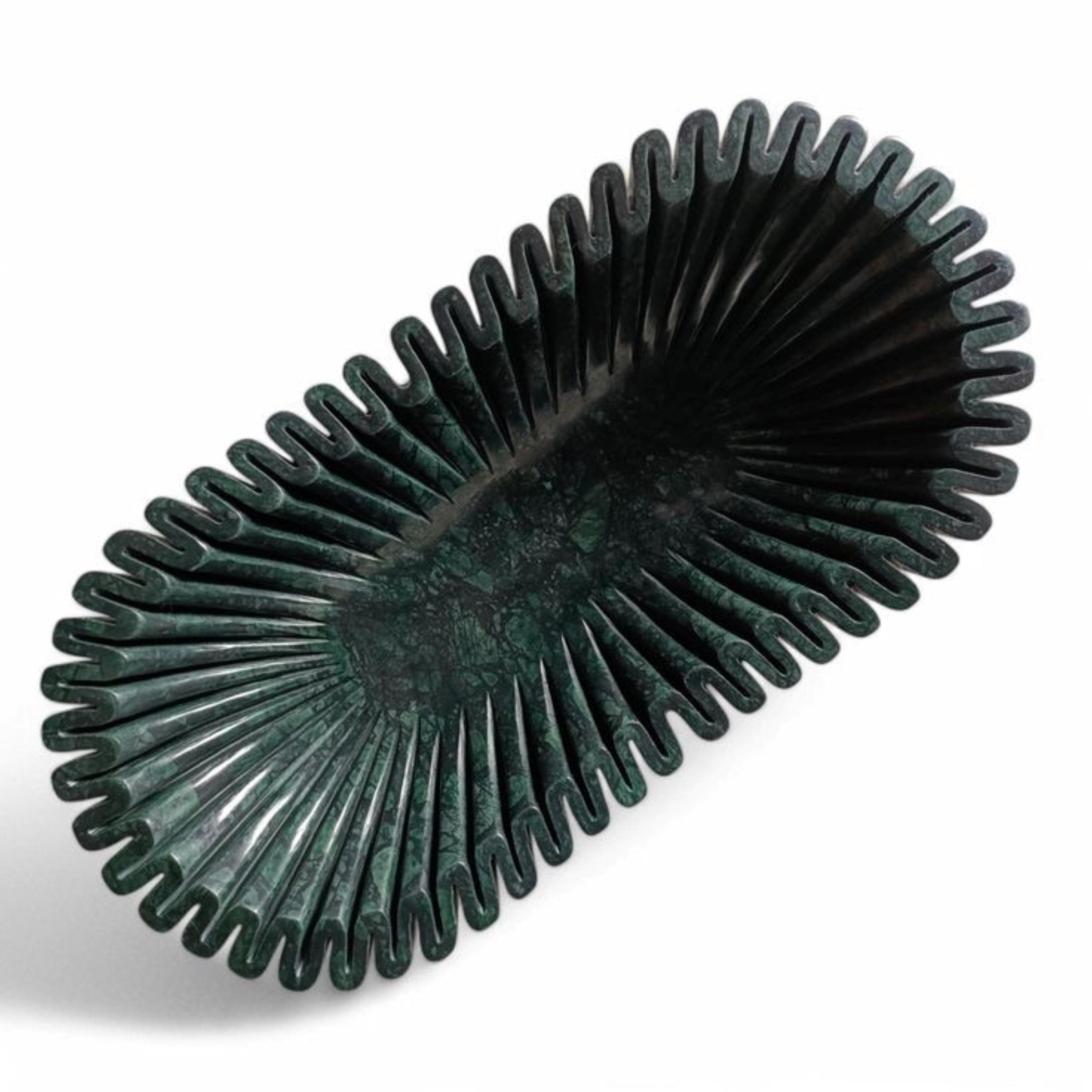 Crafted from solid dark green marble, the bowl showcases natural patterns and subtle color variations that make every piece truly one-of-a-kind. Its organic, flowing shape adds depth and character, making it perfect as a dining table centerpiece, coffee table accent, or entryway décor.