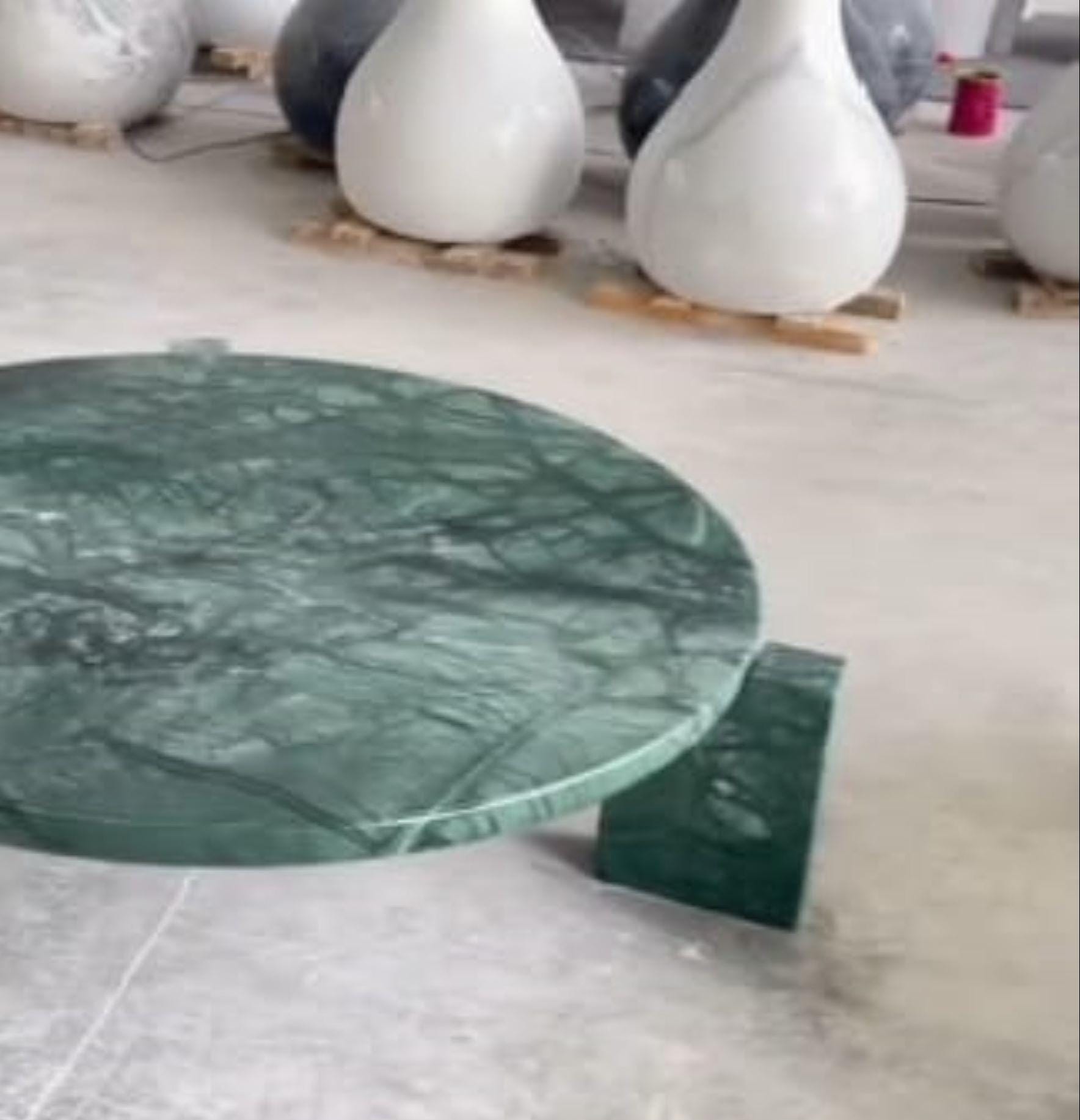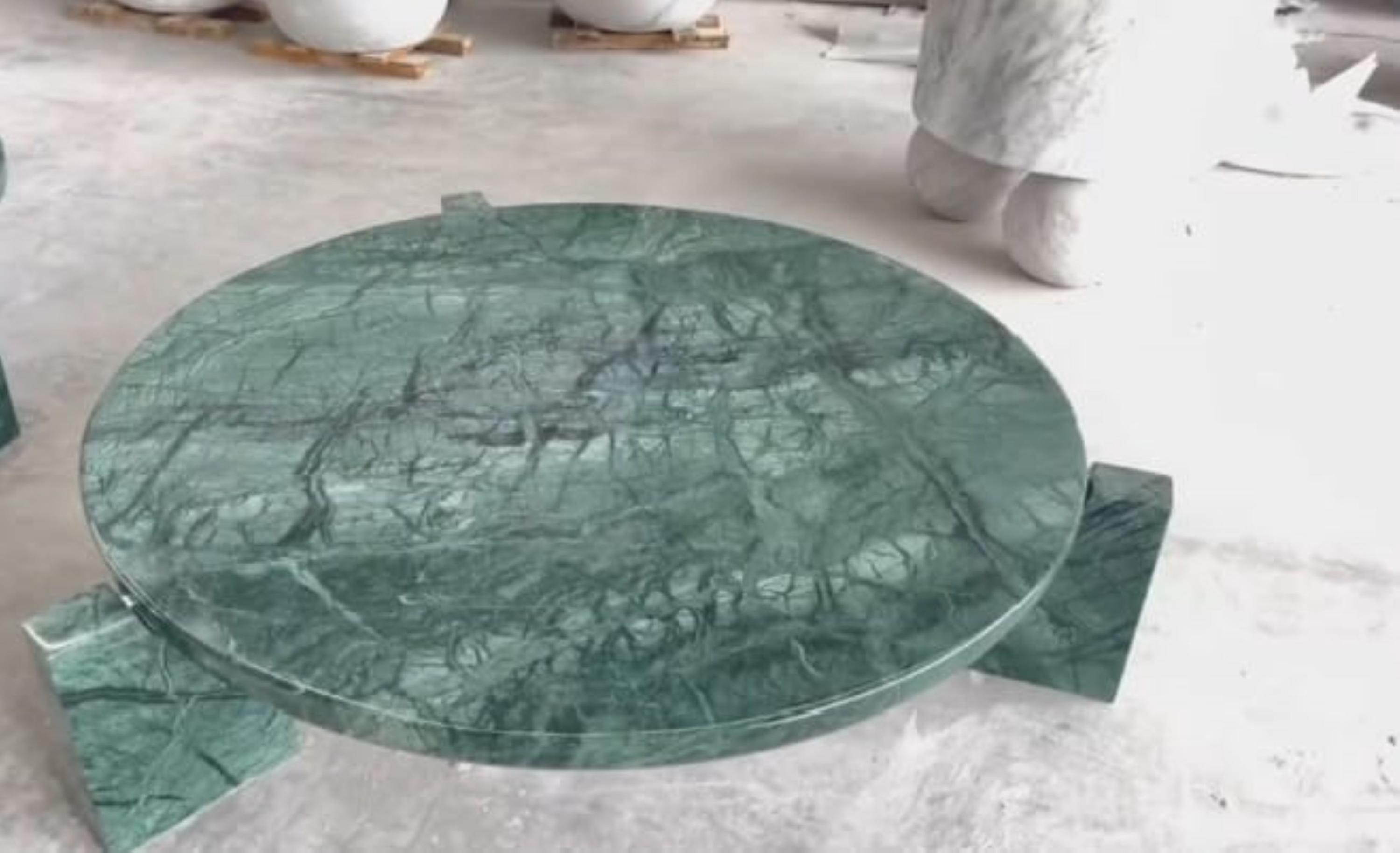 Handcrafted Green Marble Coffee Table | Round Stone Table with Sculptural Legs