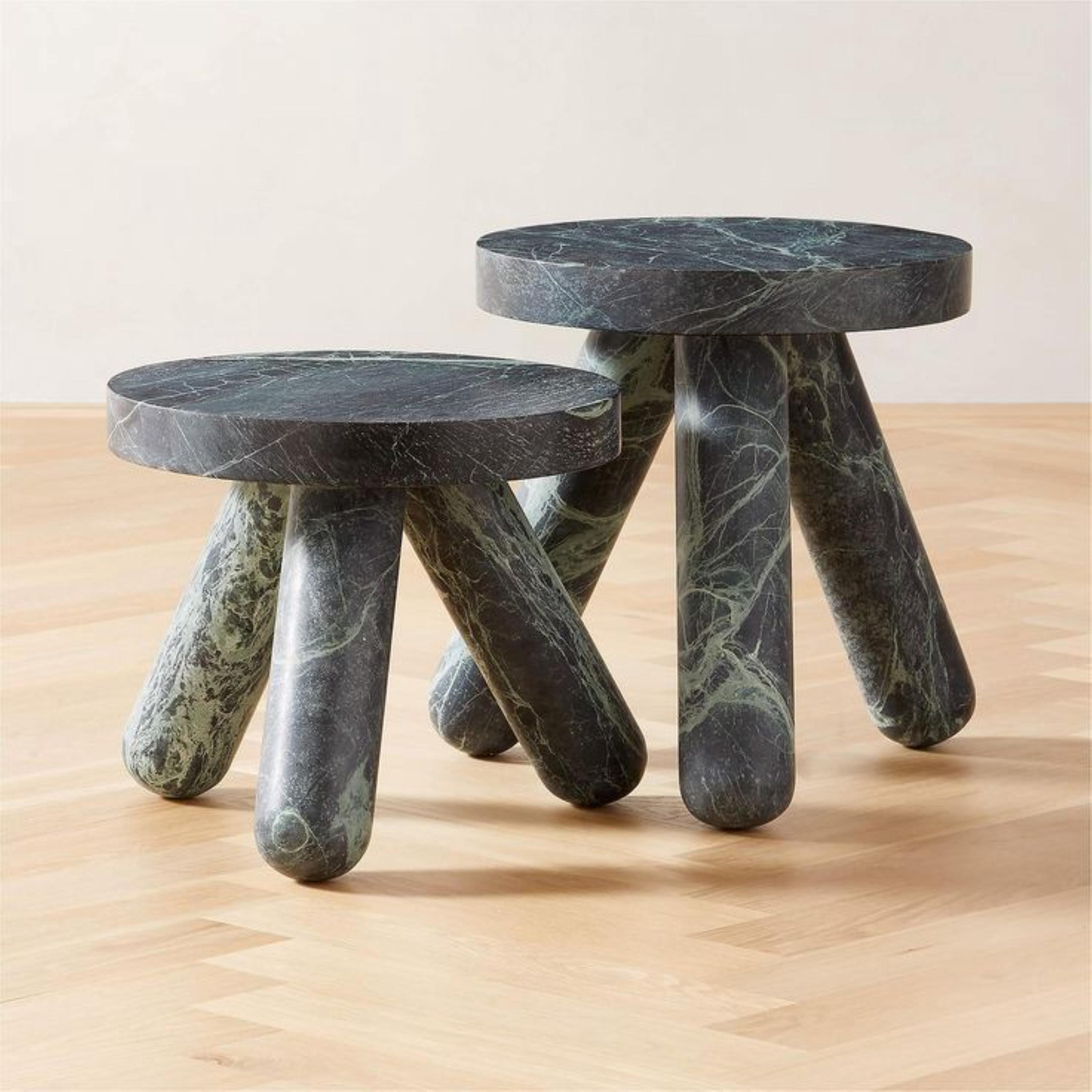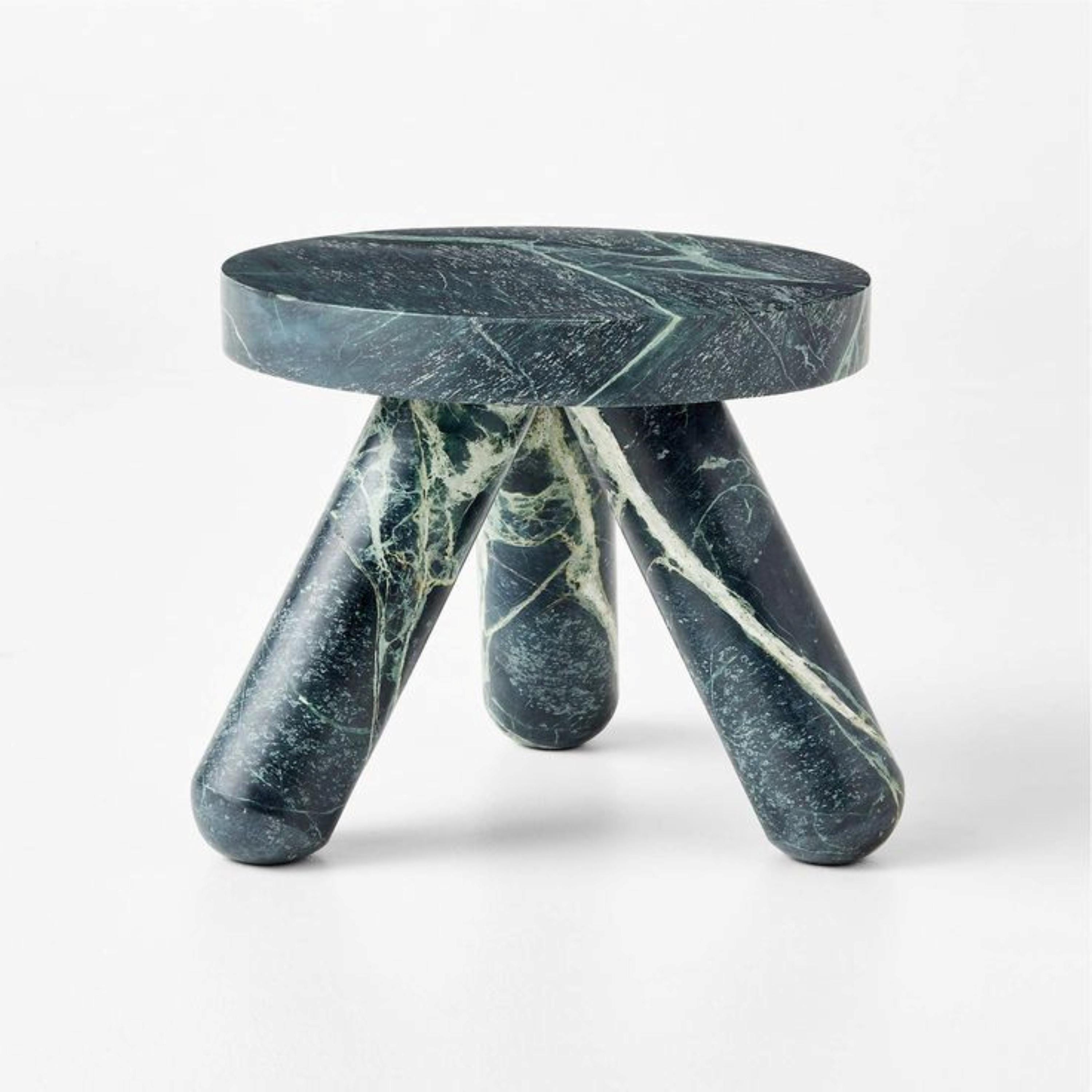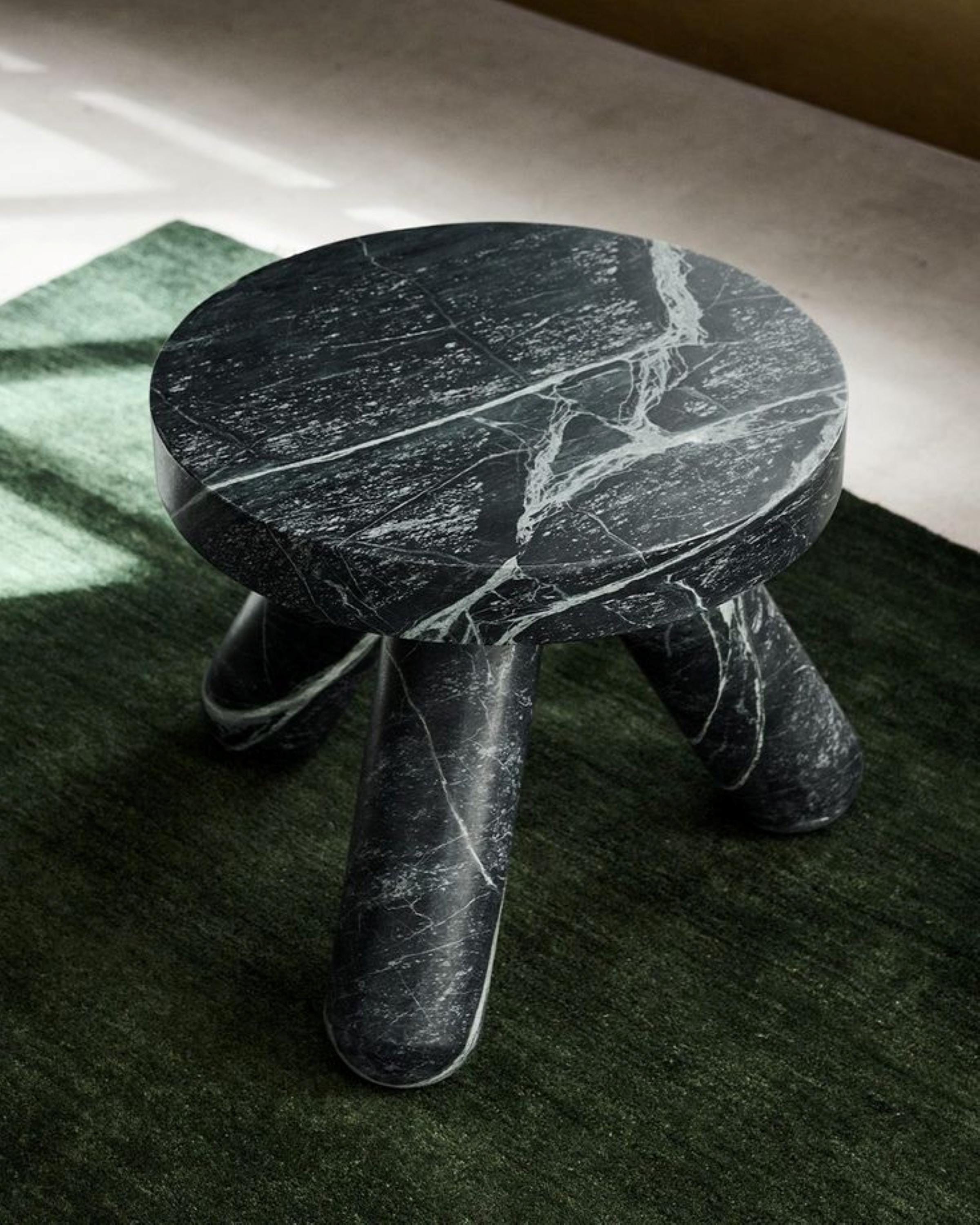 Green Marble Side Table | Sculptural Stone Stool | Modern Tripod Accent Table