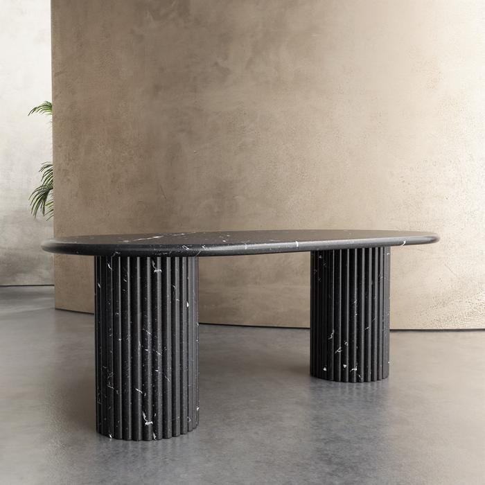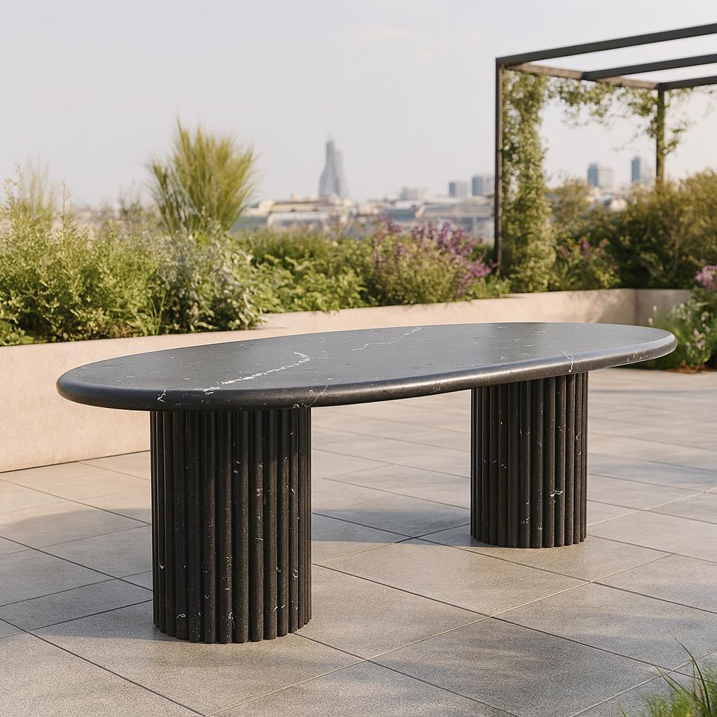 Handmade Travertine & Nero Marquina Marble Dining Table - Luxury Statement Piece
