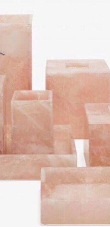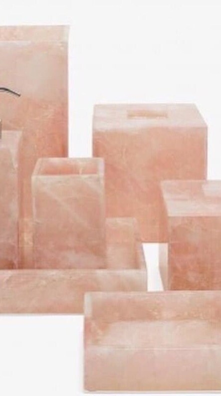 Bring calming energy and timeless elegance to your bathroom with this handcrafted Rose Quartz bathroom accessory set. Made from solid natural rose quartz, this luxurious set features soft blush-pink tones and delicate natural variations, creating a serene, spa-like atmosphere in any bathroom or vanity space.