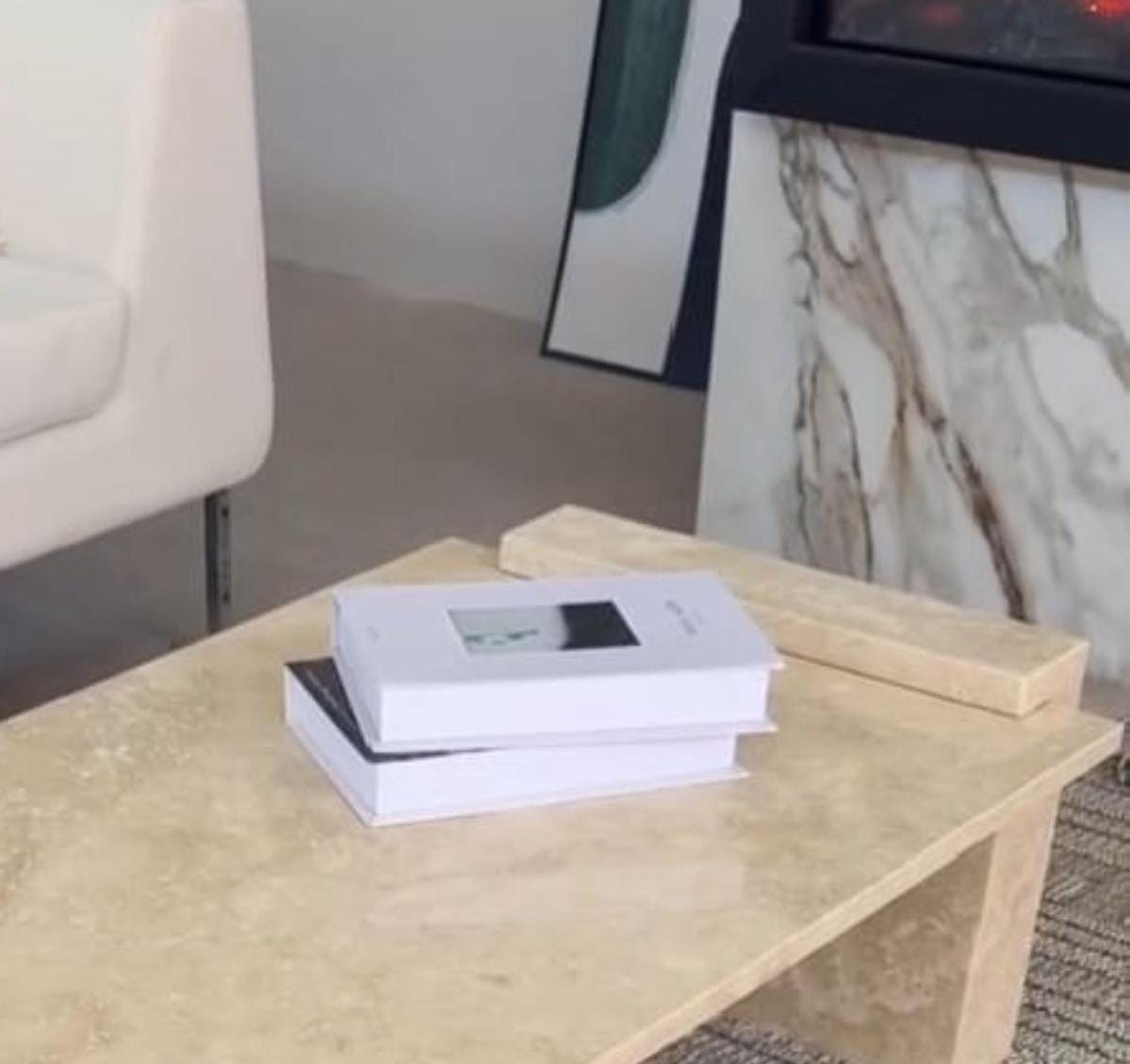 Oval Travertine Top – Spacious surface for books, décor, and gatherings.