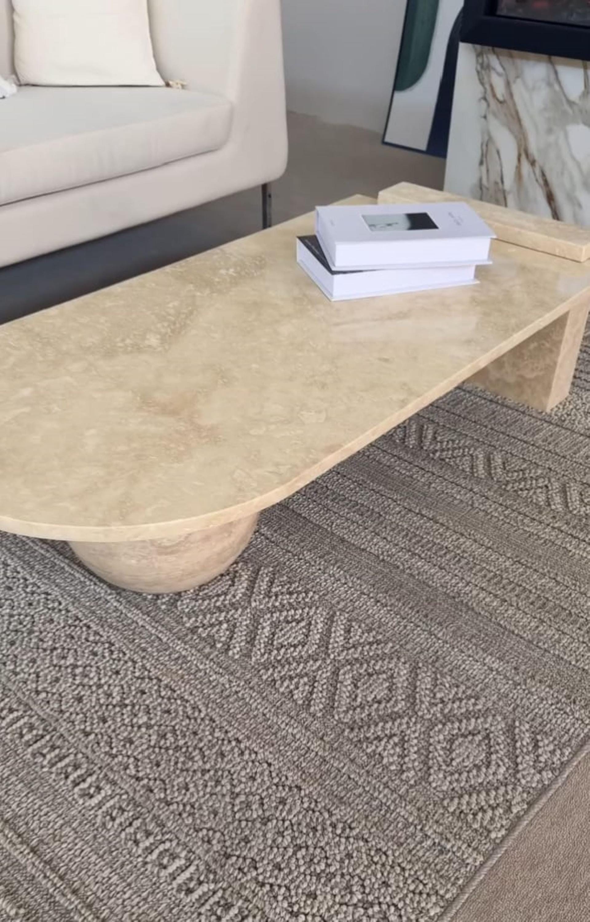 The natural variations in the travertine create unique patterns and subtle texture, ensuring that each table is truly one of a kind. Its low-profile design makes it perfect for modern, contemporary, wabi-sabi, or Mediterranean-inspired interiors.
