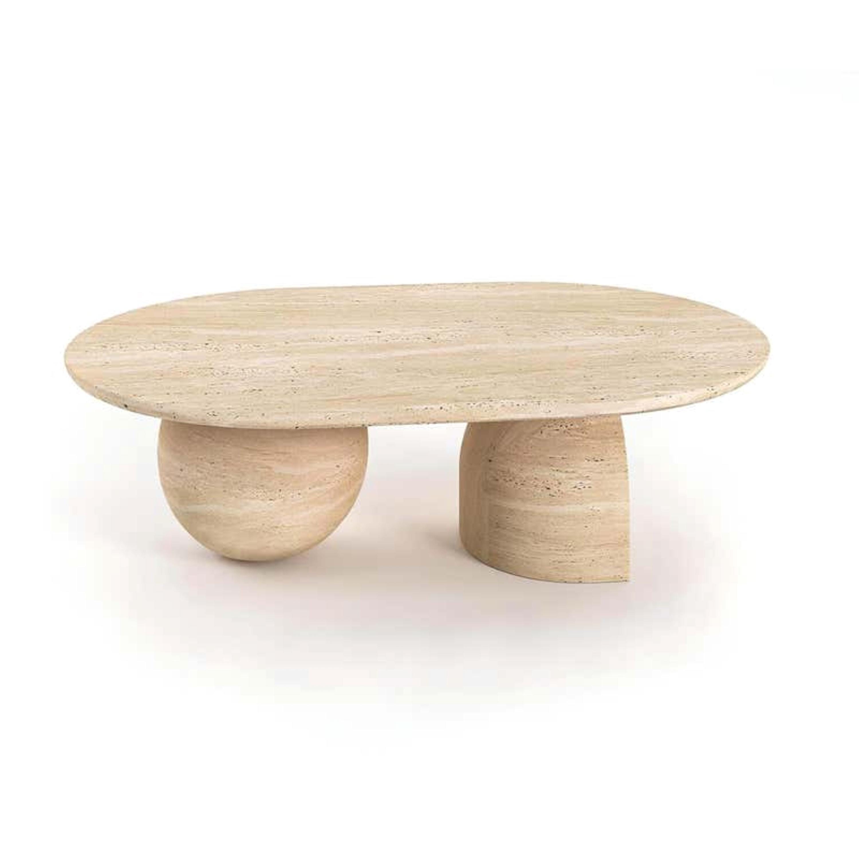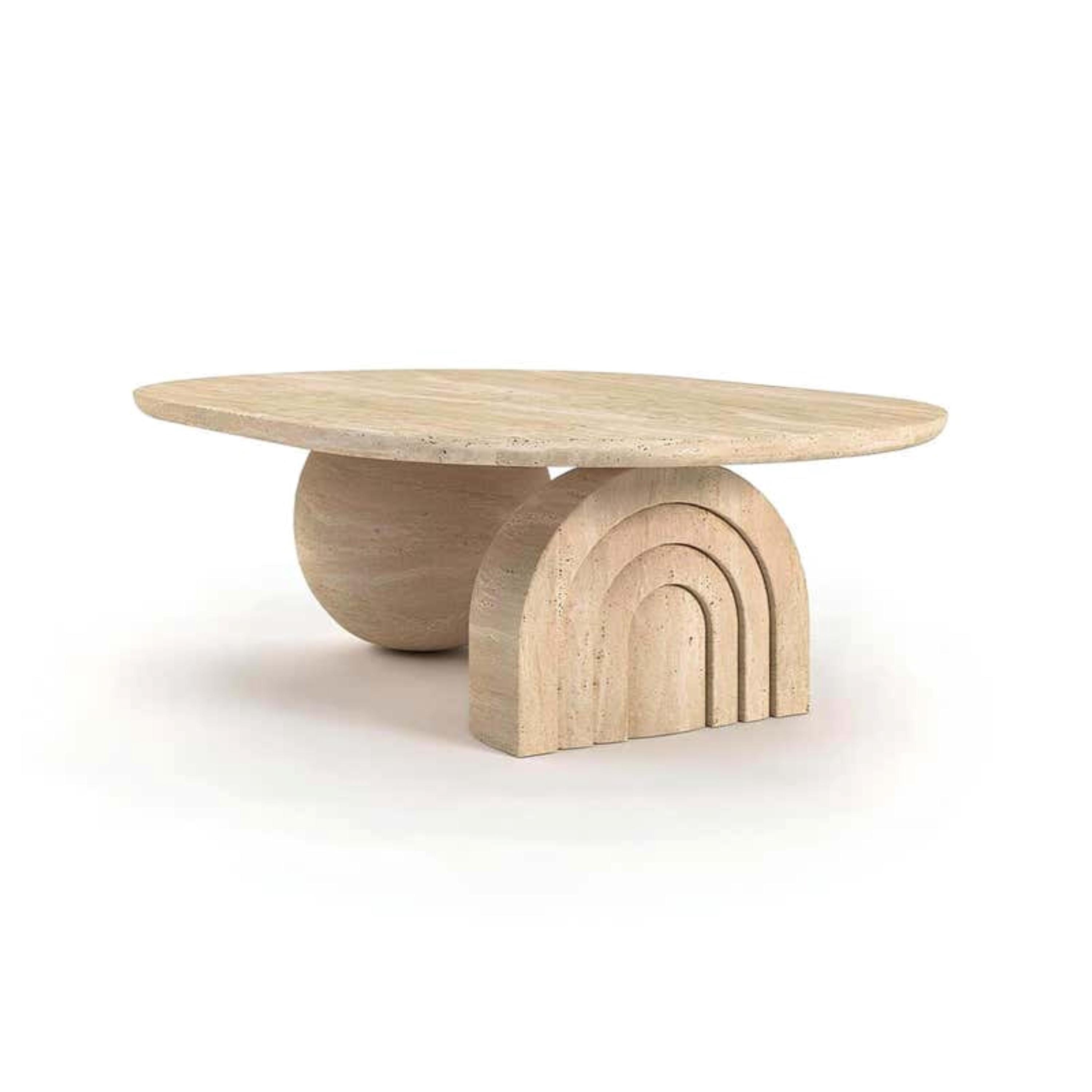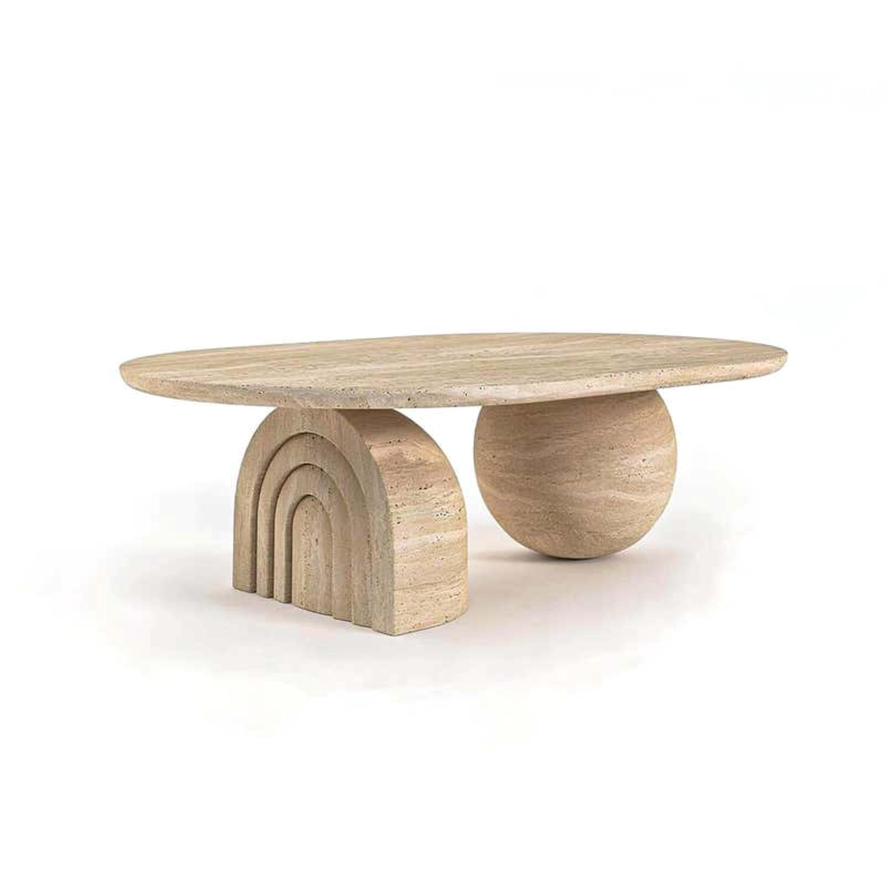 Handmade Travertine Coffee Table – Sculptural Modern Oval Table with Arch Base