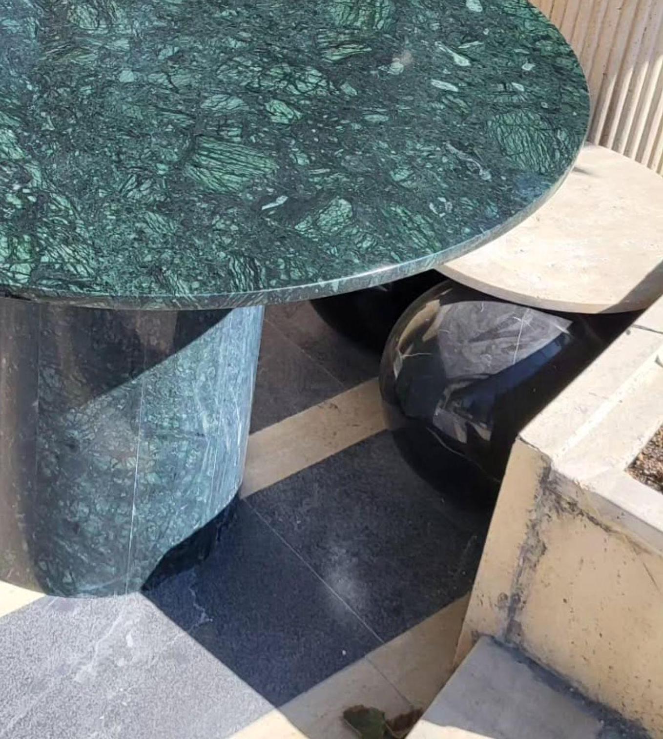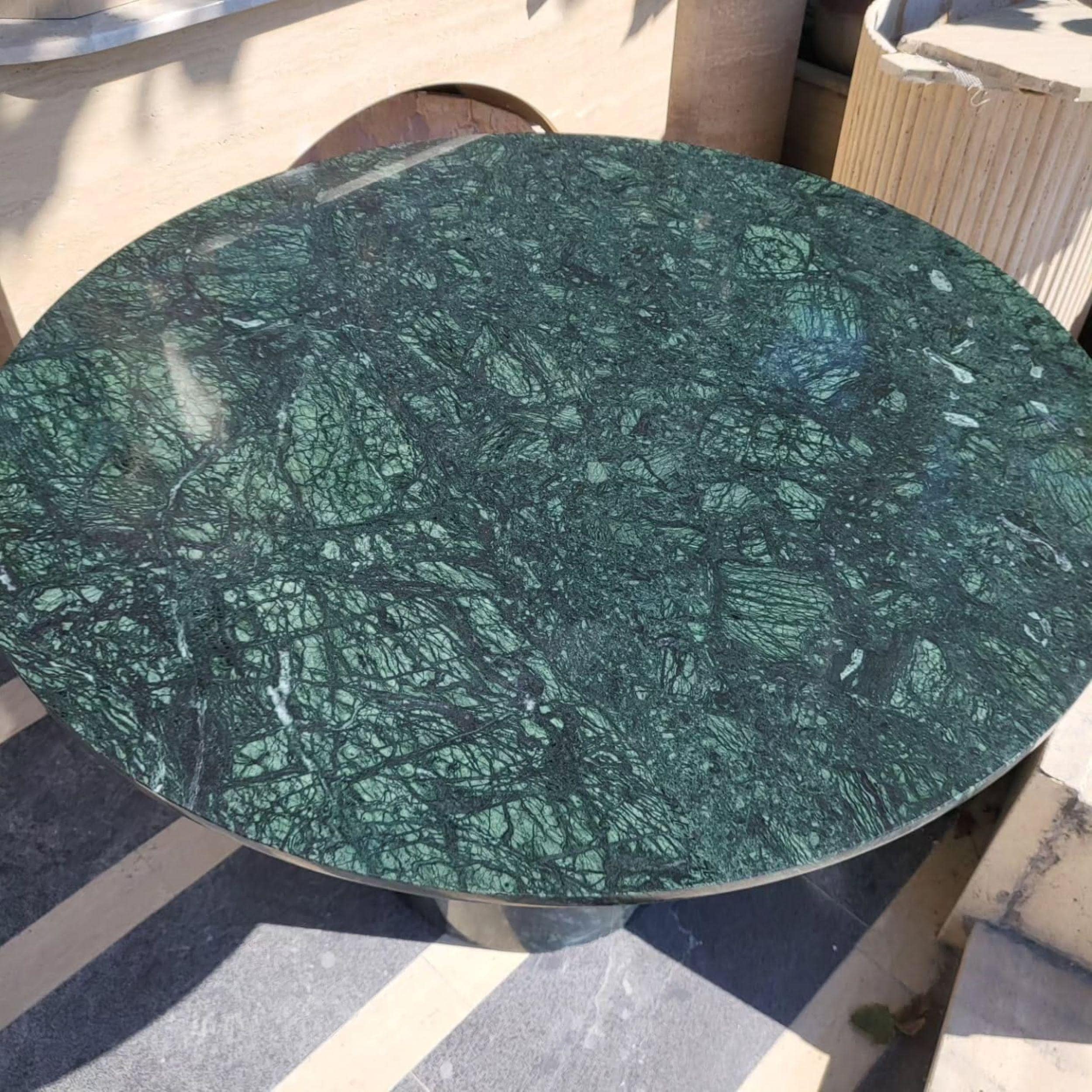 Green Marble Bistro Table – Solid Stone Pedestal Table, Vintage Italian Style