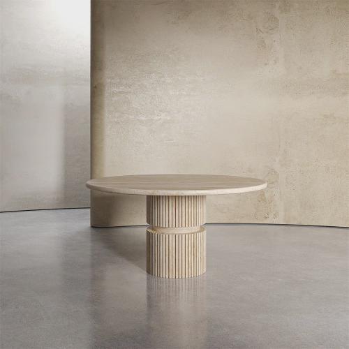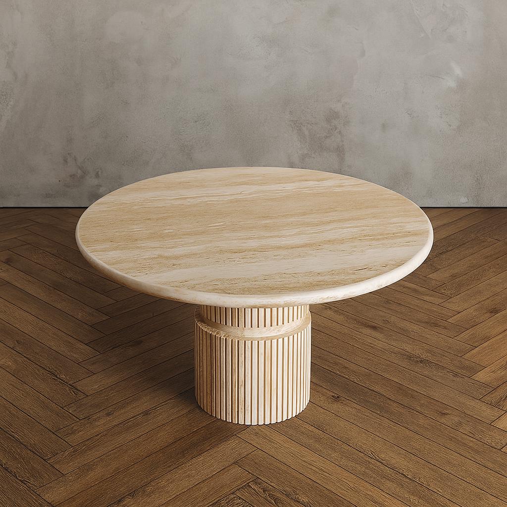 Handmade Marble Round Dining Table: Fluted Pedestal Base, Travertine or Black/White Marble