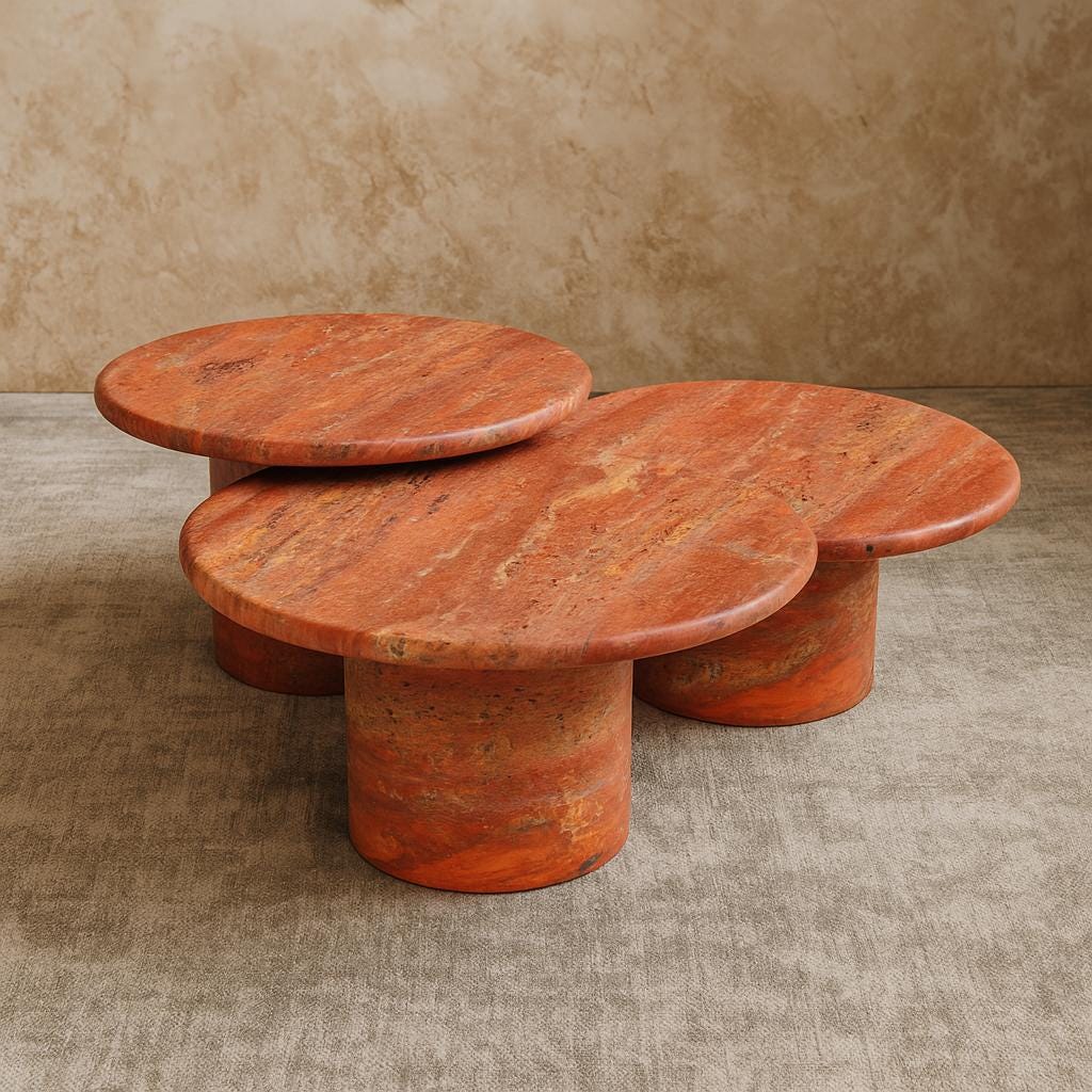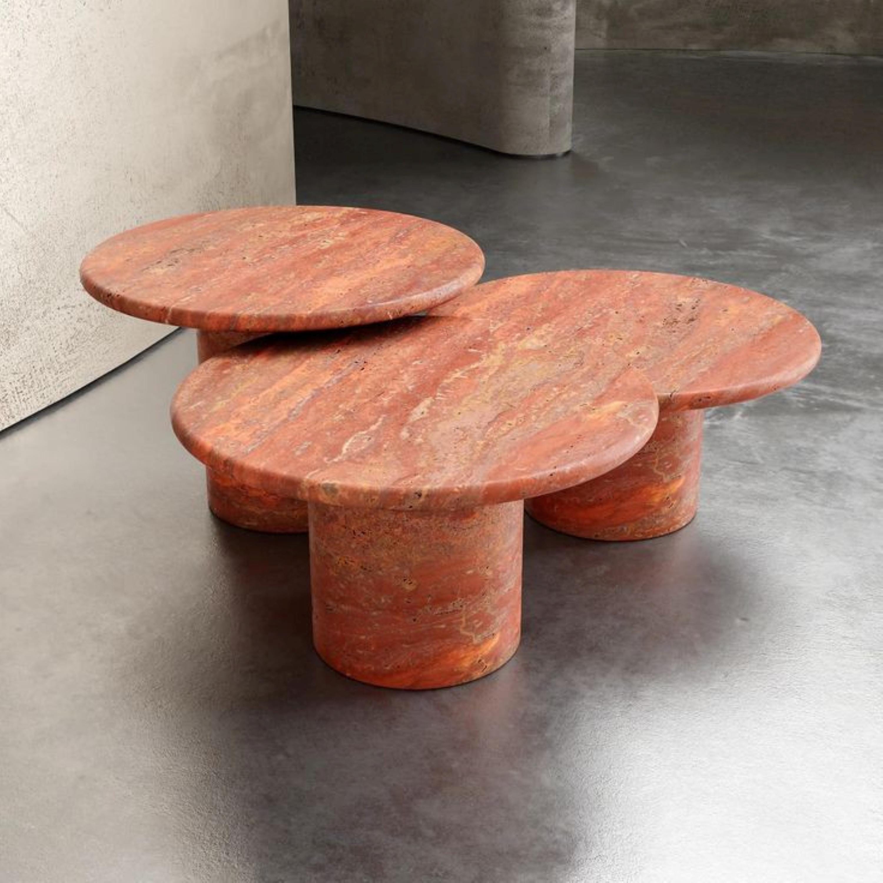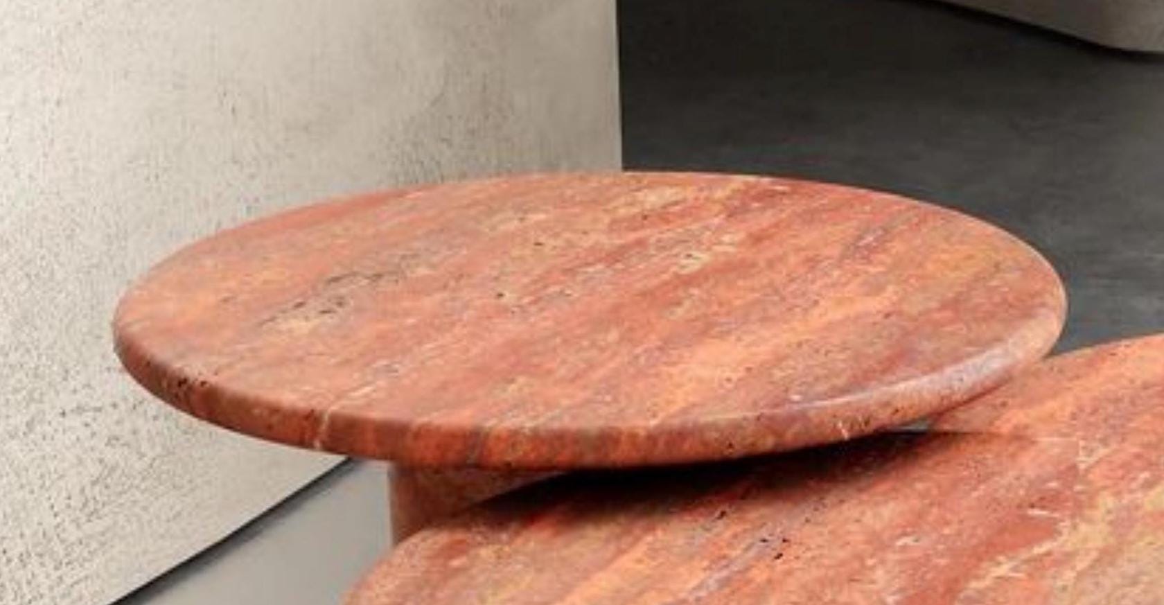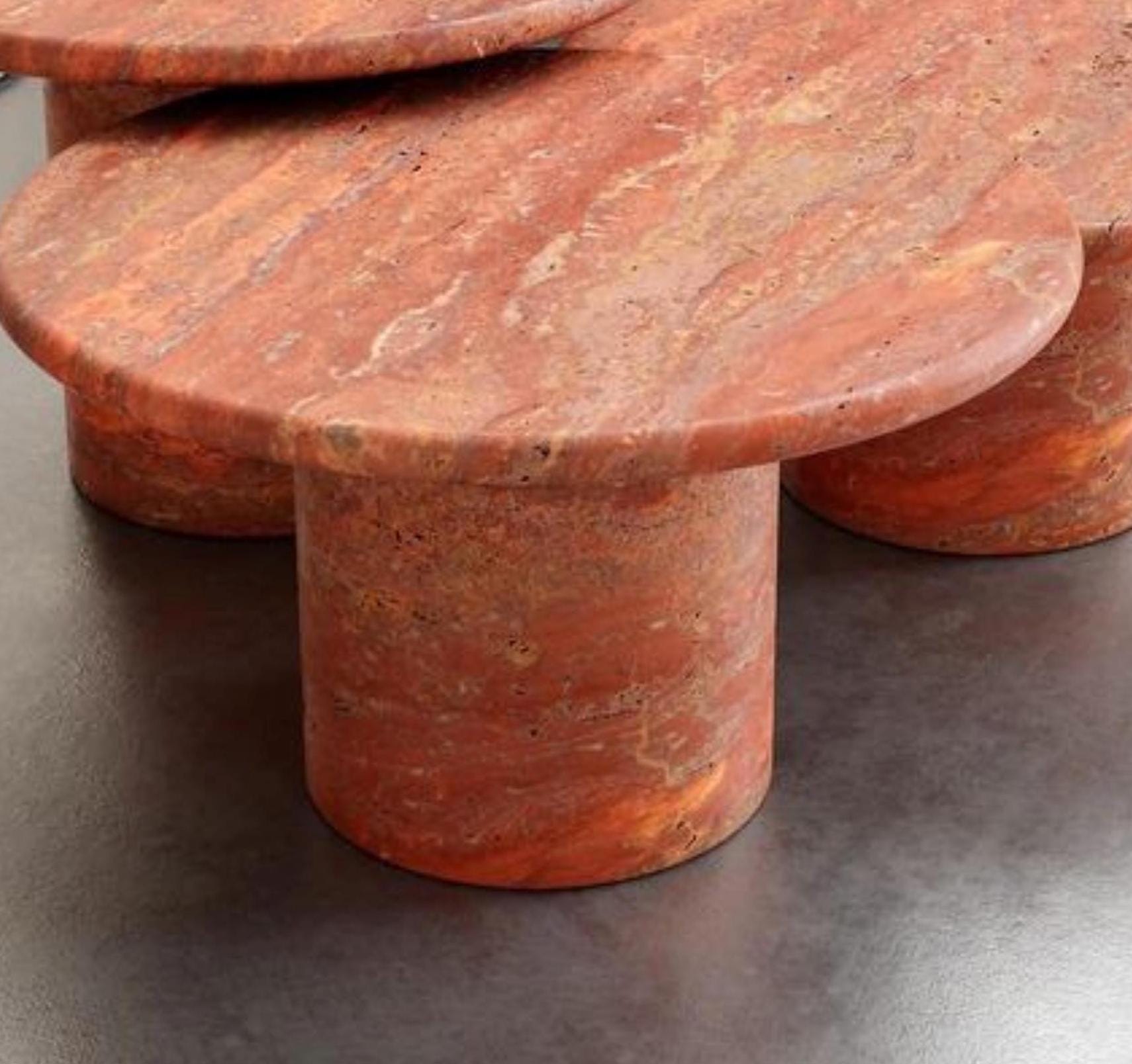 Modern Red Travertine Coffee Table Set – Handcrafted Round Stone Nesting Tables