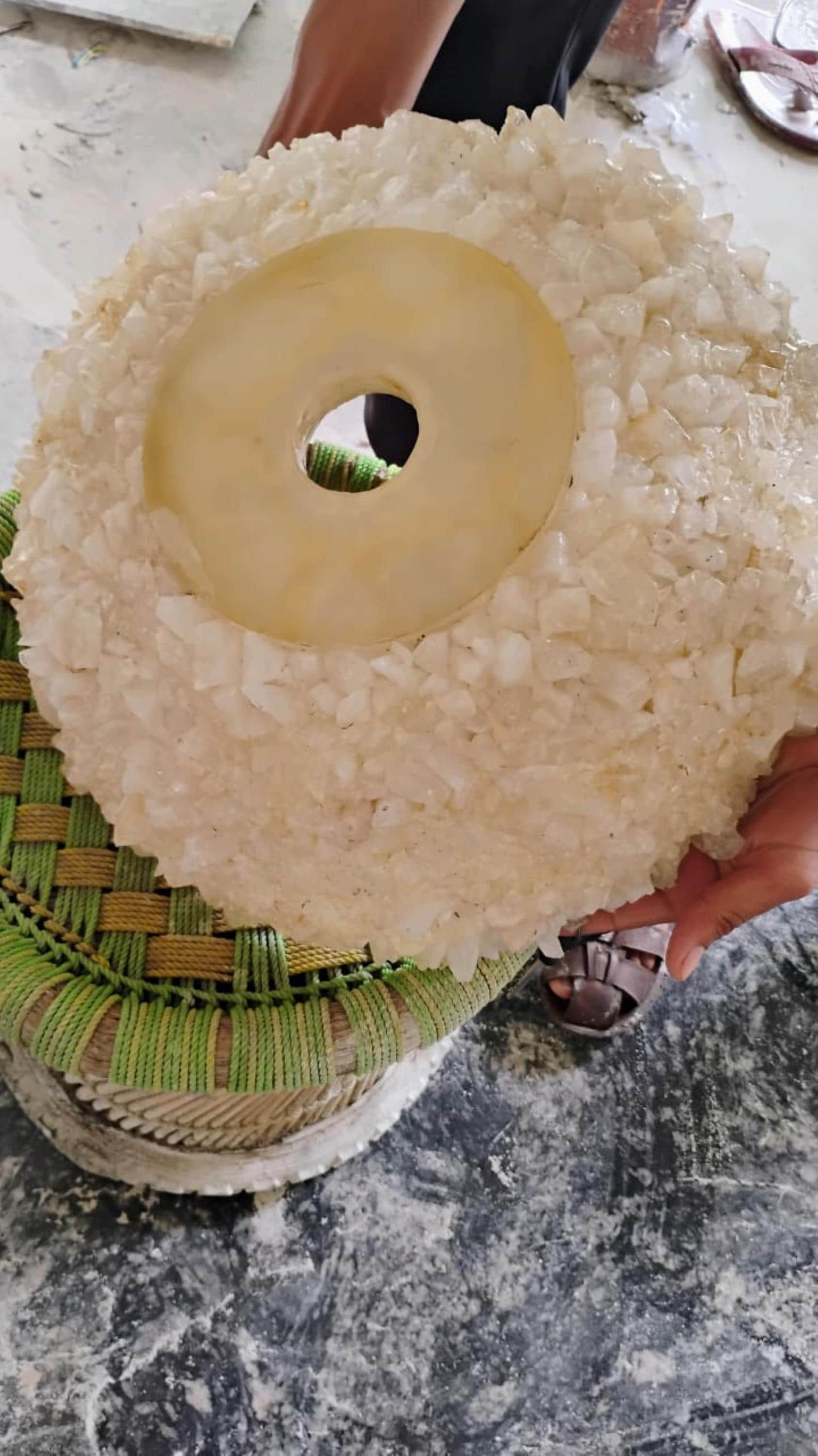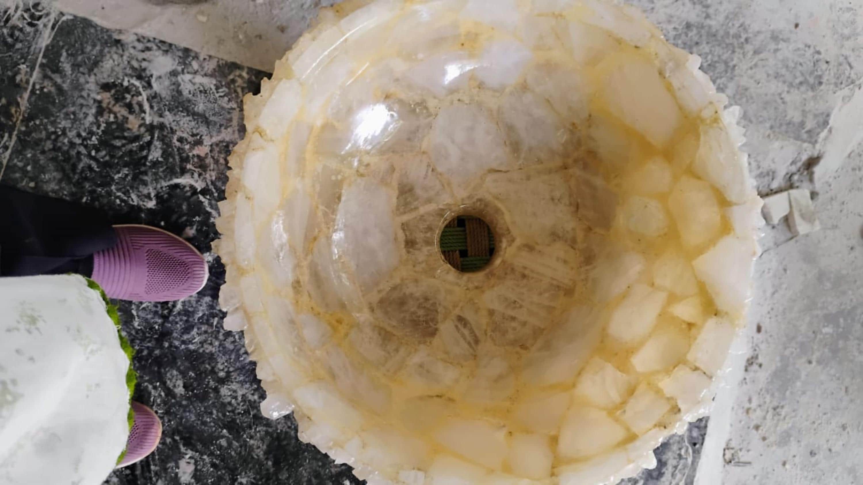Elevate your interiors with this stunning handcrafted white quartz rock stone sink, a perfect blend of raw elegance and functional artistry. Featuring naturally translucent quartz with soft golden accents, this basin adds a touch of luxury to kitchens, bathrooms, or vanity spaces.