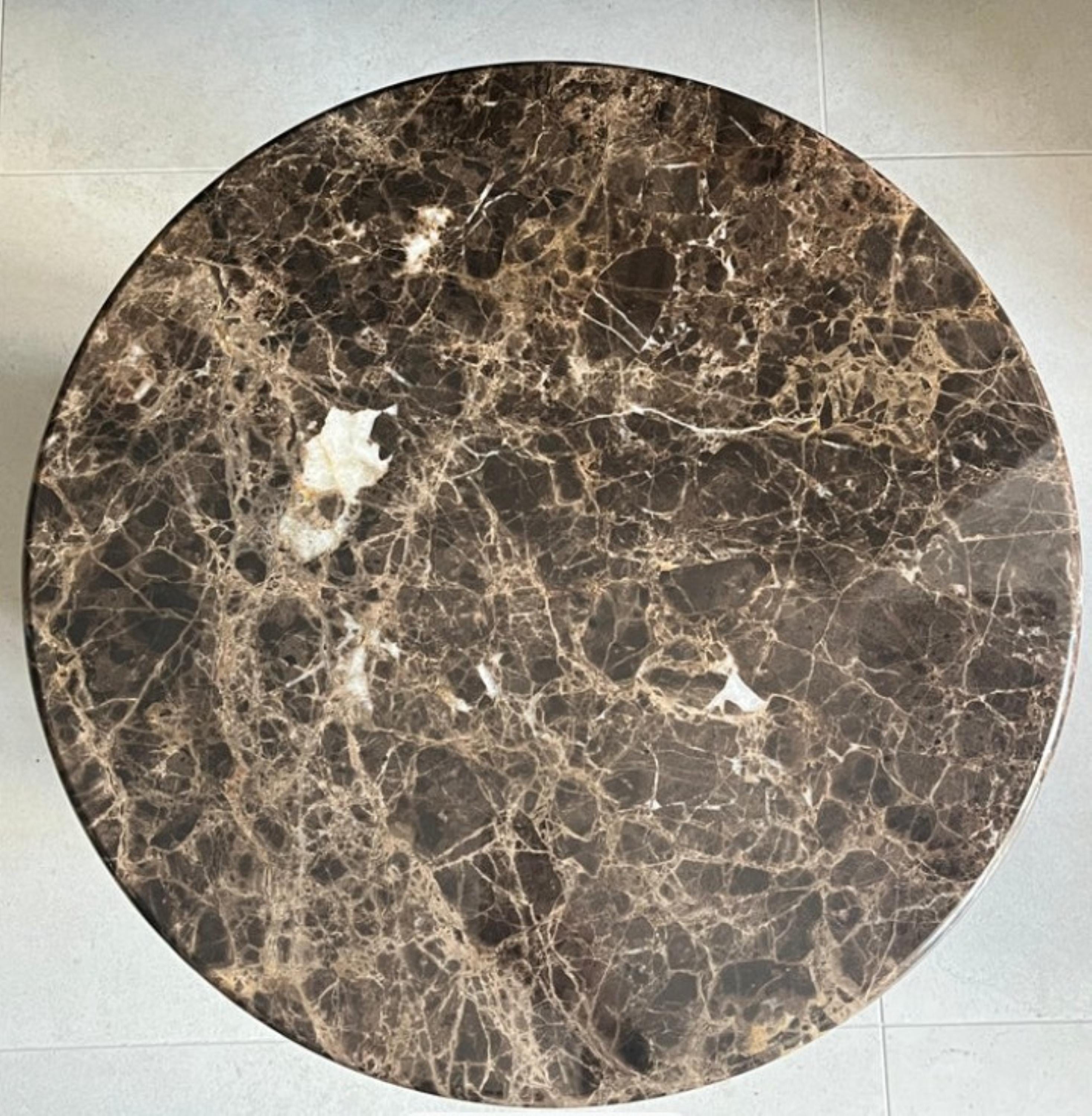 Introducing the Oxley-inspired round brown marble tabletop, a stunning piece that adds depth, luxury, and refinement to any setting. Featuring a rich brown base with natural white and cream veining, this marble top is a timeless example of earthy elegance and artisanal craftsmanship.