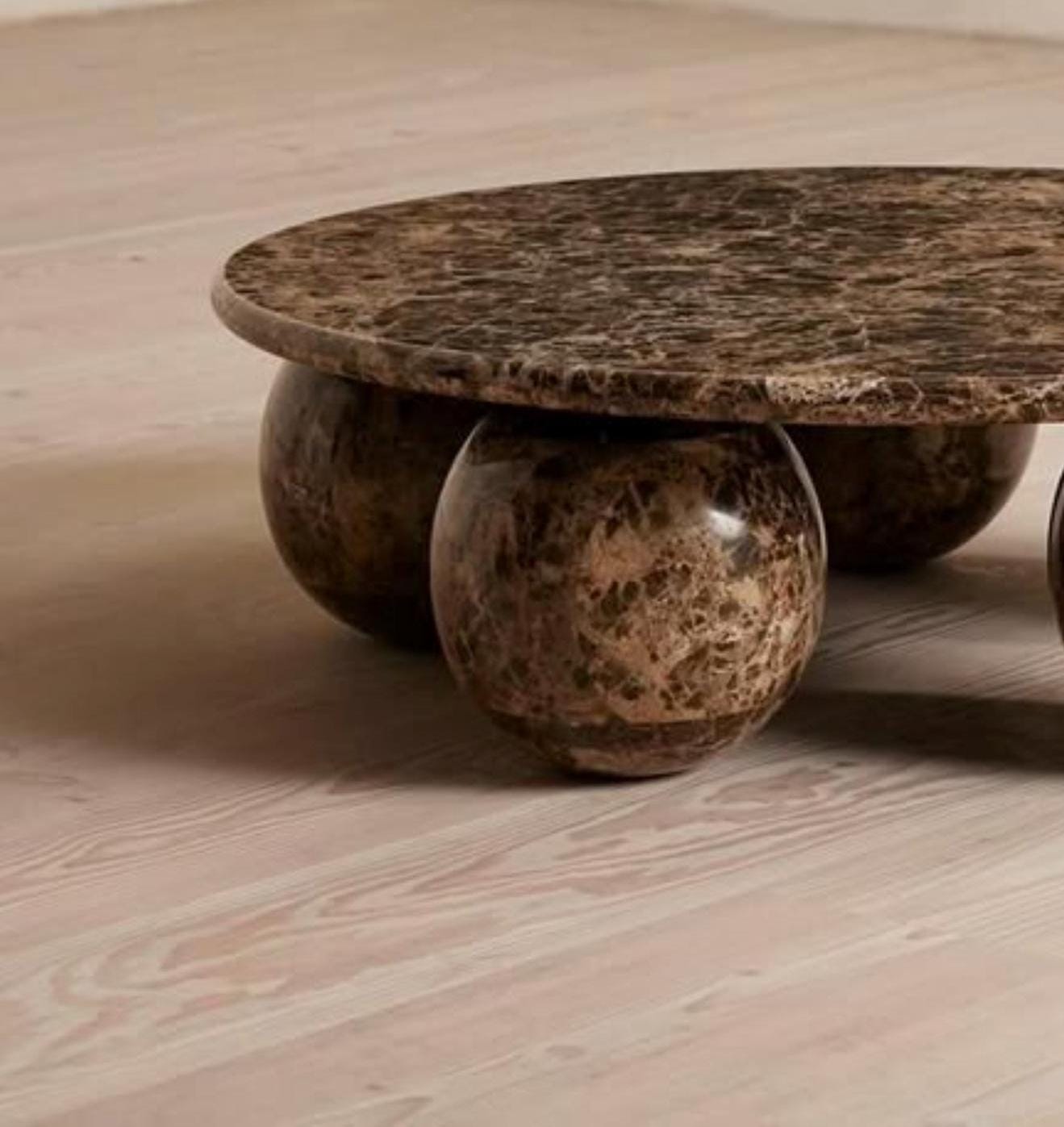 Oxley Round Brown Marble Coffee Table Top – Handmade Luxury Accent Piece
