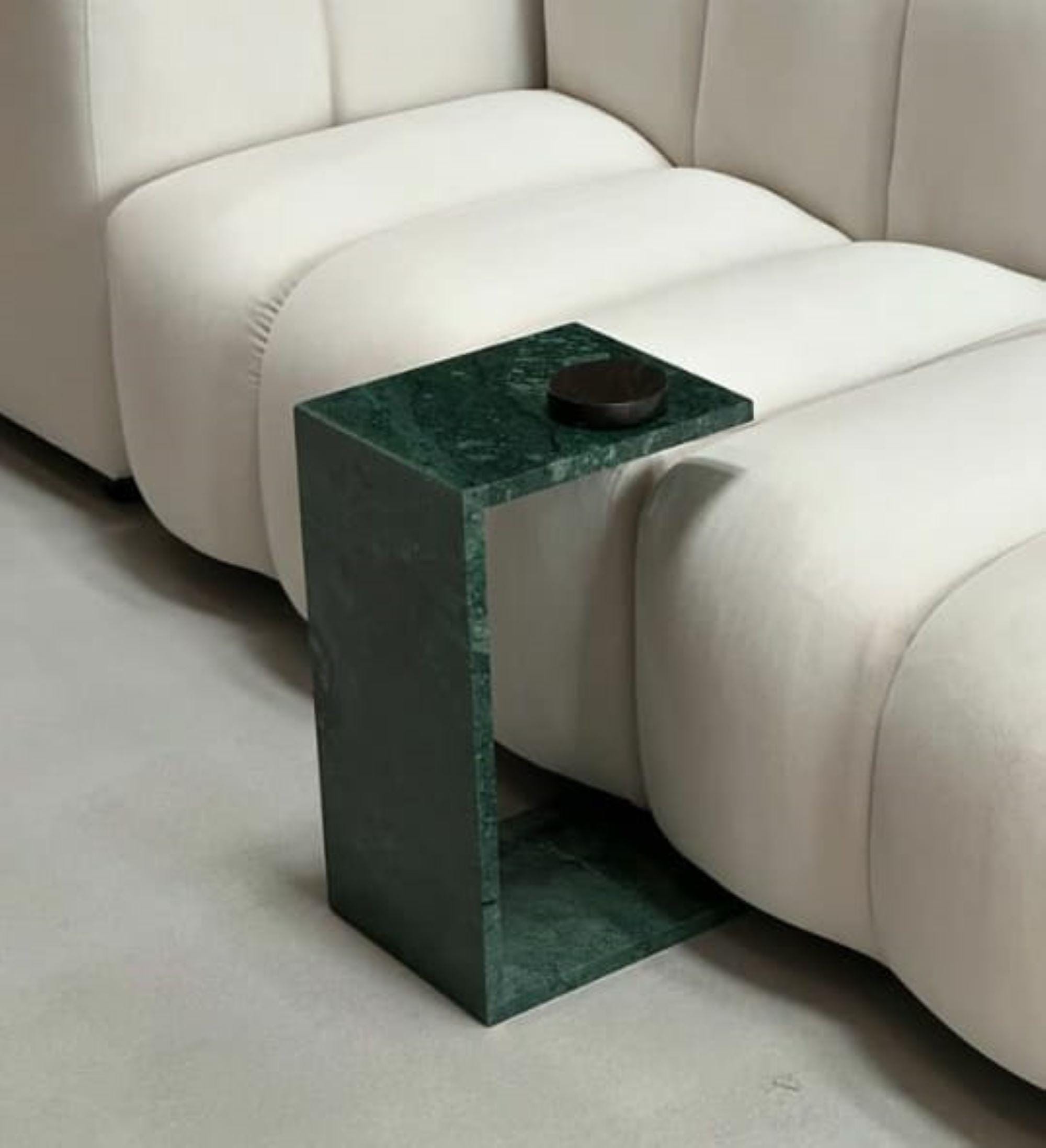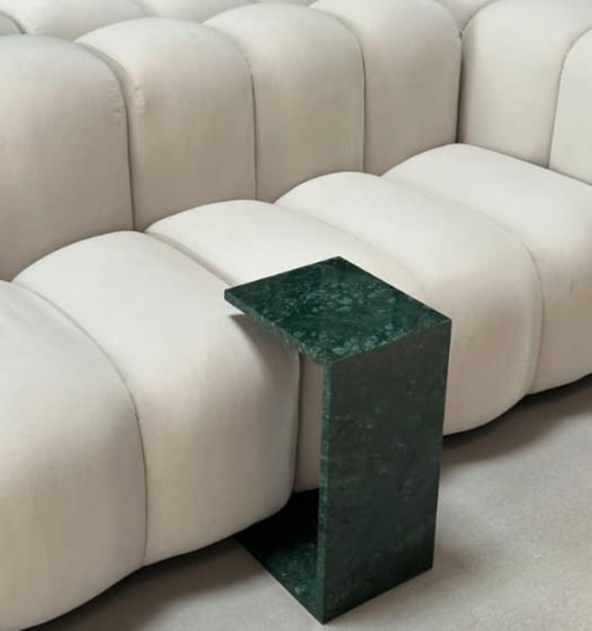 This elegant green marble side table offers a bold yet refined aesthetic to any modern living space. Featuring a sleek C-shape design and a rich, natural stone finish, this piece effortlessly blends functionality with sculptural elegance. Whether placed beside a sofa, bed, or lounge chair, it brings both style and substance to your interior.