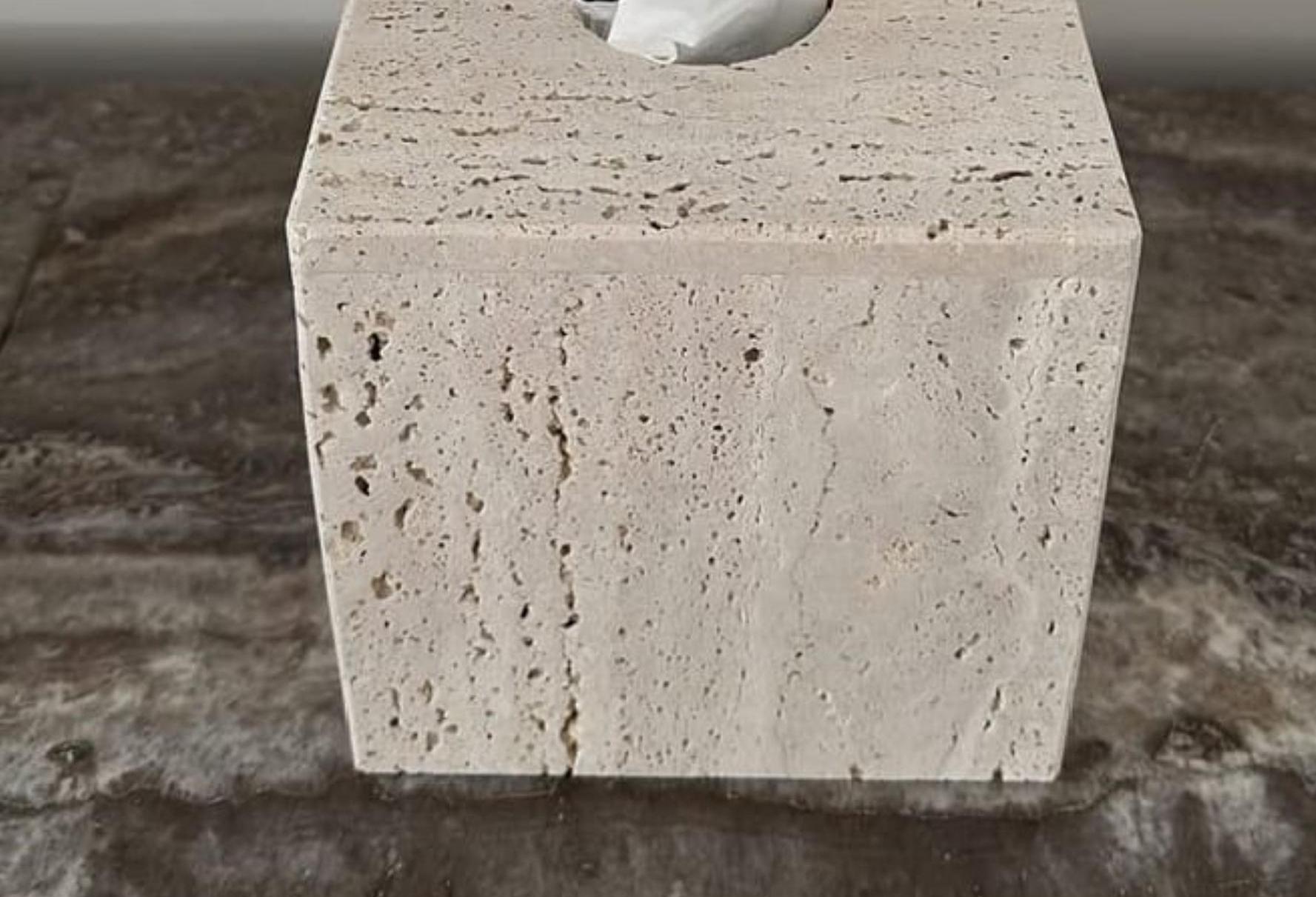 Handmade Travertine Marble Tissue Box Cover – Luxury Stone Bathroom Decor
