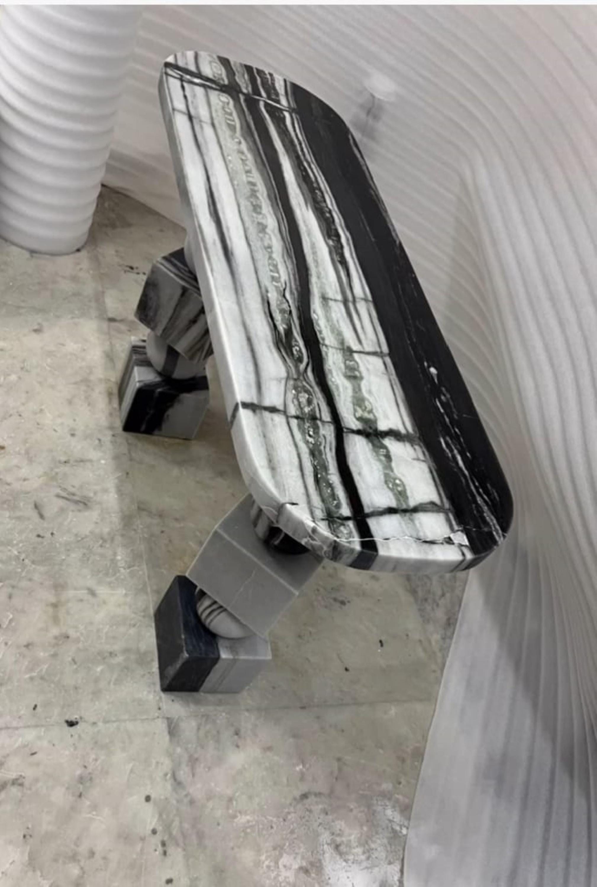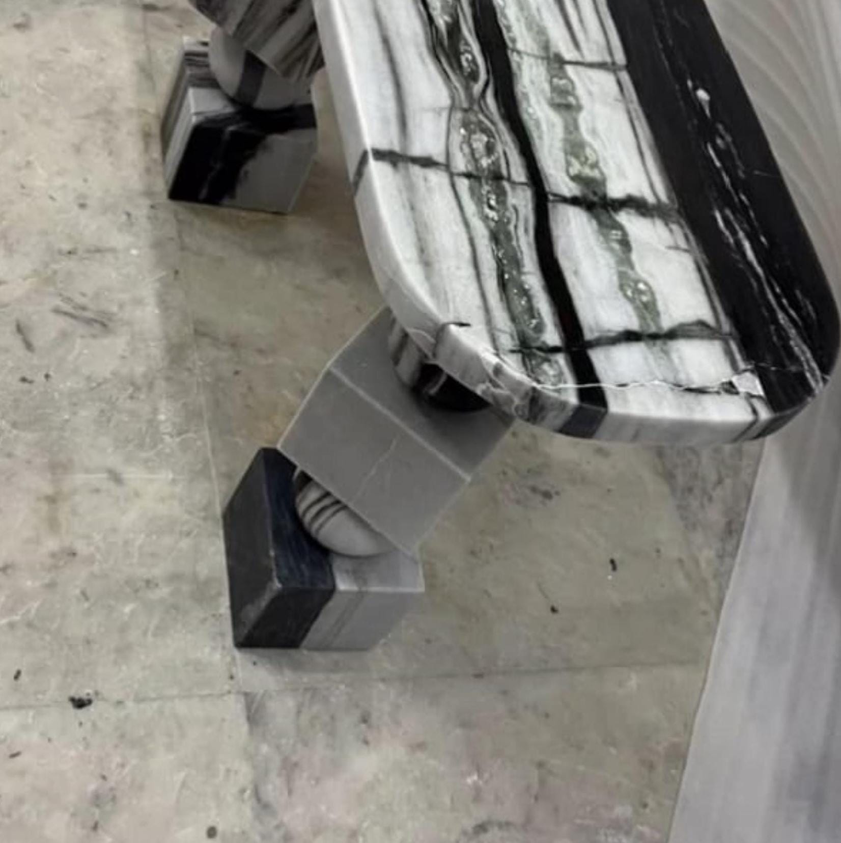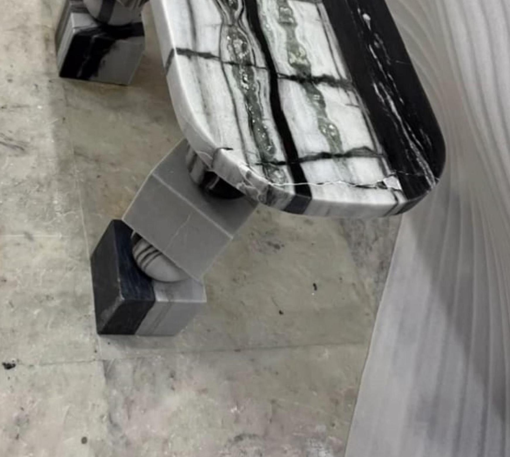 🏛 Handmade Black & Grey Marble Console Table – Luxury Contemporary Stone Design