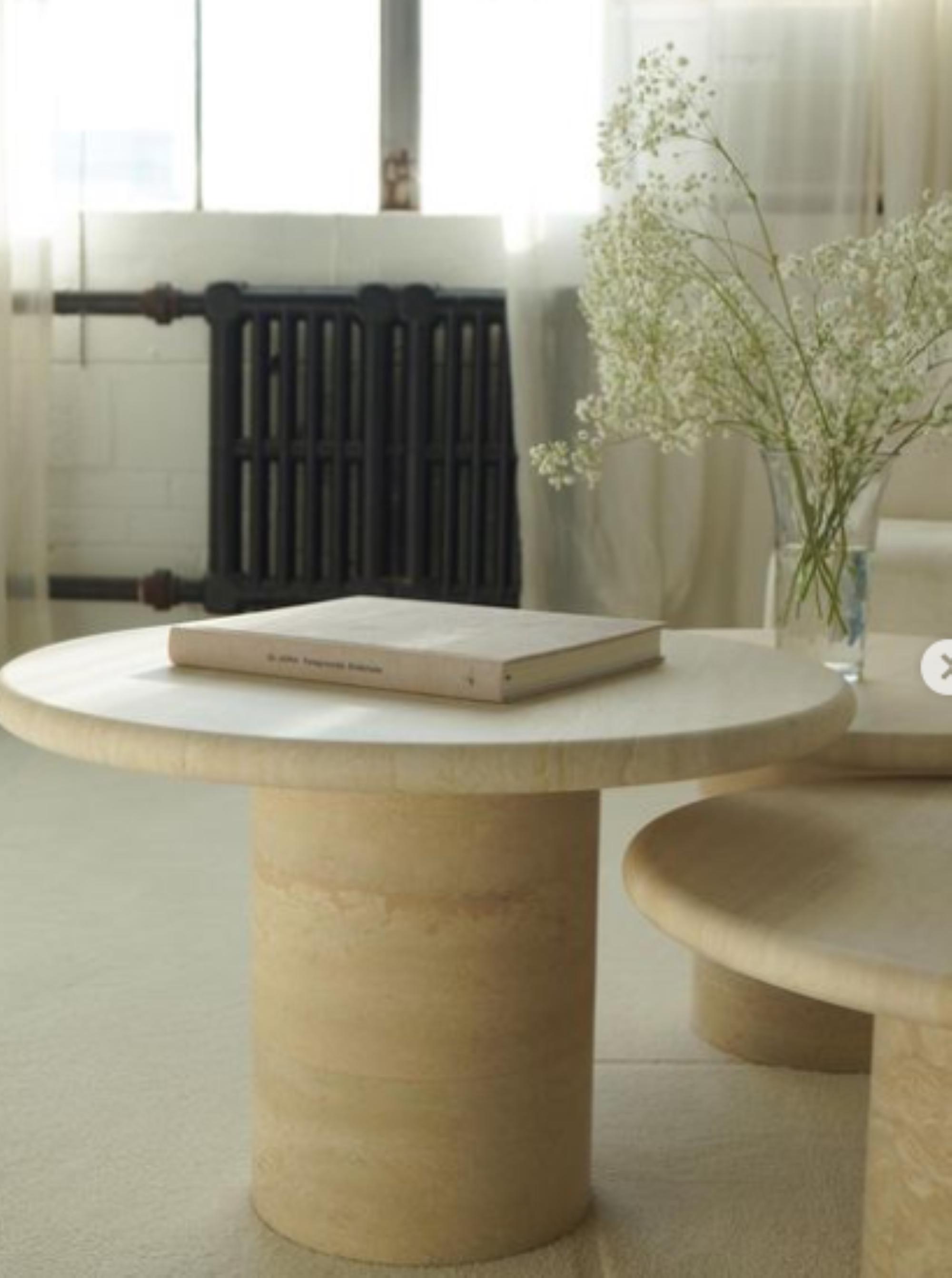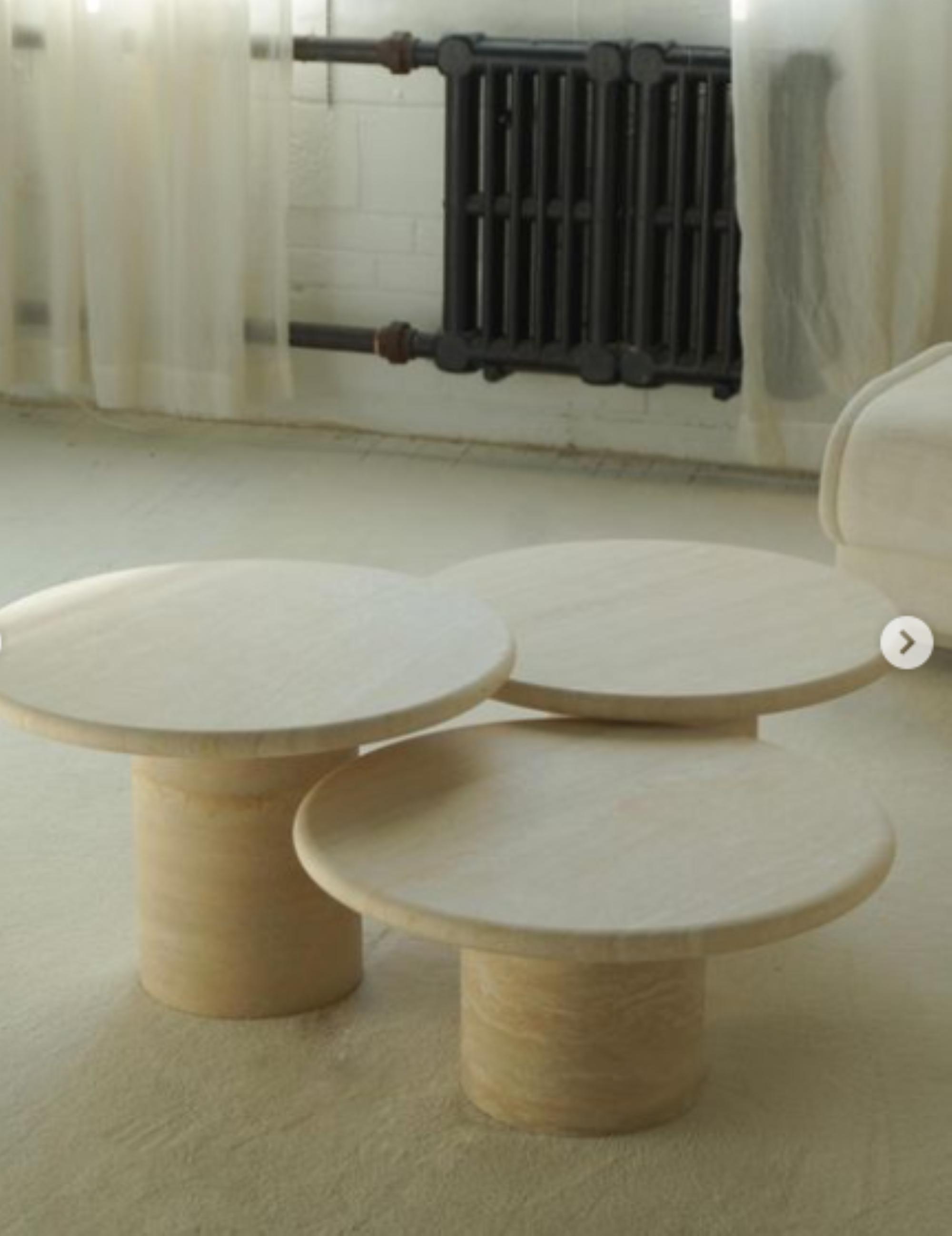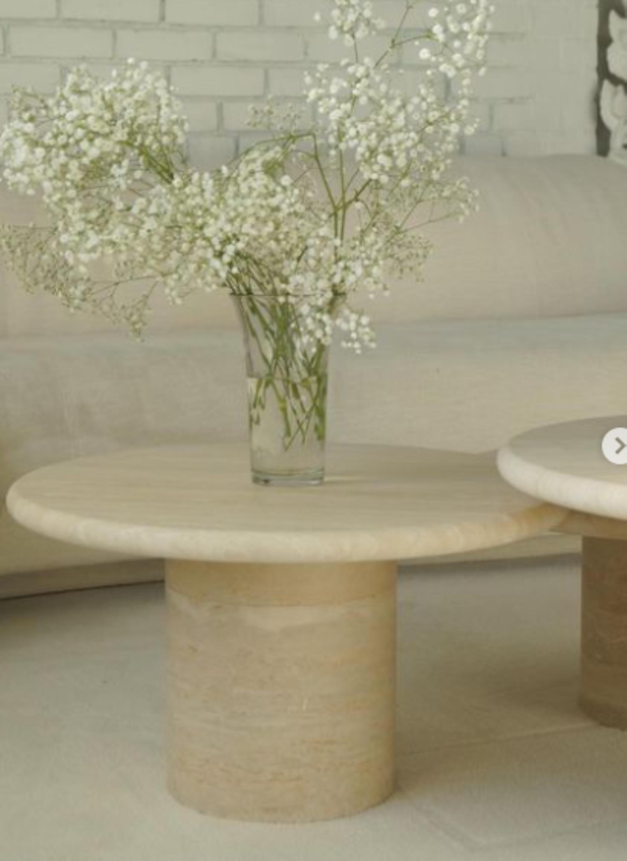 Nesting Travertine Coffee Table Set: Round Vintage Style, Beige Stone Finish