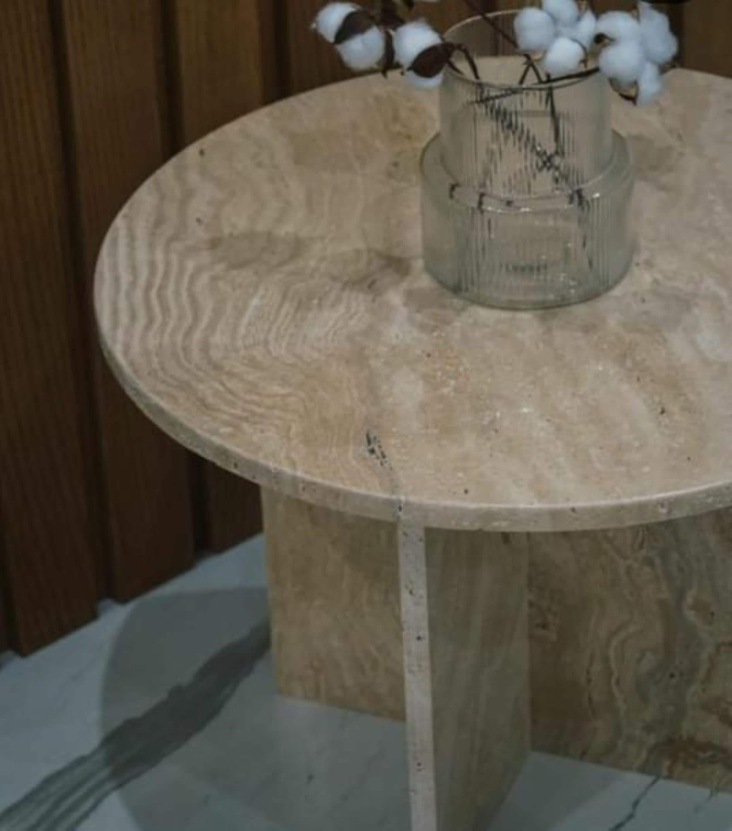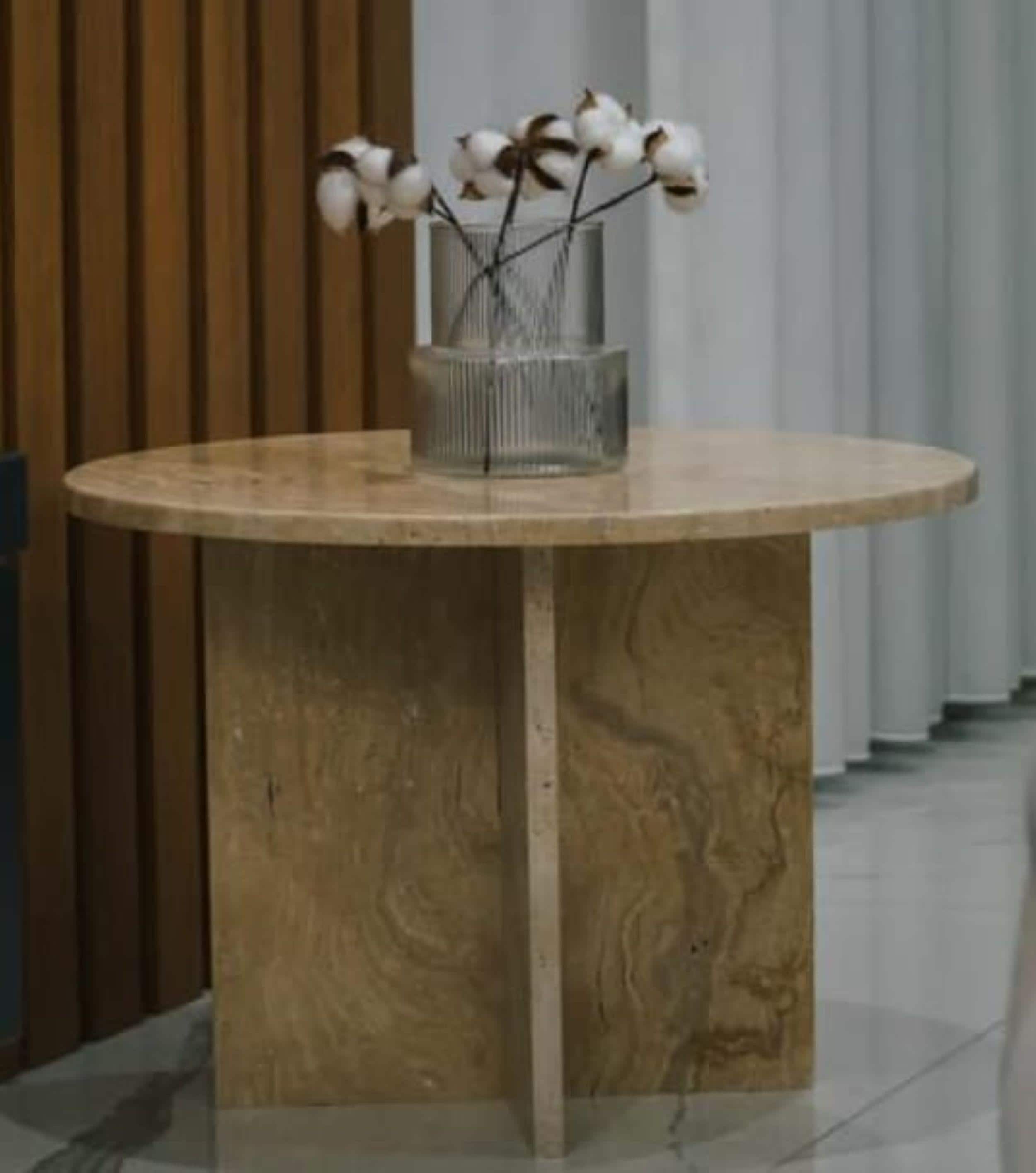 Travertine Marble Side Table – Modern Living Room Furniture