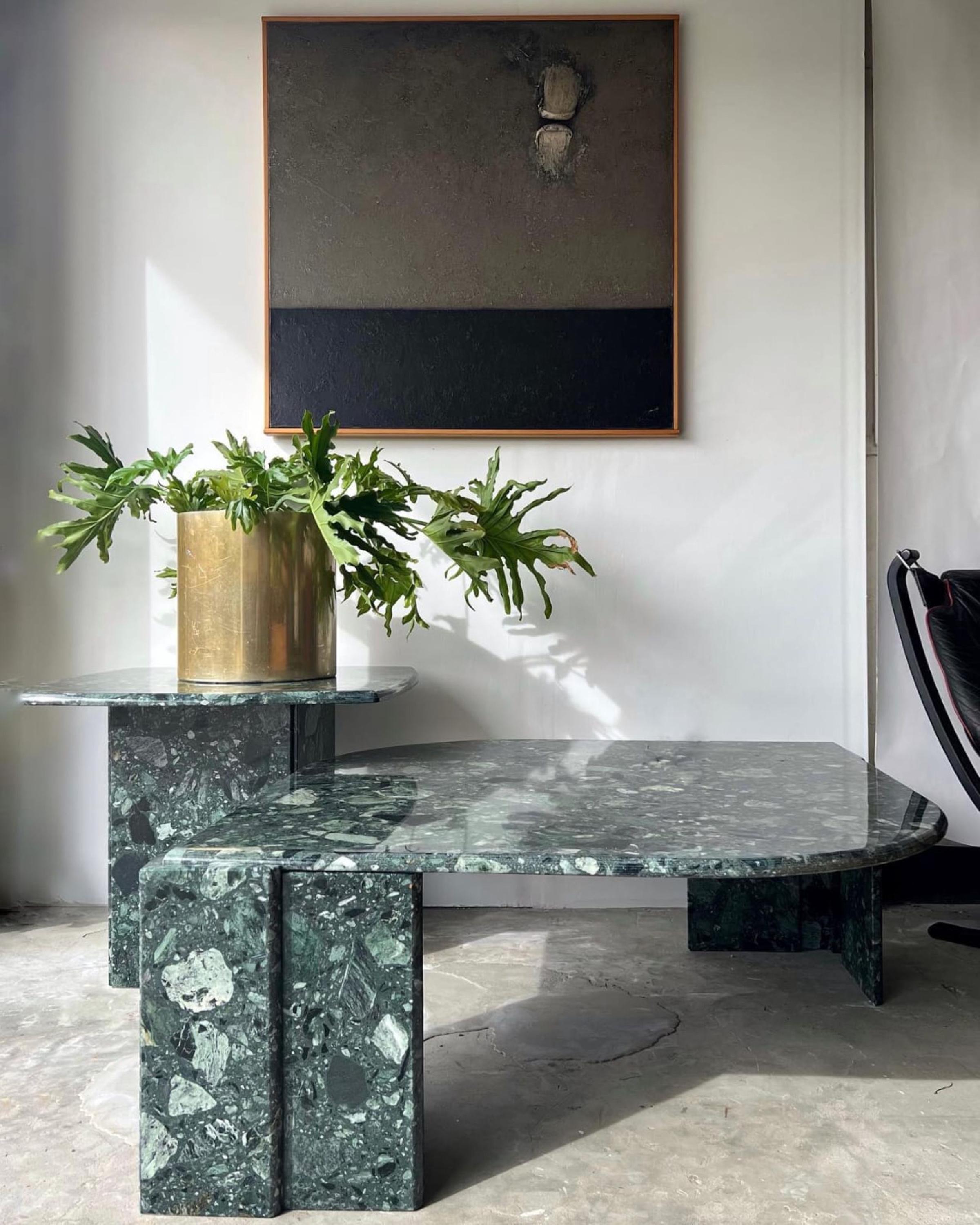 This green marble masterpiece adapts effortlessly to luxury interiors: