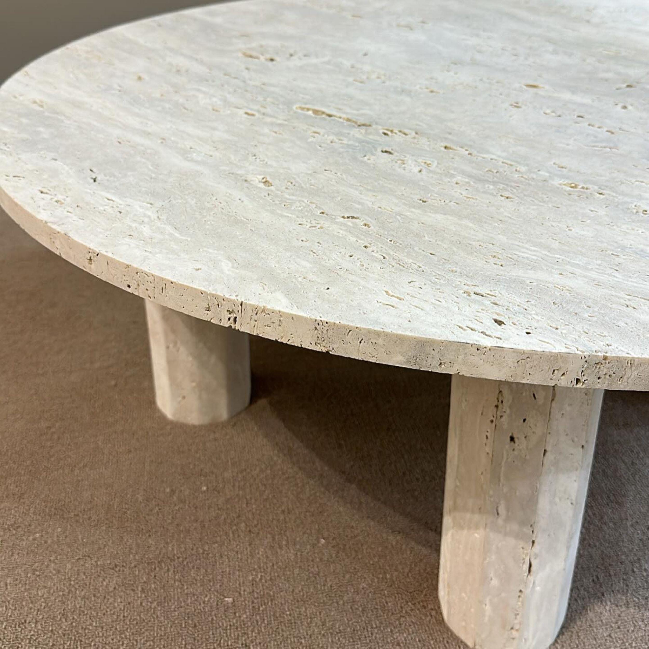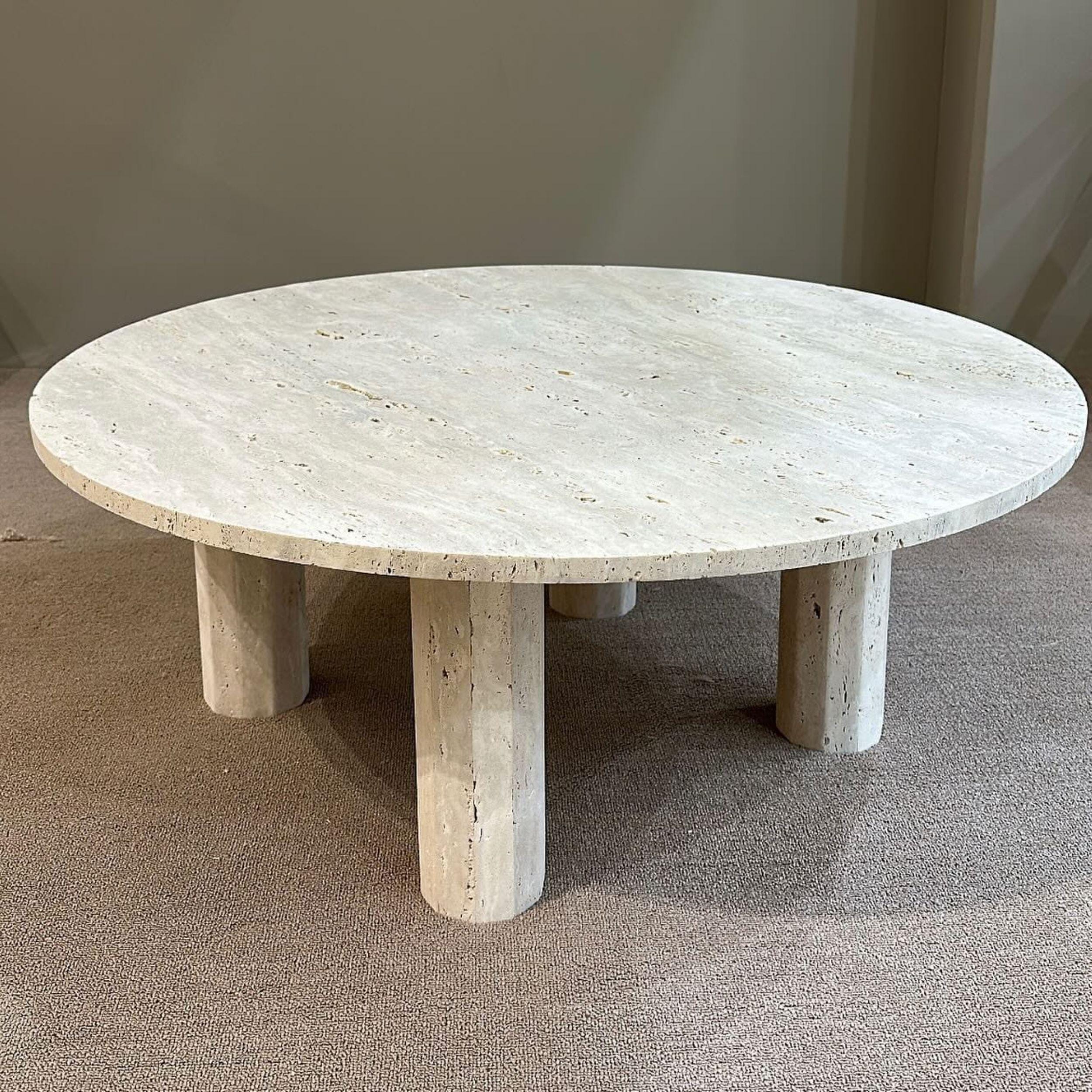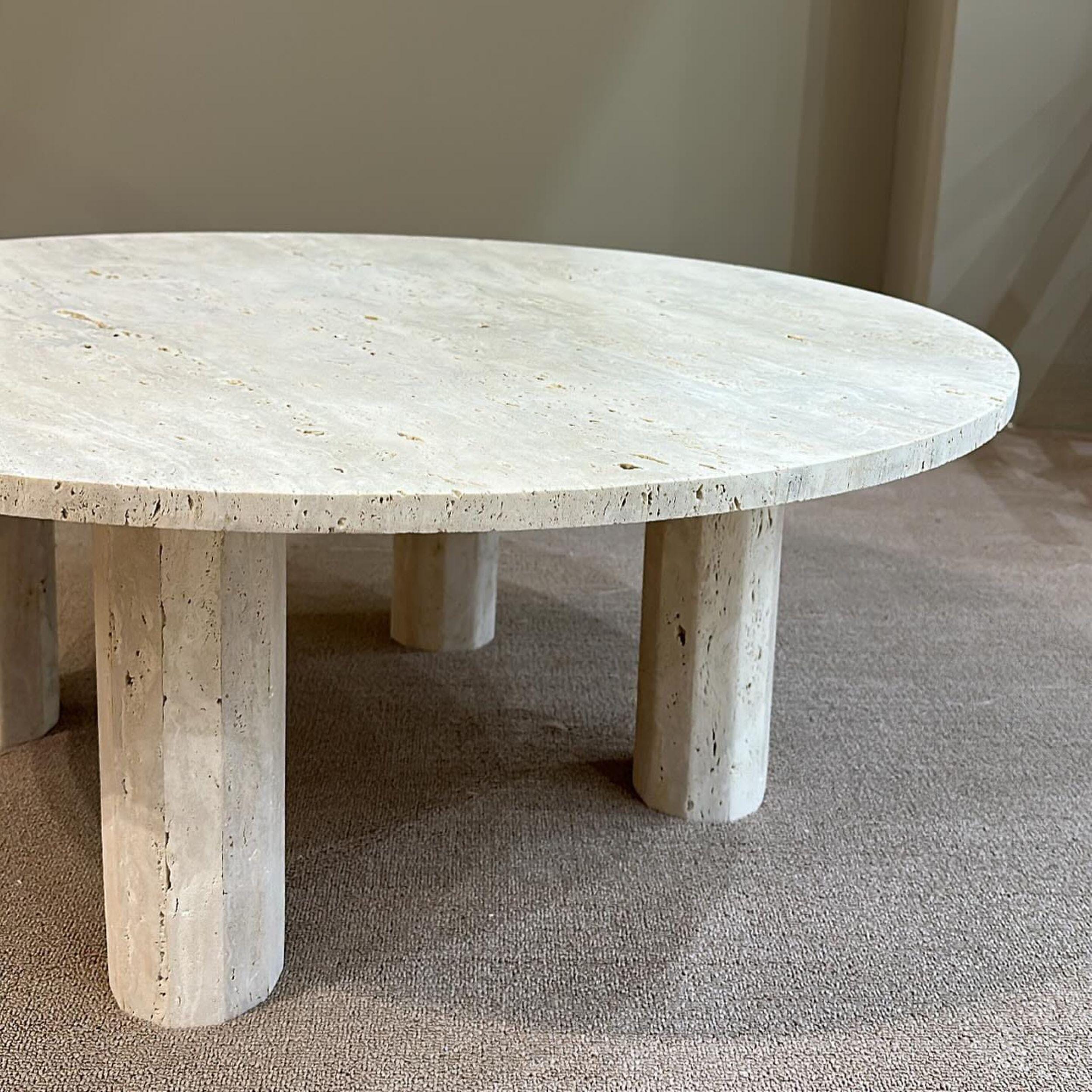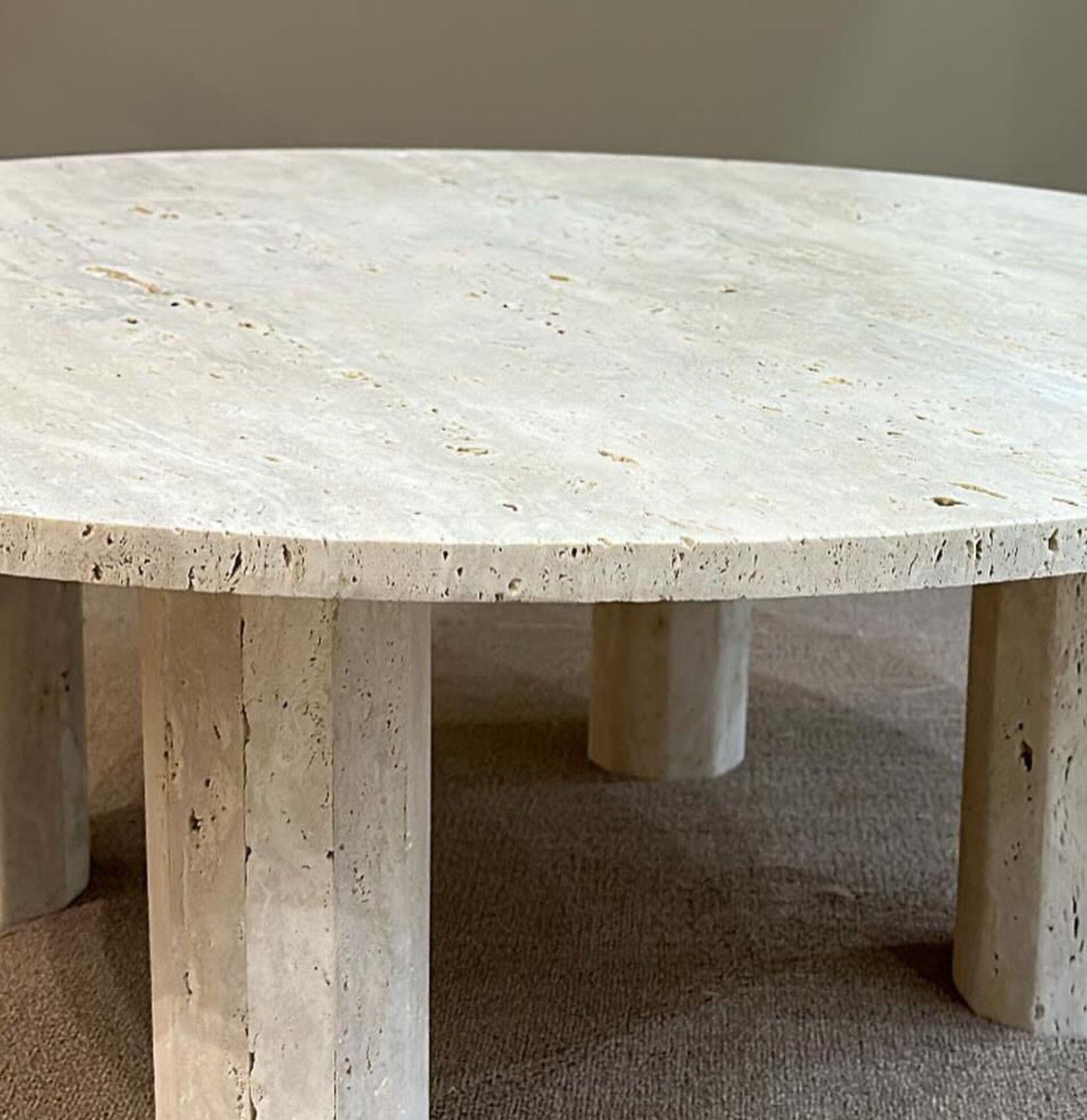 Round Travertine Coffee Table / Minimalist Luxury Designer Furniture