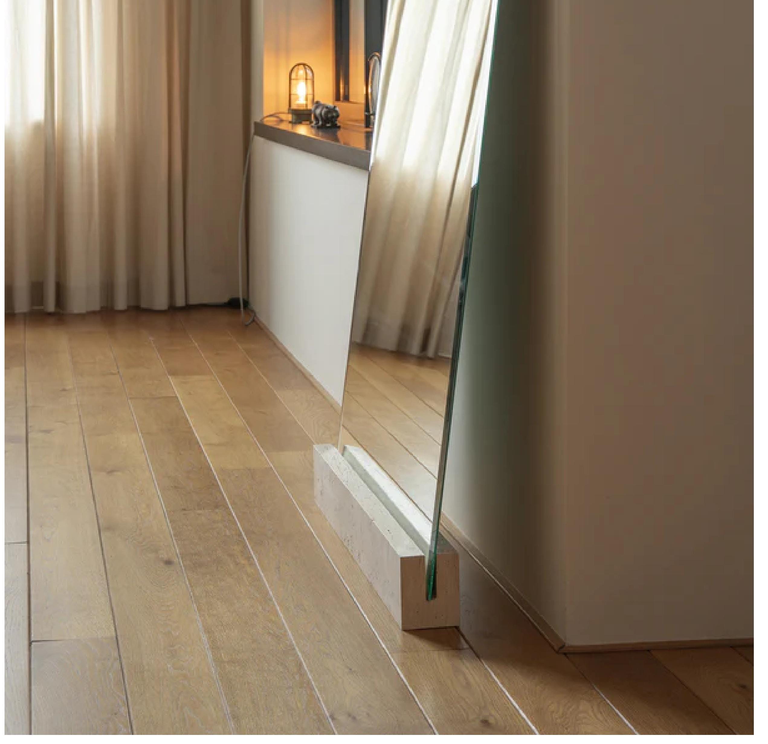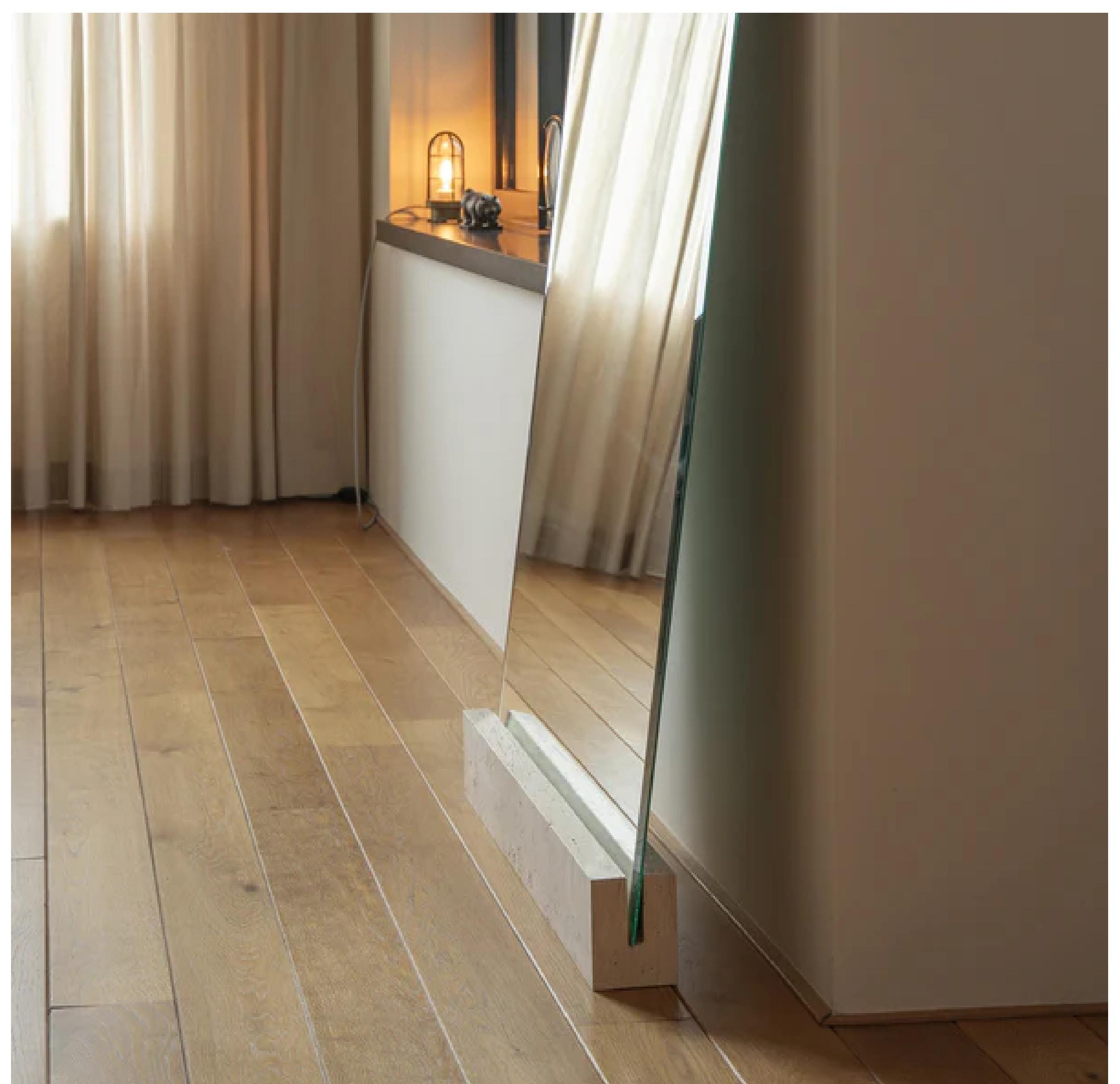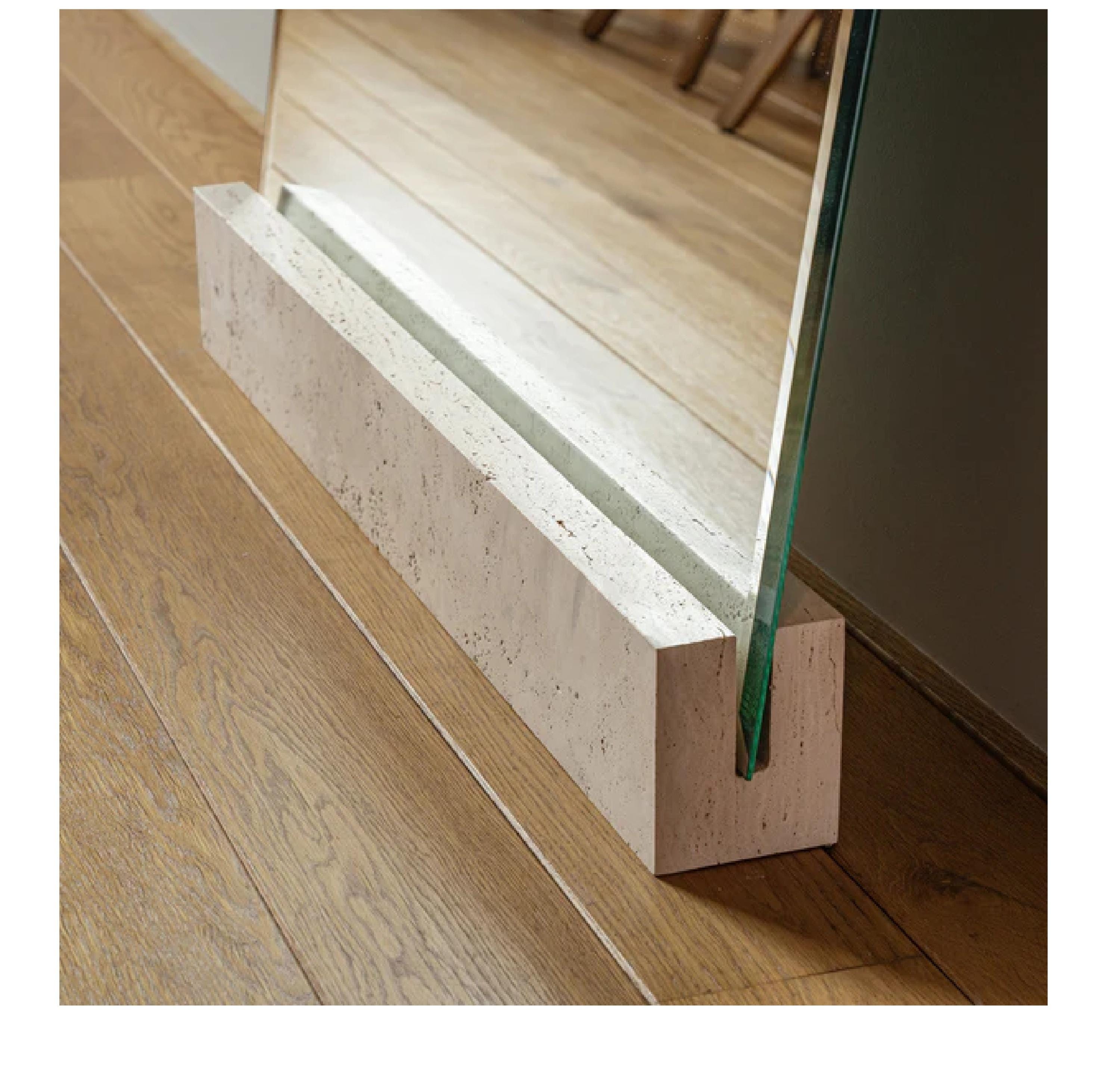 A refined and minimal way to display your mirror while keeping a natural, sculptural presence in the space. This Travertine Mirror Stand is designed to securely support a mirror placed against the wall, combining functionality with timeless elegance.