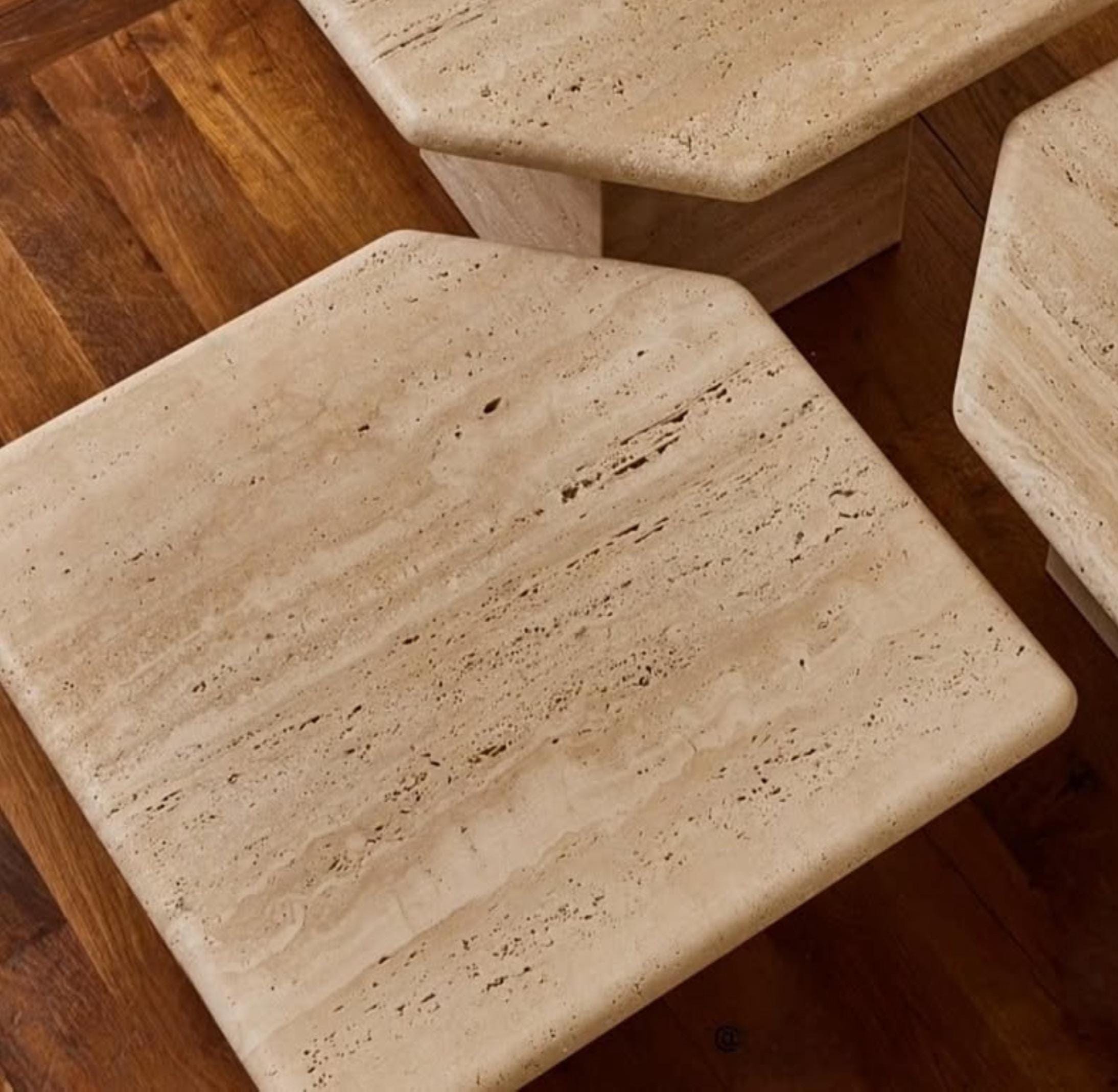 Elevate your living space with this Cream Travertine Nesting Coffee Table Set, a timeless blend of natural stone and modern design. Crafted from solid travertine, each table showcases warm cream tones, subtle natural veining, and organic textures that make every piece truly one of a kind.
